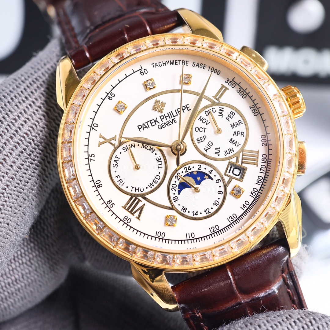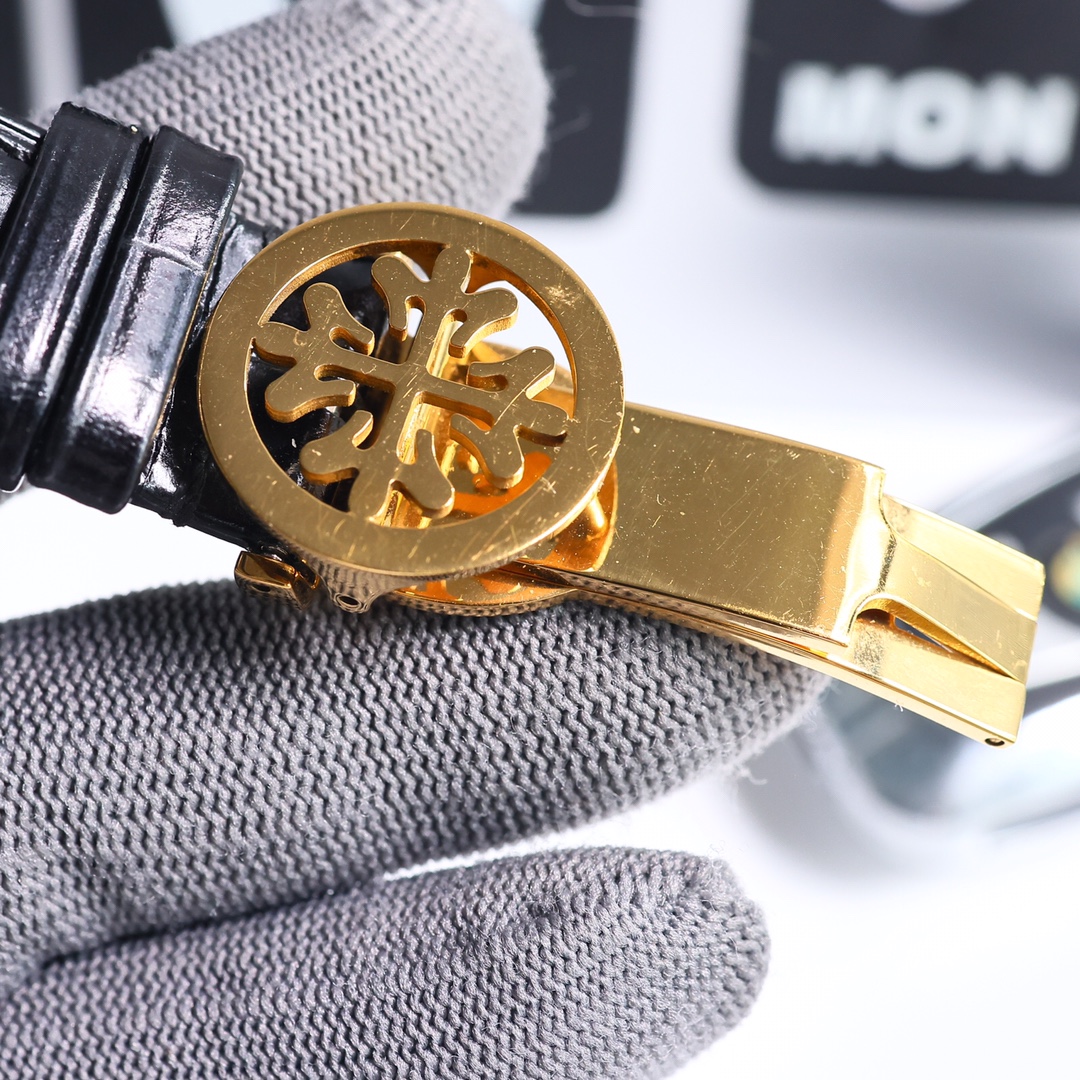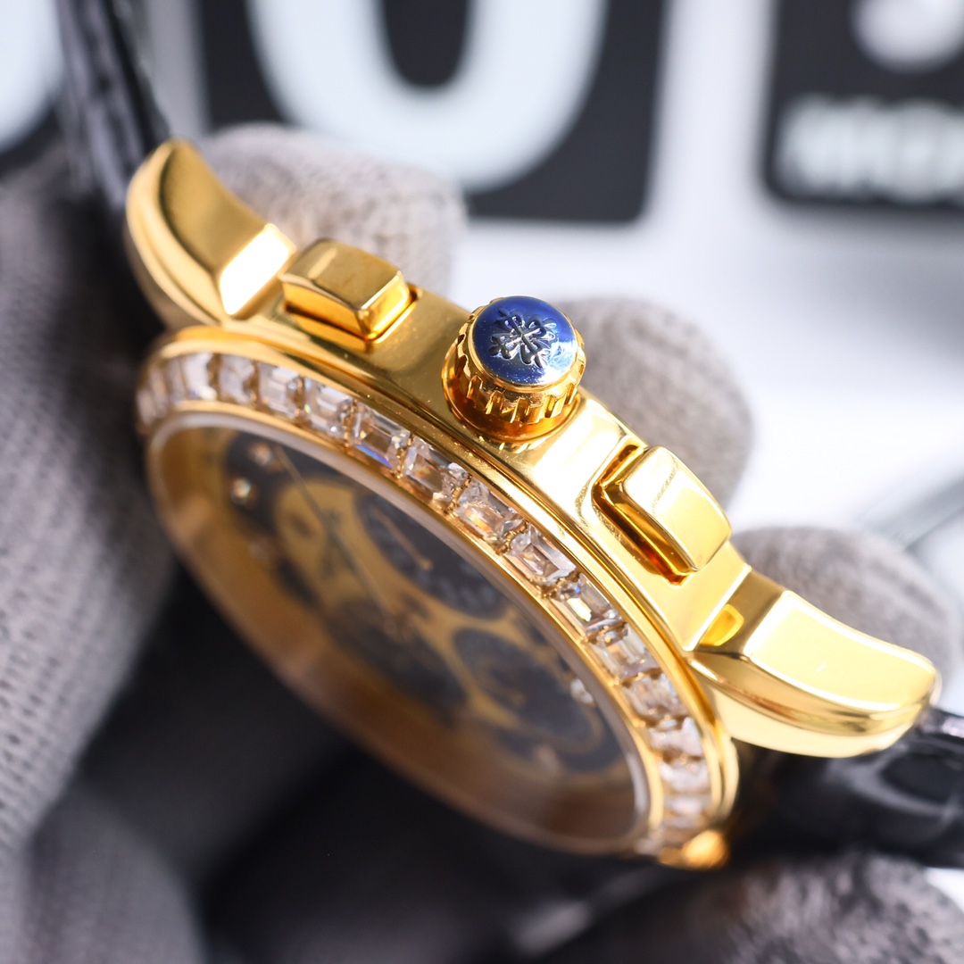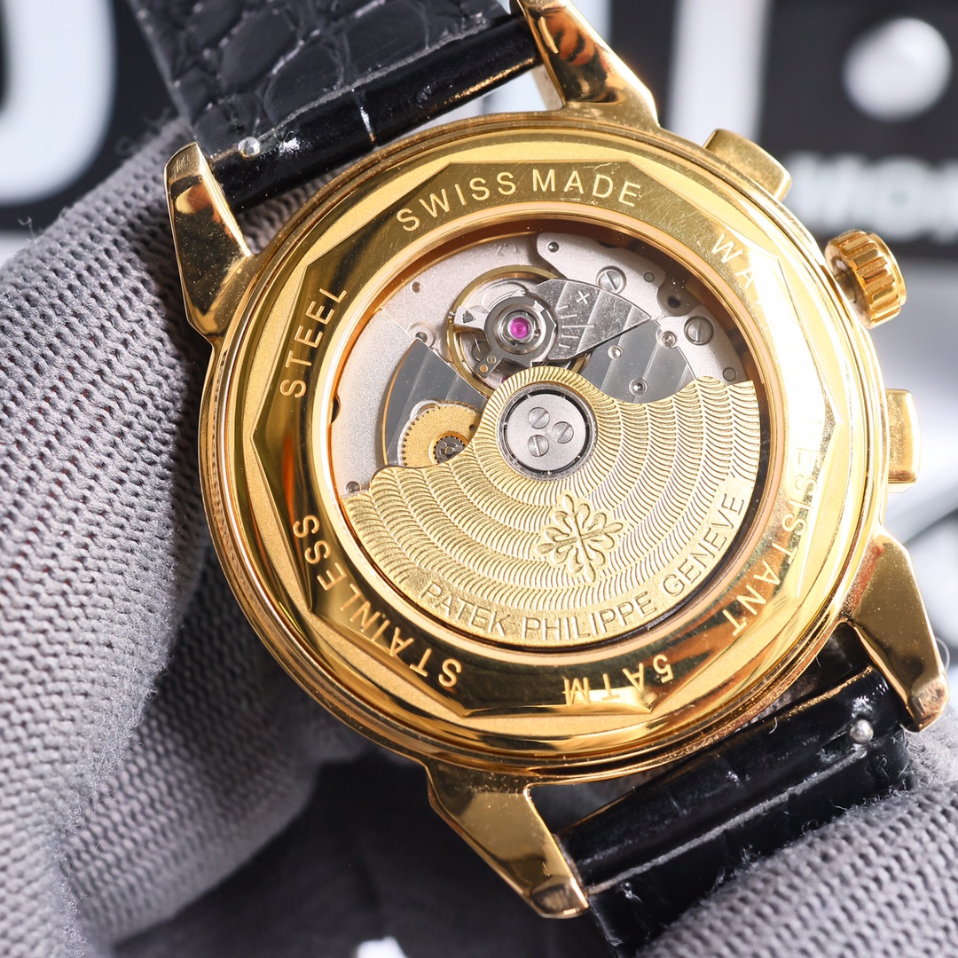 这款手表是AAAAA 1:1 质量 (非常棒). 使用了和原版一模一样的材料. 商标部分也保持了和百达翡丽/Patek Philippe一样. 图片拍摄是实物手表拍摄, 您所收到的实物保证和我们图片一模一样.