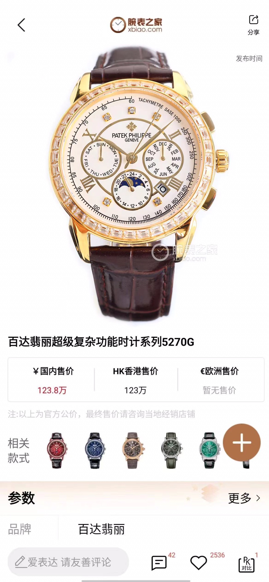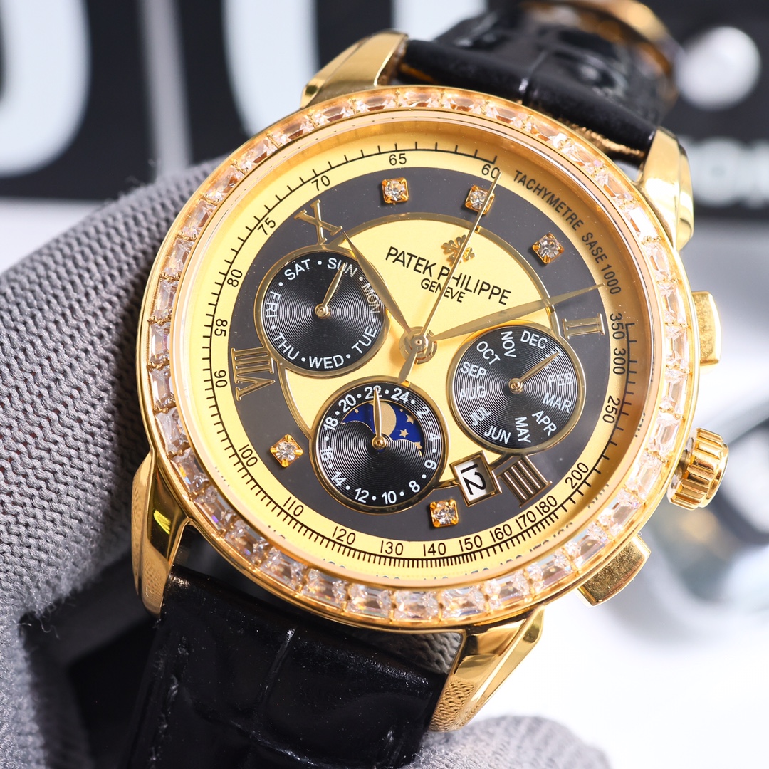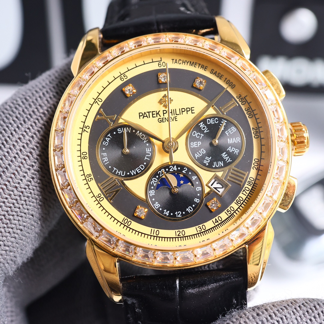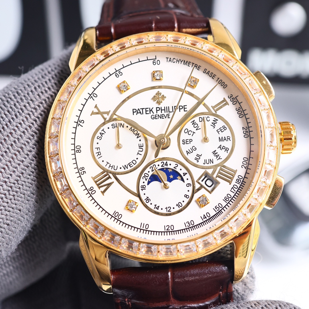 这款手表是AAAAA 1:1 质量 (非常棒). 使用了和原版一模一样的材料. 商标部分也保持了和百达翡丽/Patek Philippe一样. 图片拍摄是实物手表拍摄, 您所收到的实物保证和我们图片一模一样.