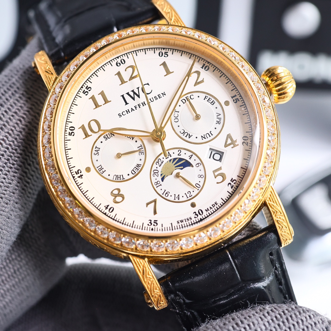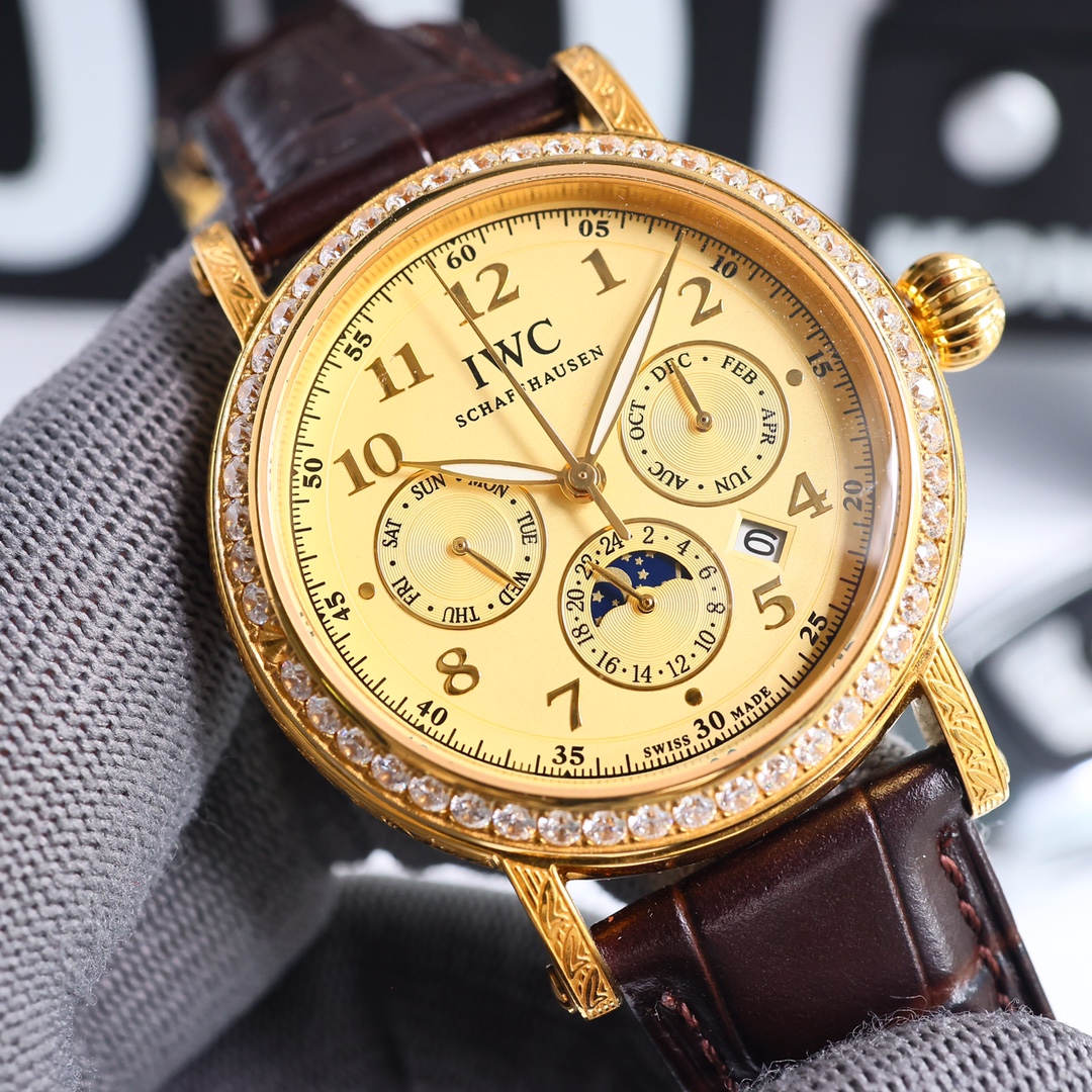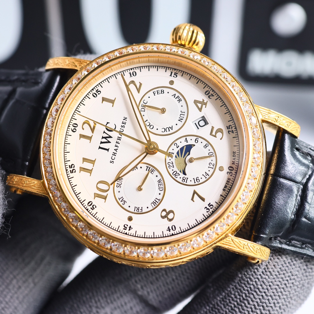 这款手表是AAAAA 1:1 质量 (非常棒). 使用了和原版一模一样的材料. 商标部分也保持了和万国表/IWC Schaffhausen一样. 图片拍摄是实物手表拍摄, 您所收到的实物保证和我们图片一模一样.