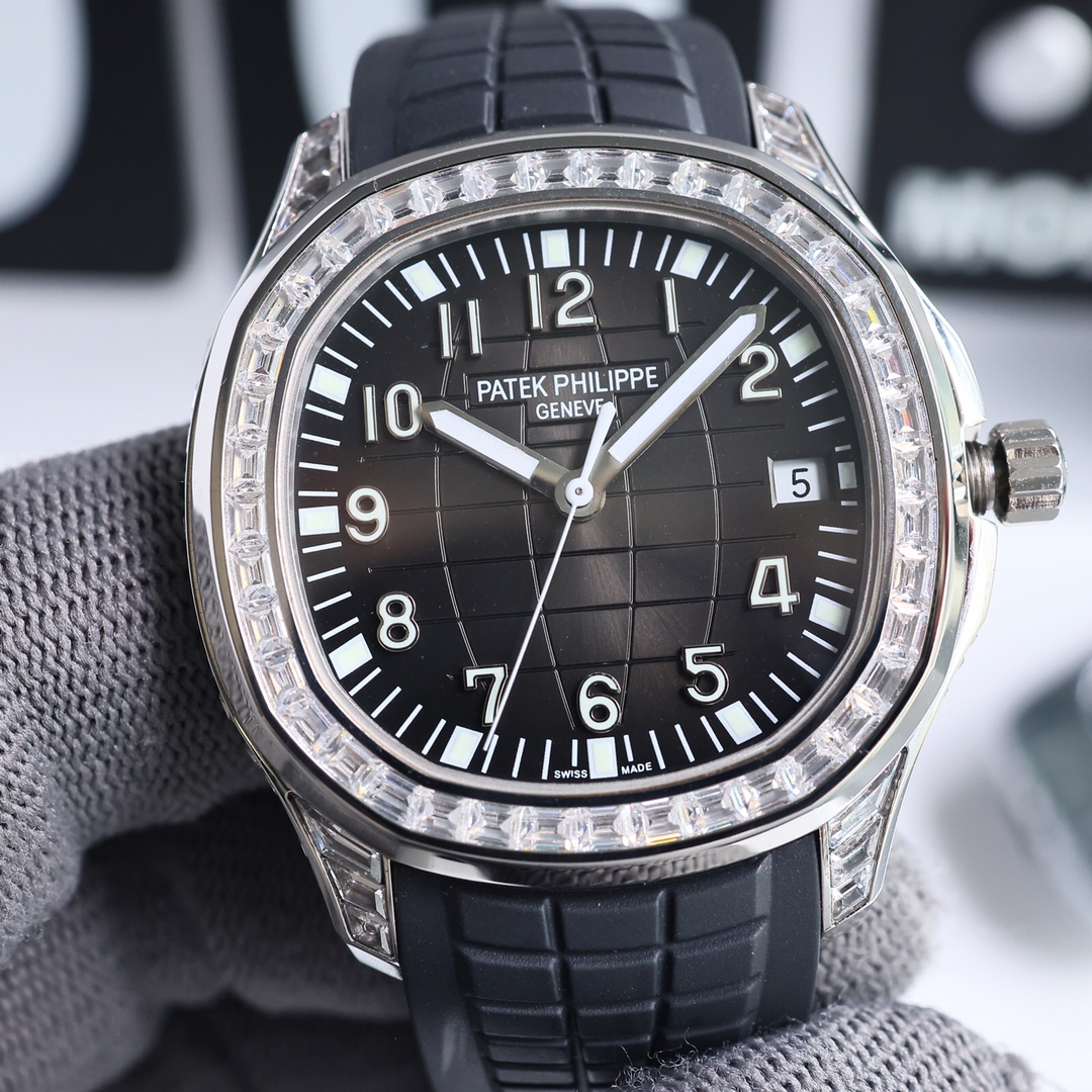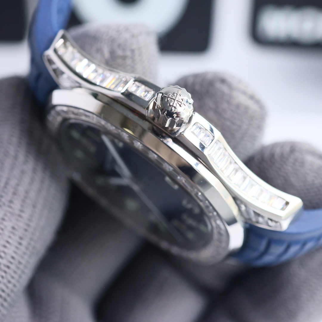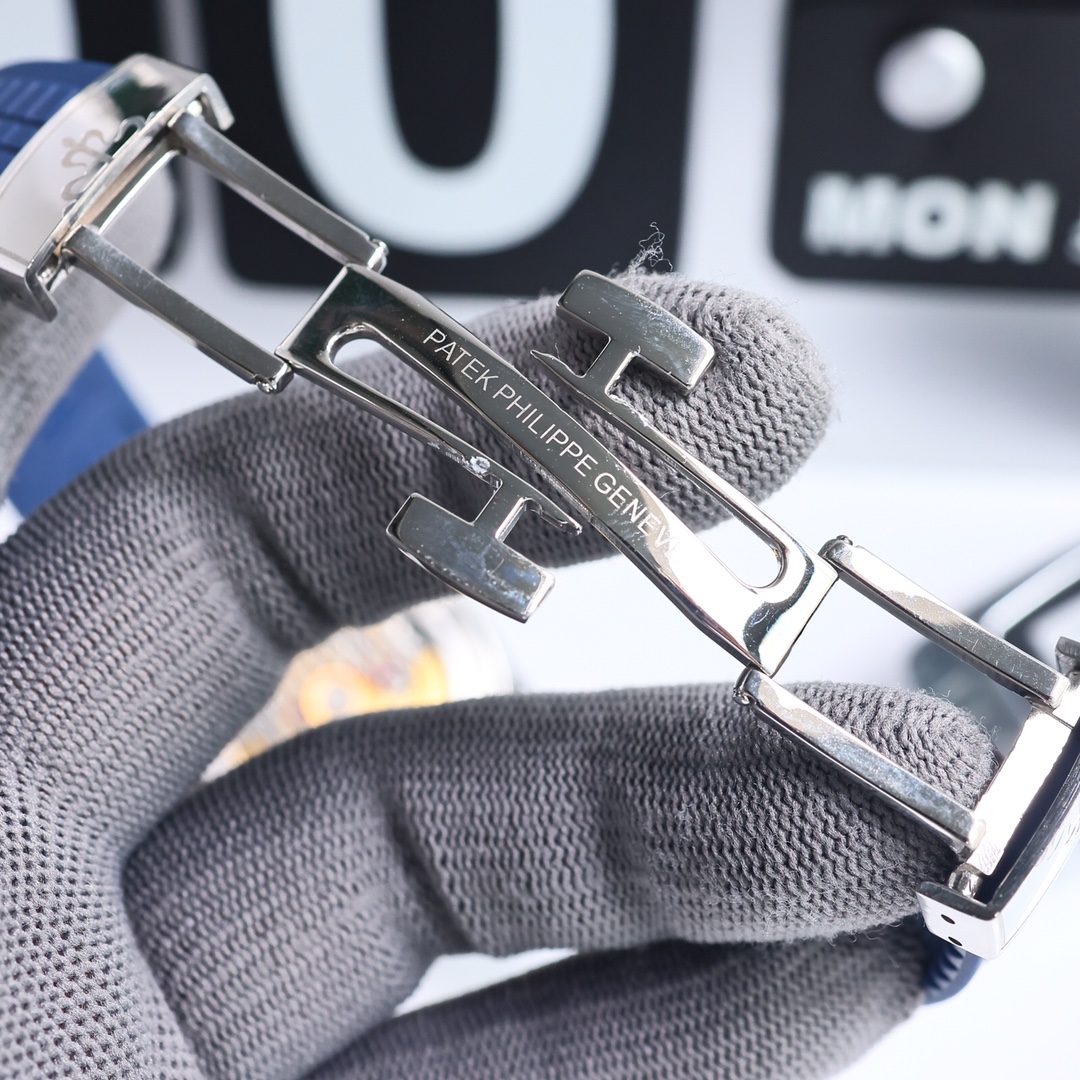 这款手表是AAAAA 1:1 质量 (非常棒). 使用了和原版一模一样的材料. 商标部分也保持了和百达翡丽/Patek Philippe一样. 图片拍摄是实物手表拍摄, 您所收到的实物保证和我们图片一模一样.