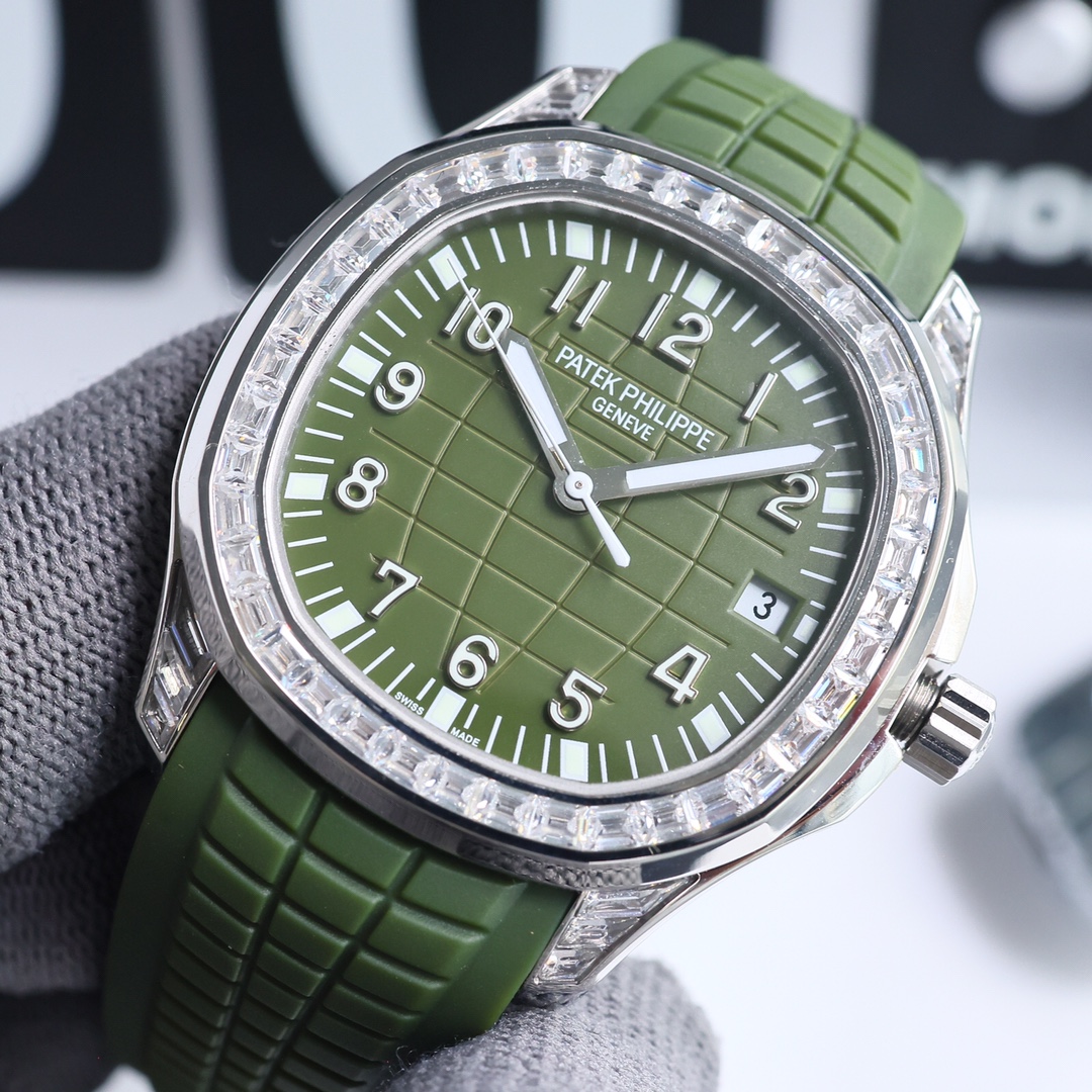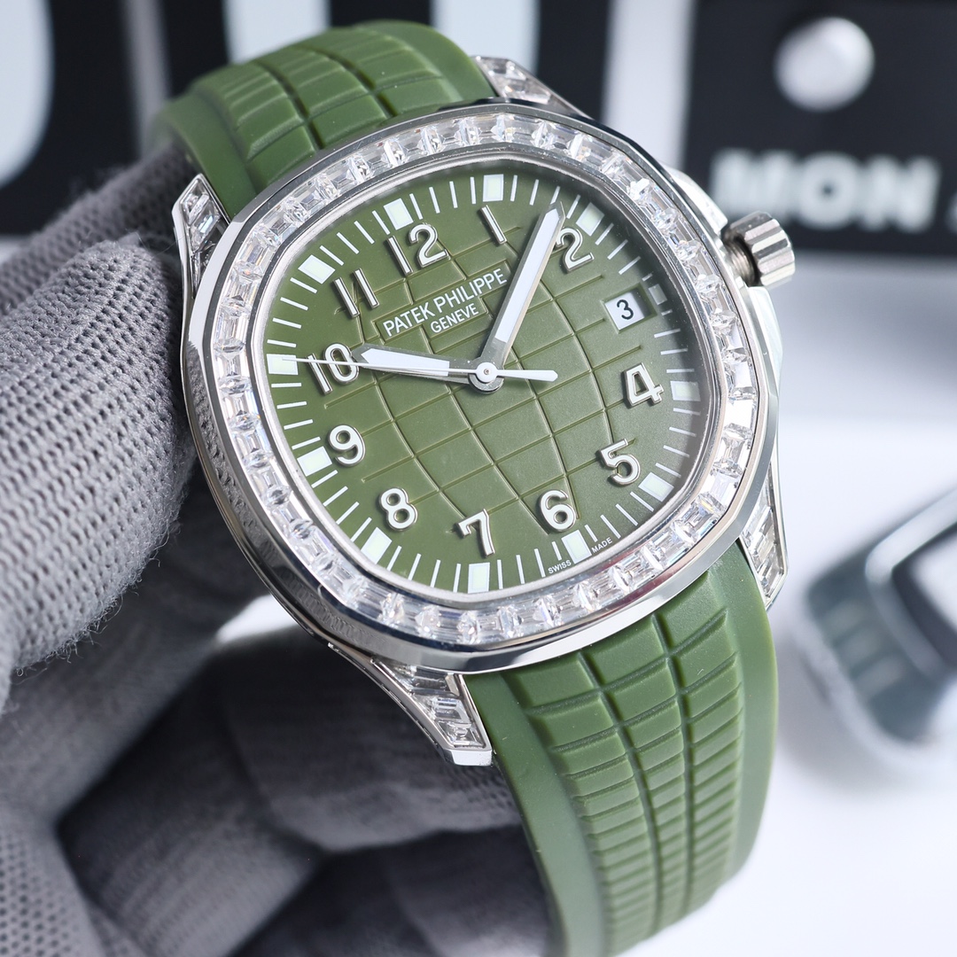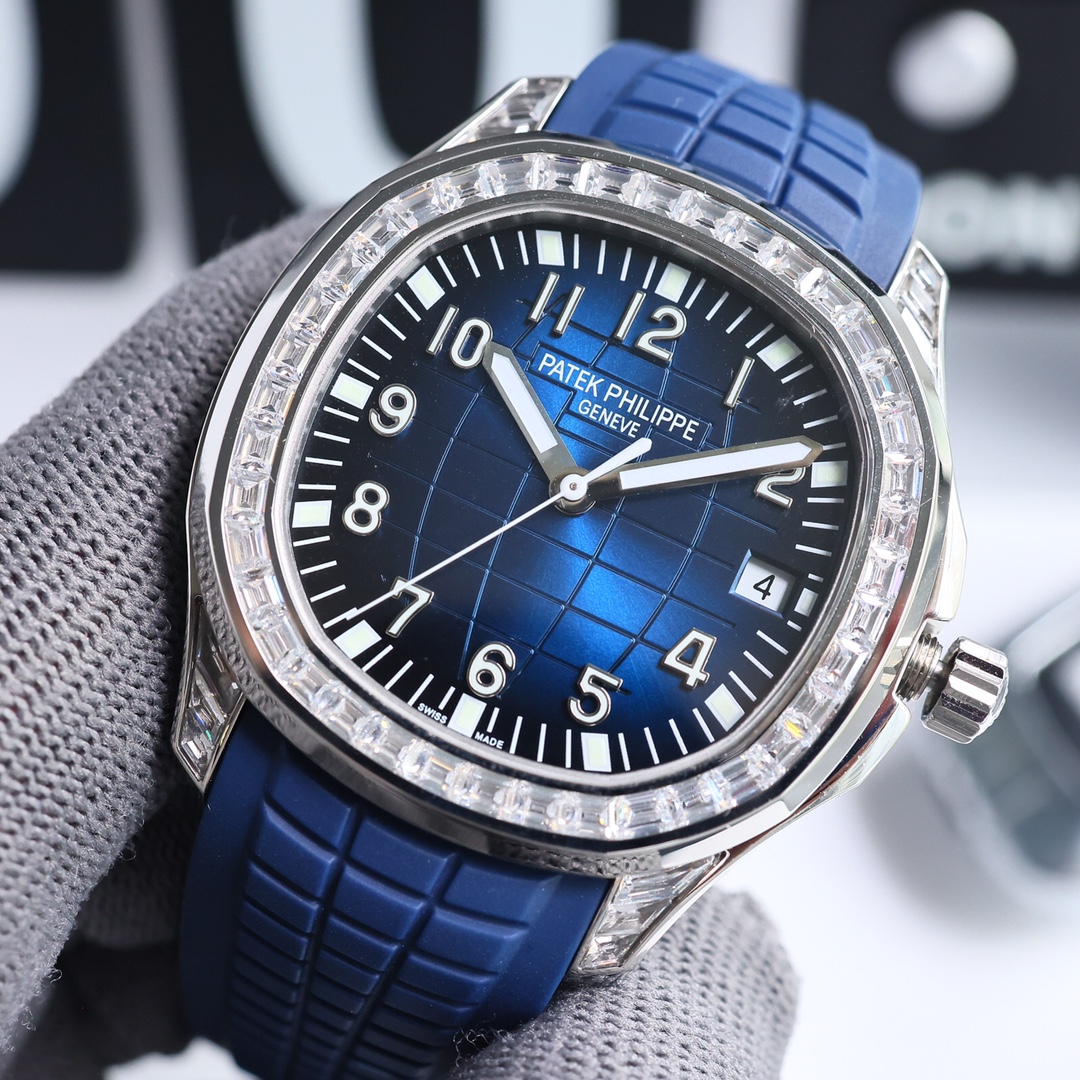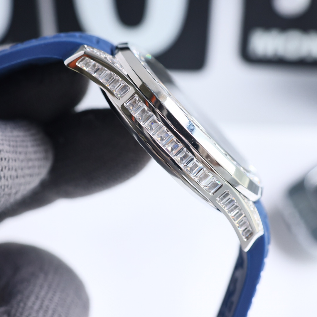 这款手表是AAAAA 1:1 质量 (非常棒). 使用了和原版一模一样的材料. 商标部分也保持了和百达翡丽/Patek Philippe一样. 图片拍摄是实物手表拍摄, 您所收到的实物保证和我们图片一模一样.