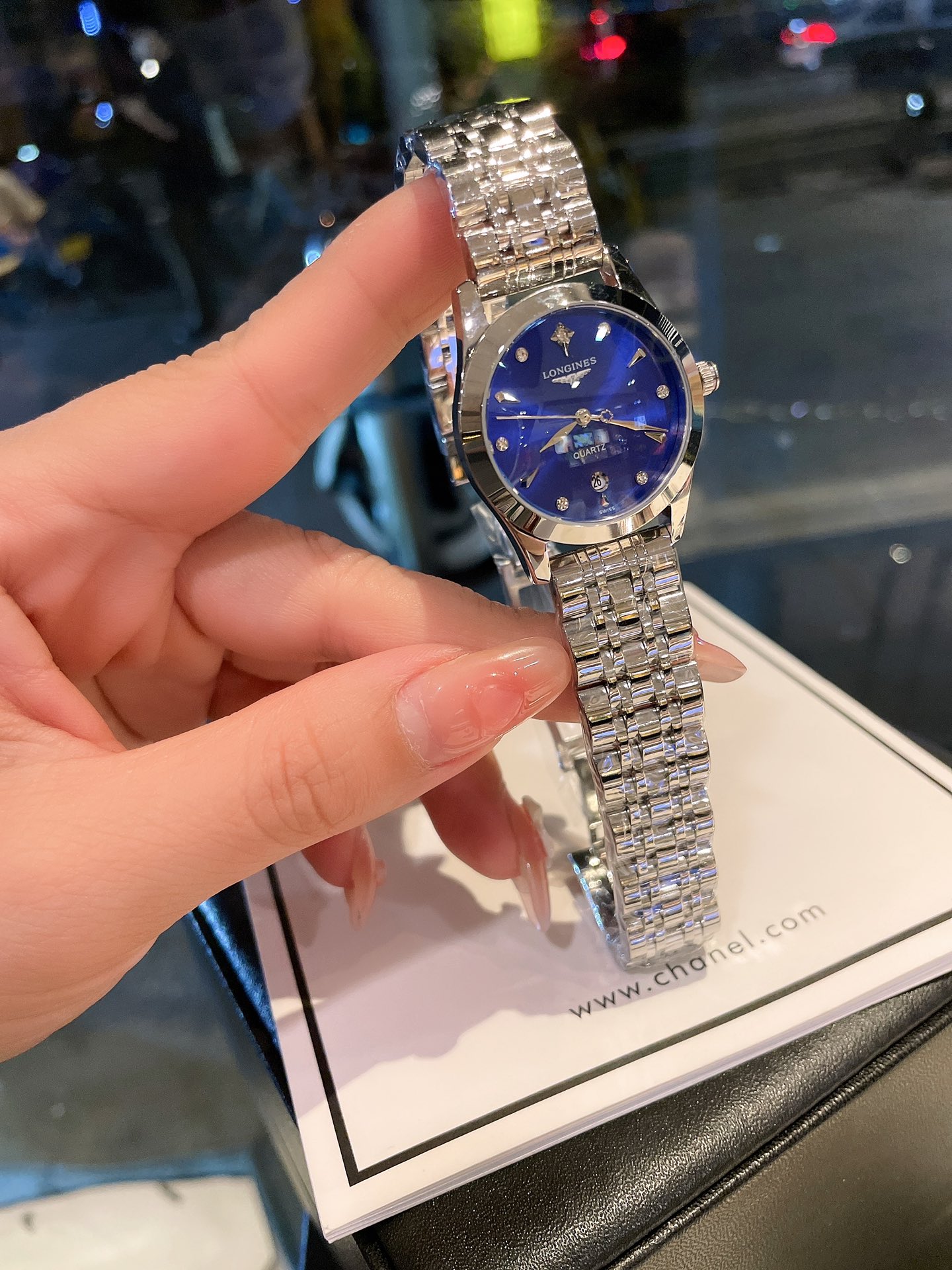 这款手表是AAAAA 1:1 质量 (非常棒). 使用了和原版一模一样的材料. 商标部分也保持了和浪琴/Longines一样. 图片拍摄是实物手表拍摄, 您所收到的实物保证和我们图片一模一样.