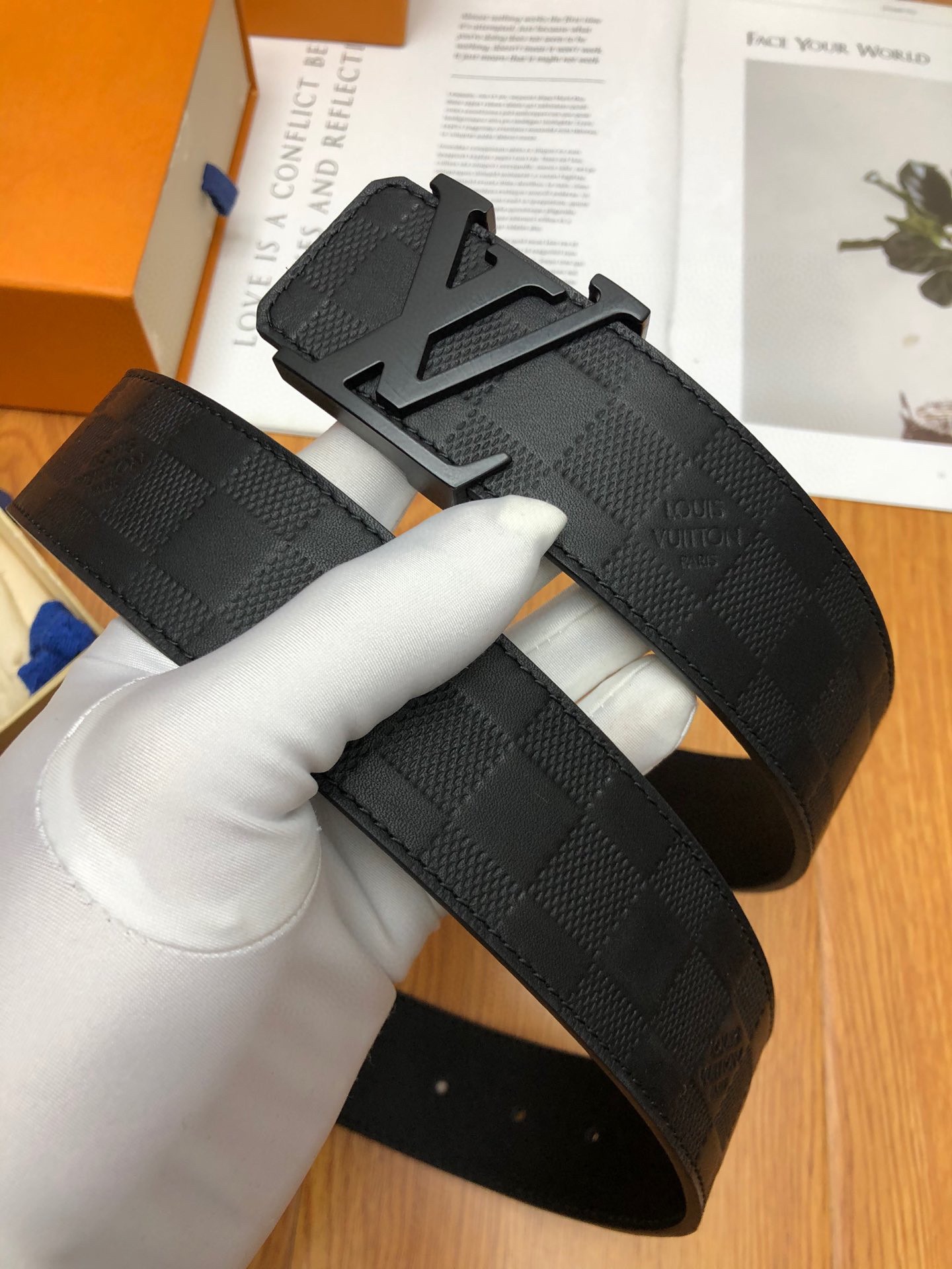 这款皮带是AAAAA 1:1 质量 (非常棒). 使用了和原版一模一样的材料. 商标部分也保持了和路易威登/Louis Vuitton一样. 图片拍摄是实物皮带拍摄, 您所收到的实物保证和我们图片一模一样.