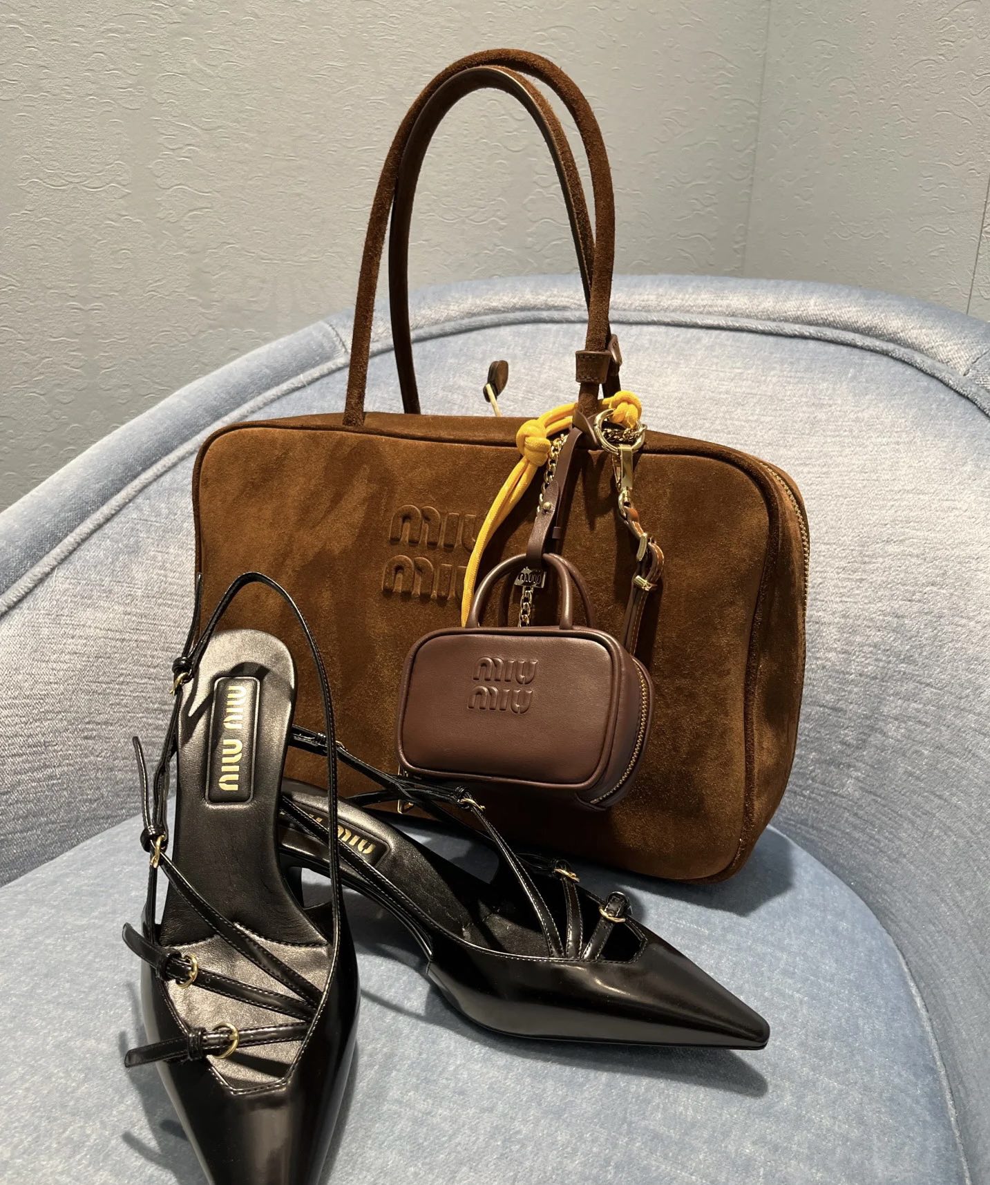 这款包包是AAAAA 1:1 质量 (非常棒). 使用了和原版一模一样的材料. 商标部分也保持了和缪缪/Miu Miu一样. 图片拍摄是实物包包拍摄, 您所收到的实物保证和我们图片一模一样.