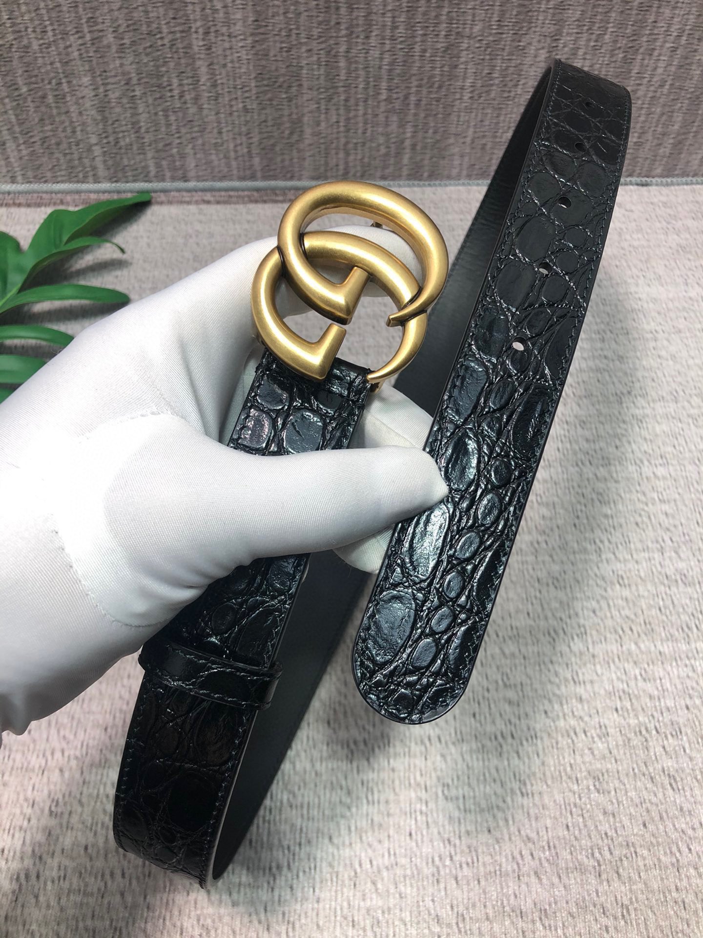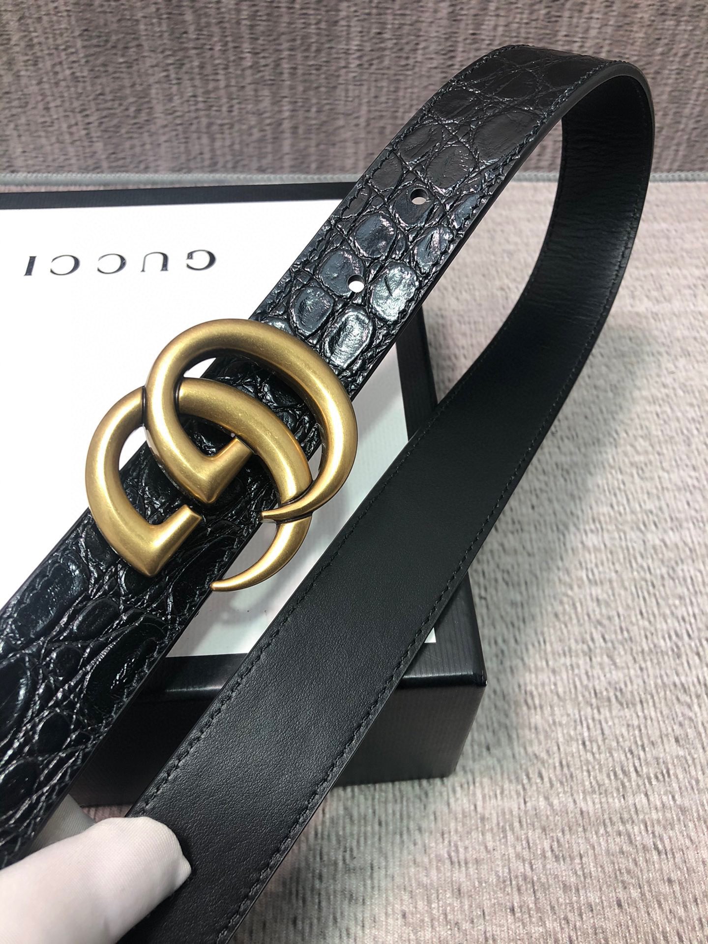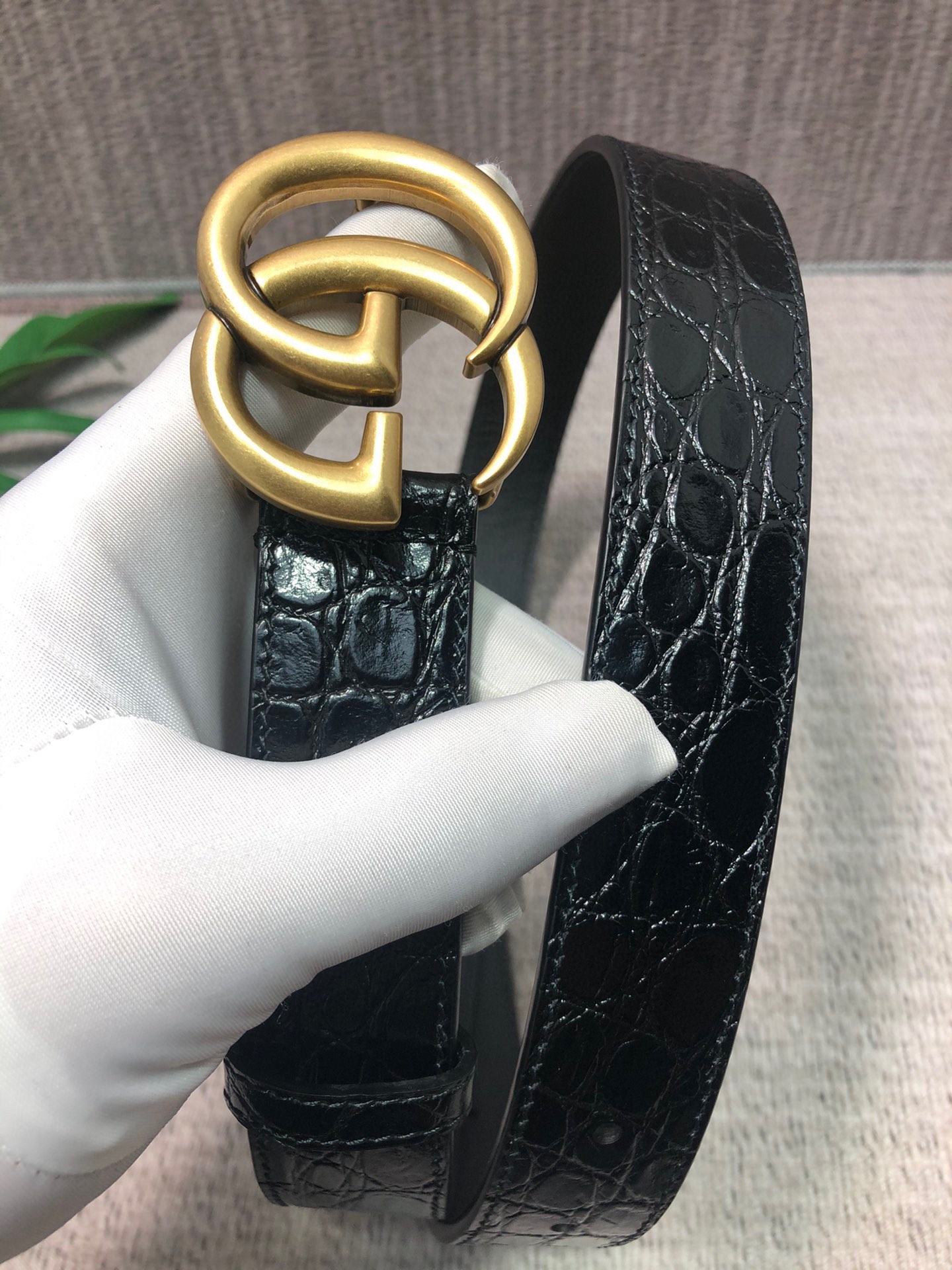 这款皮带是AAAAA 1:1 质量 (非常棒). 使用了和原版一模一样的材料. 商标部分也保持了和古奇/Gucci一样. 图片拍摄是实物皮带拍摄, 您所收到的实物保证和我们图片一模一样.
