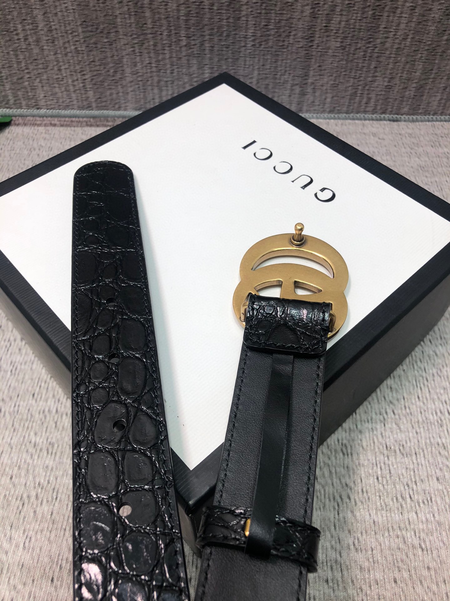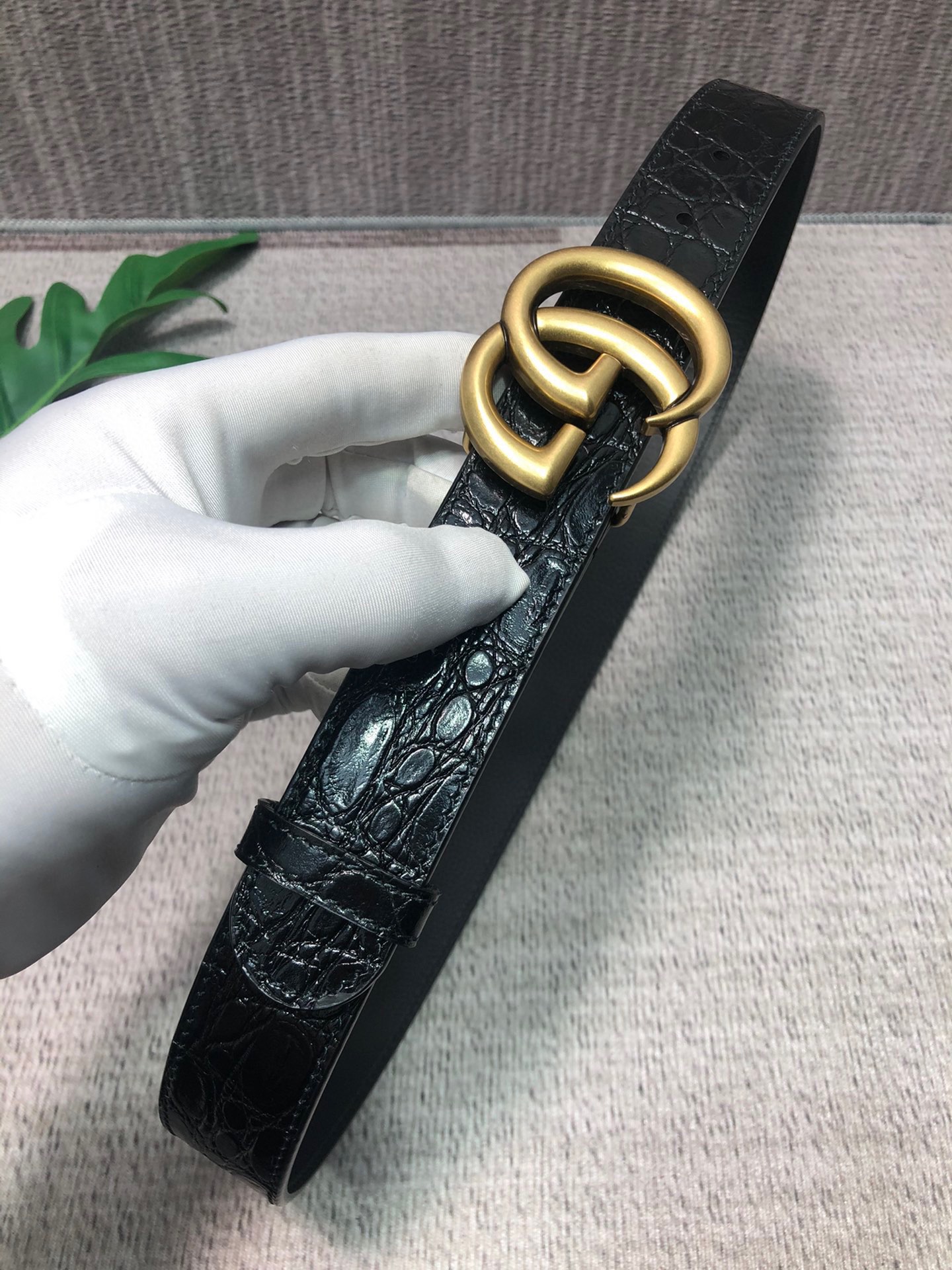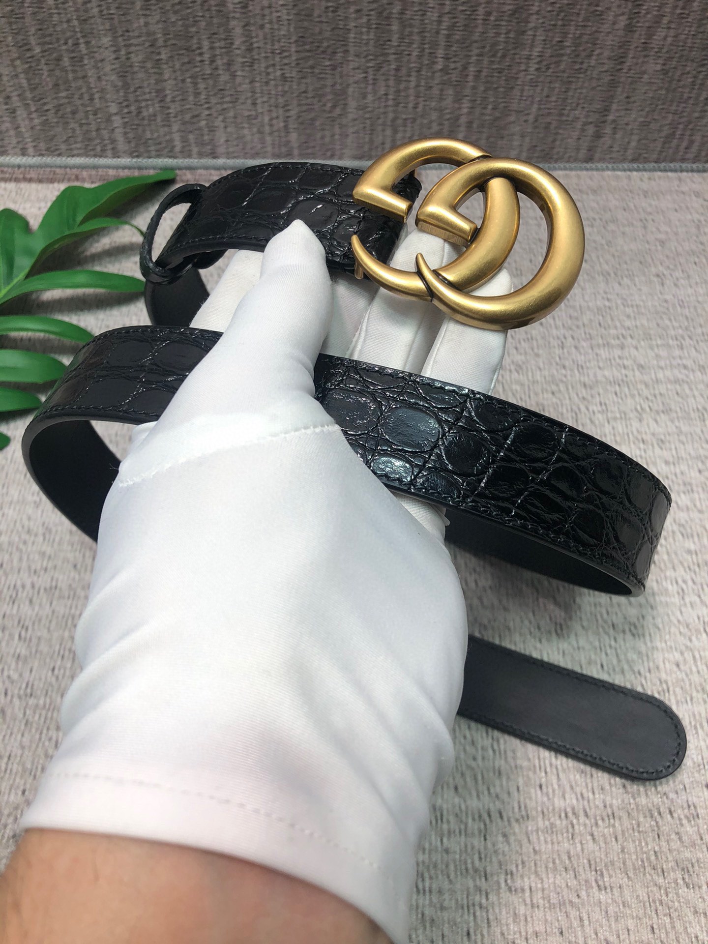 这款皮带是AAAAA 1:1 质量 (非常棒). 使用了和原版一模一样的材料. 商标部分也保持了和古奇/Gucci一样. 图片拍摄是实物皮带拍摄, 您所收到的实物保证和我们图片一模一样.