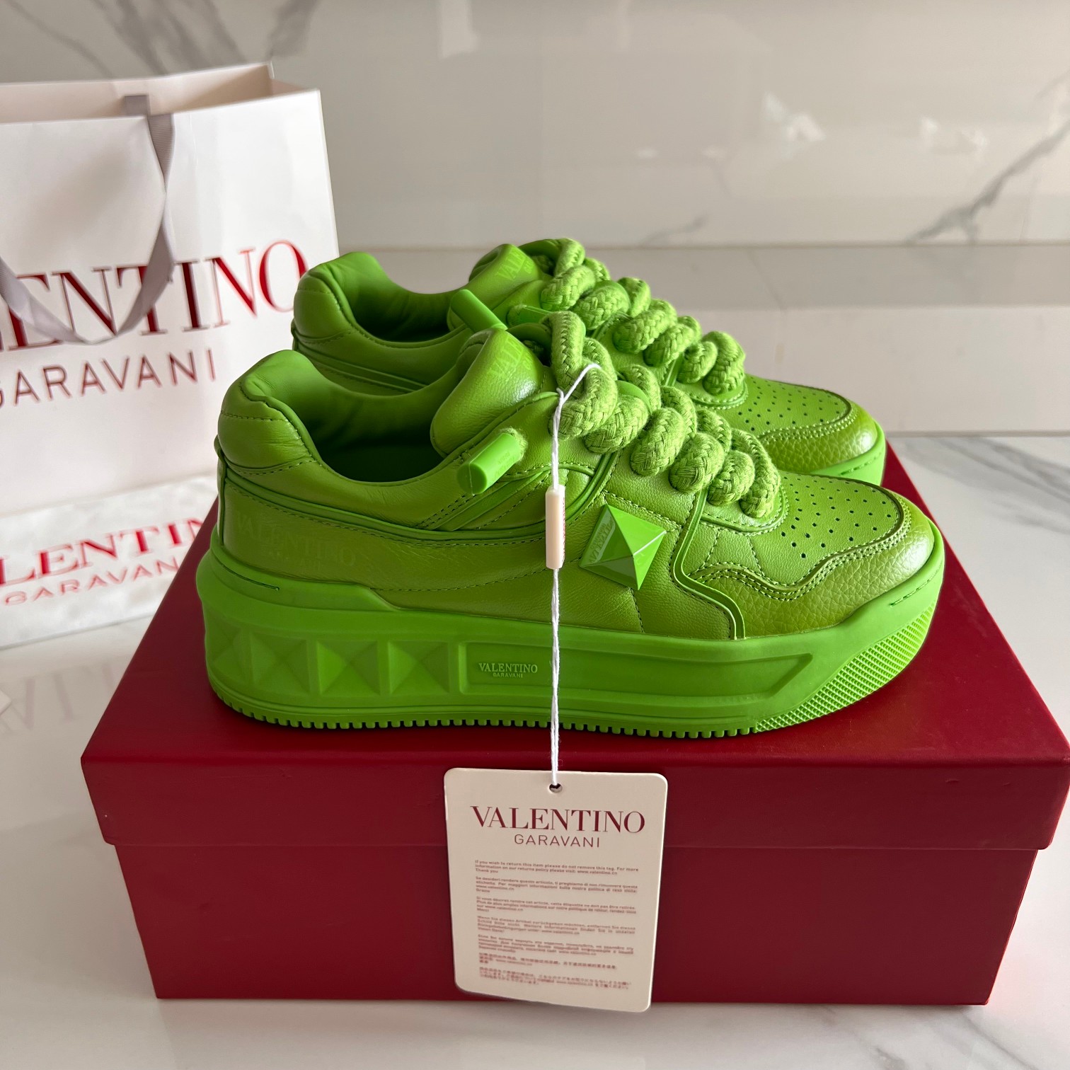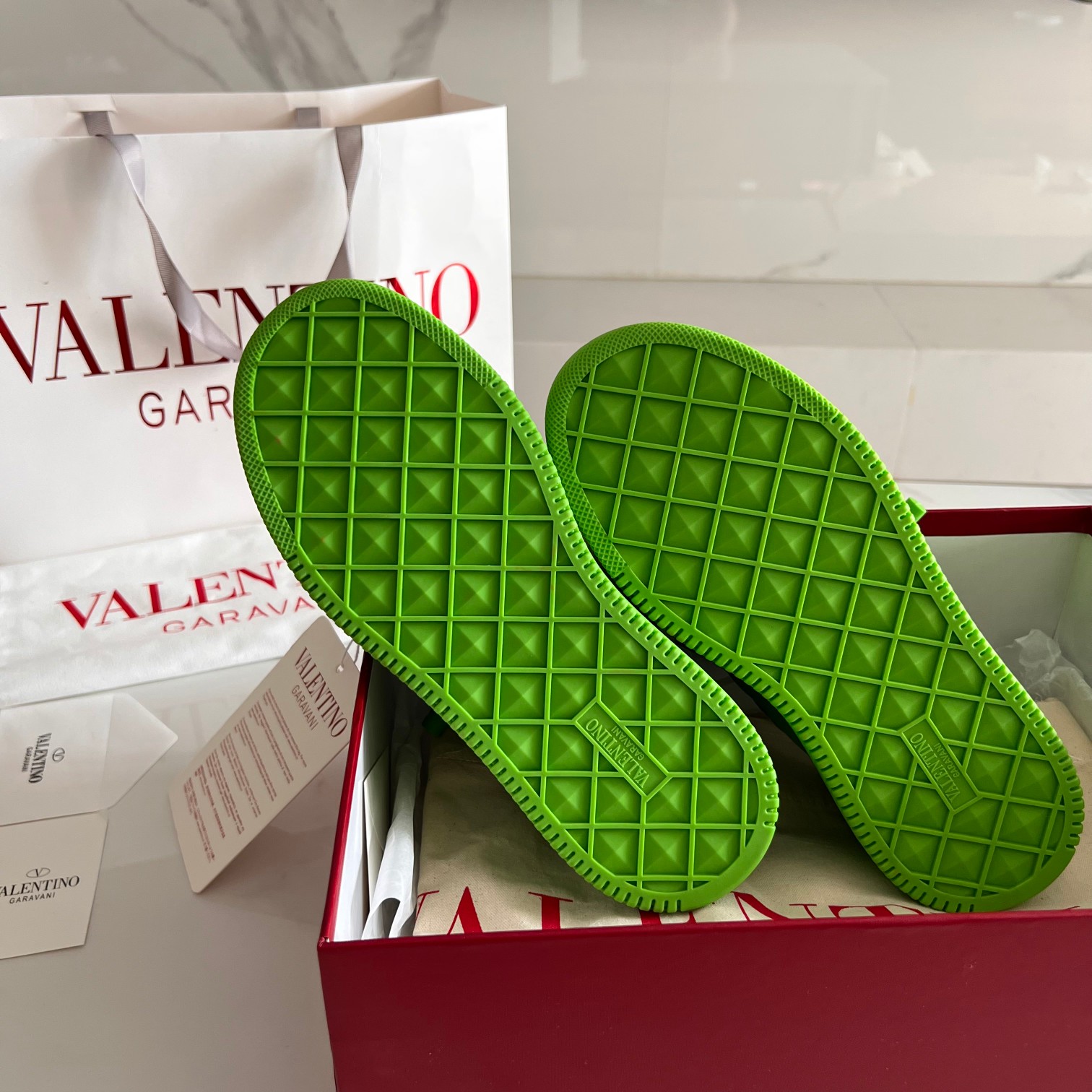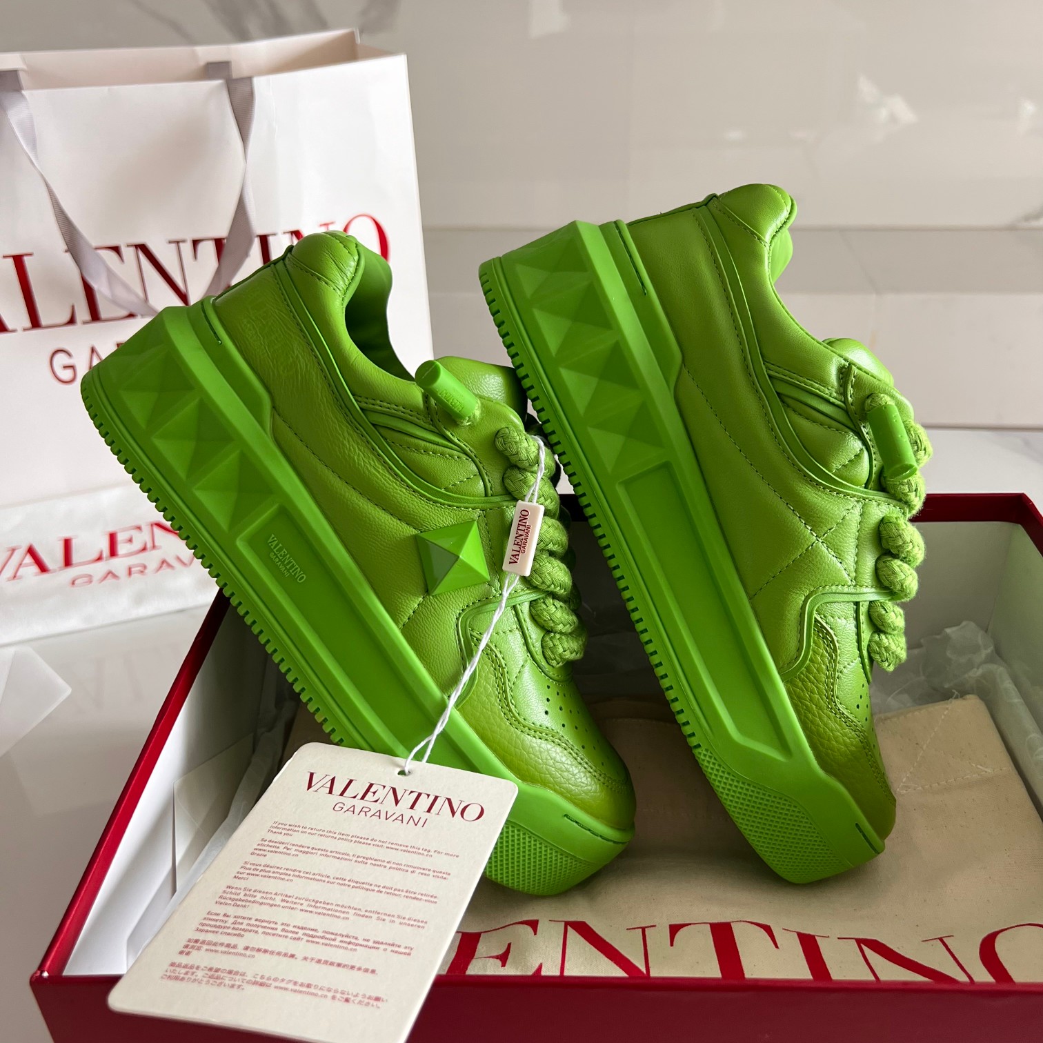 这款鞋子是AAAAA 1:1 质量 (非常棒). 使用了和原版一模一样的材料. 商标部分也保持了和华伦天奴/Valentino一样. 图片拍摄是实物鞋子拍摄, 您所收到的实物保证和我们图片一模一样.
