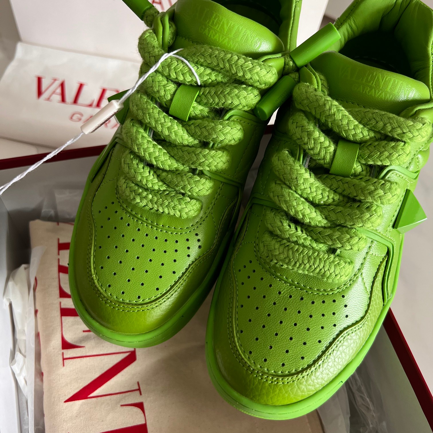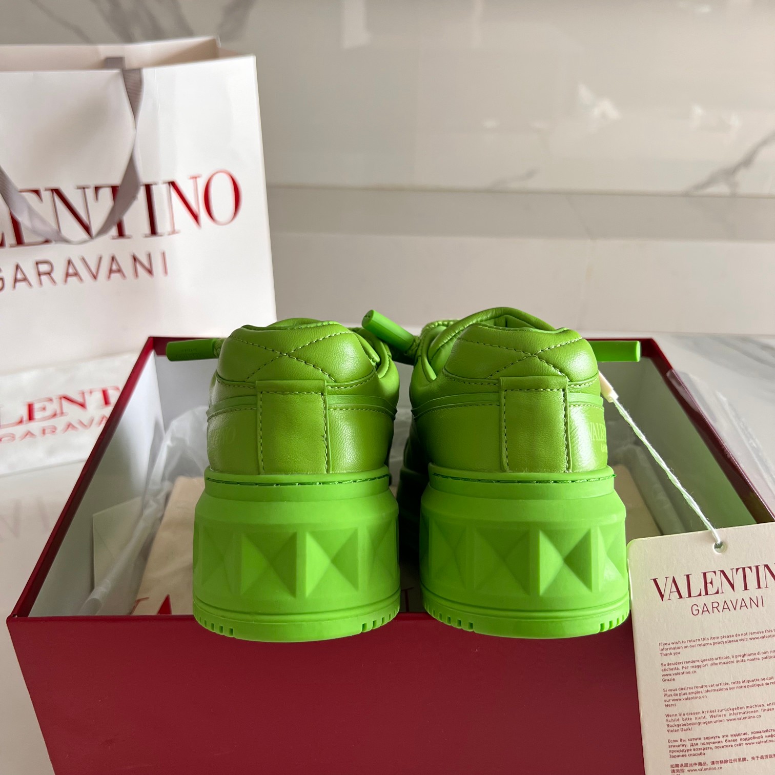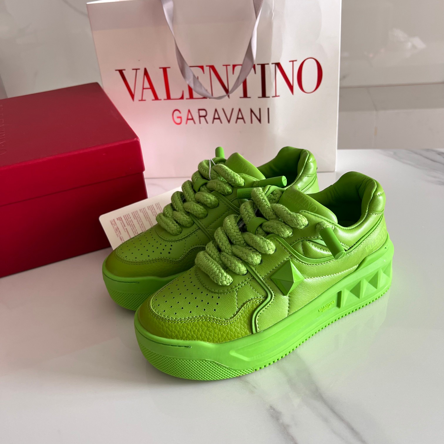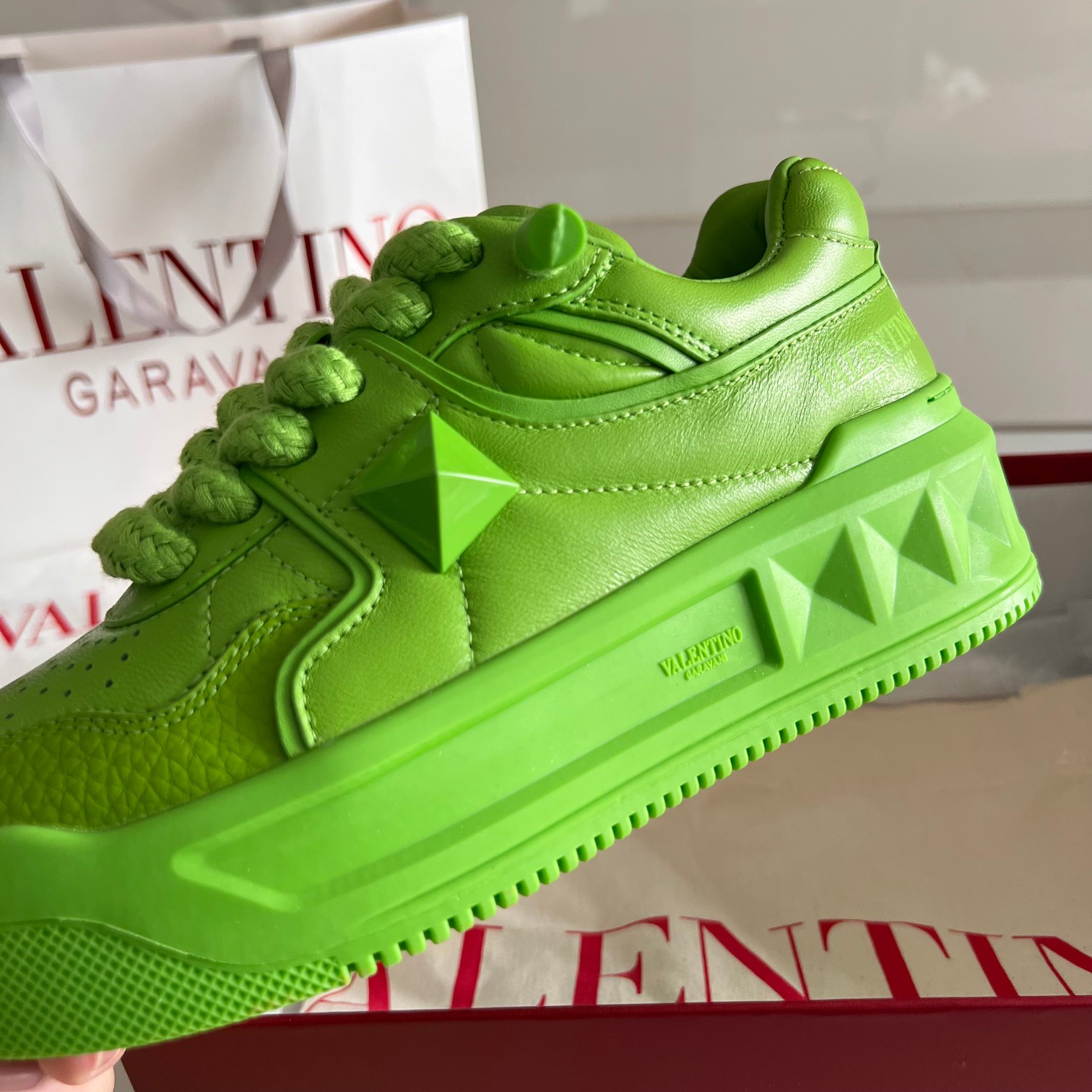 这款鞋子是AAAAA 1:1 质量 (非常棒). 使用了和原版一模一样的材料. 商标部分也保持了和华伦天奴/Valentino一样. 图片拍摄是实物鞋子拍摄, 您所收到的实物保证和我们图片一模一样.