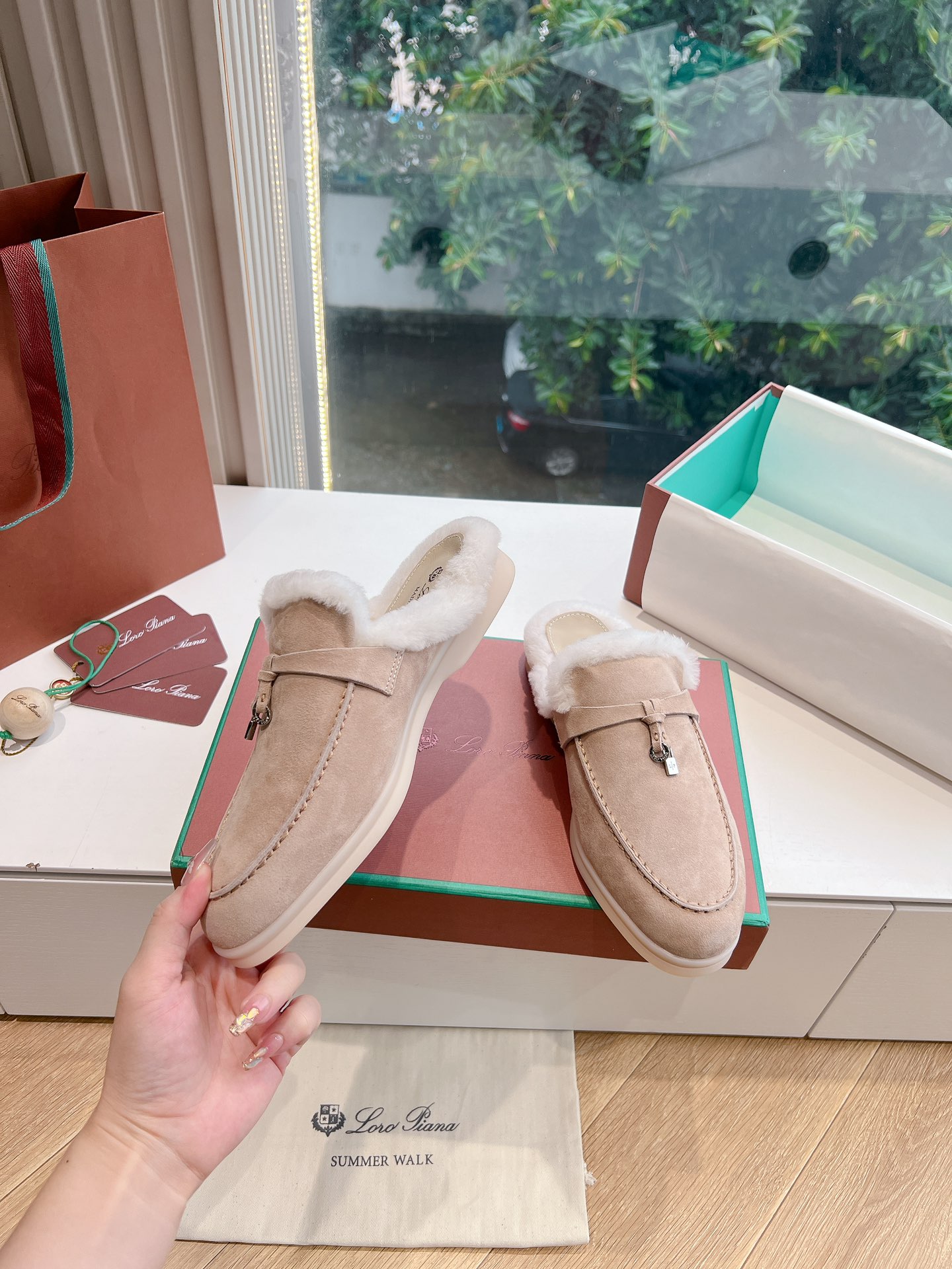 这款鞋子是AAAAA 1:1 质量 (非常棒). 使用了和原版一模一样的材料. 商标部分也保持了和洛罗皮亚纳/Loro Piana一样. 图片拍摄是实物鞋子拍摄, 您所收到的实物保证和我们图片一模一样.