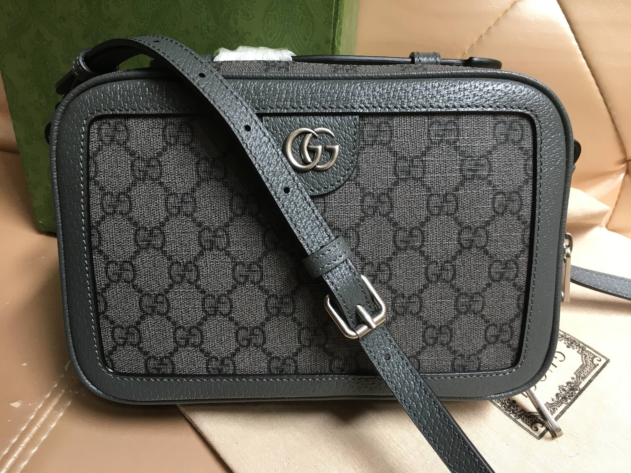 这款包包是AAAAA 1:1 质量 (非常棒). 使用了和原版一模一样的材料. 商标部分也保持了和古奇/Gucci一样. 图片拍摄是实物包包拍摄, 您所收到的实物保证和我们图片一模一样.