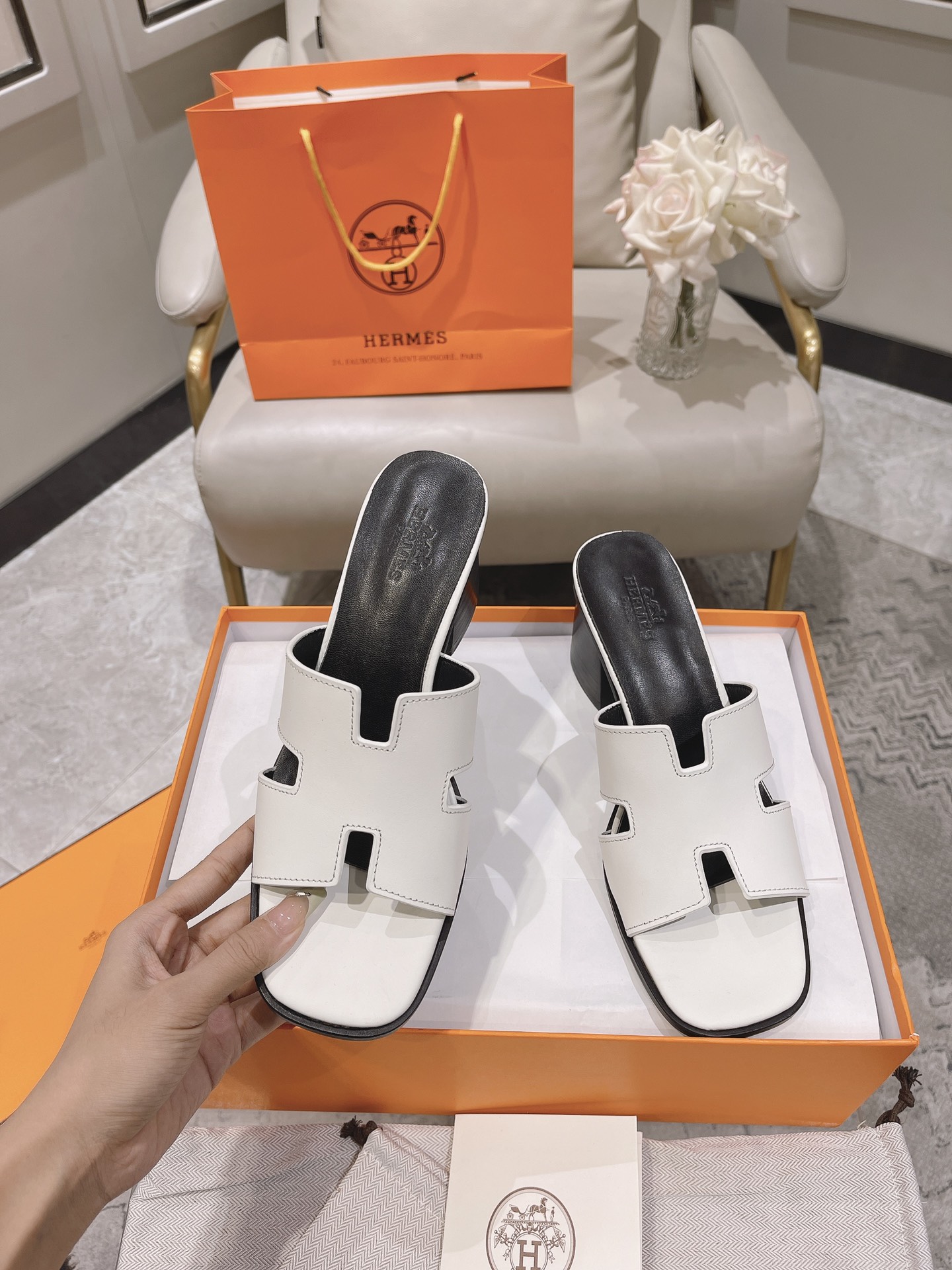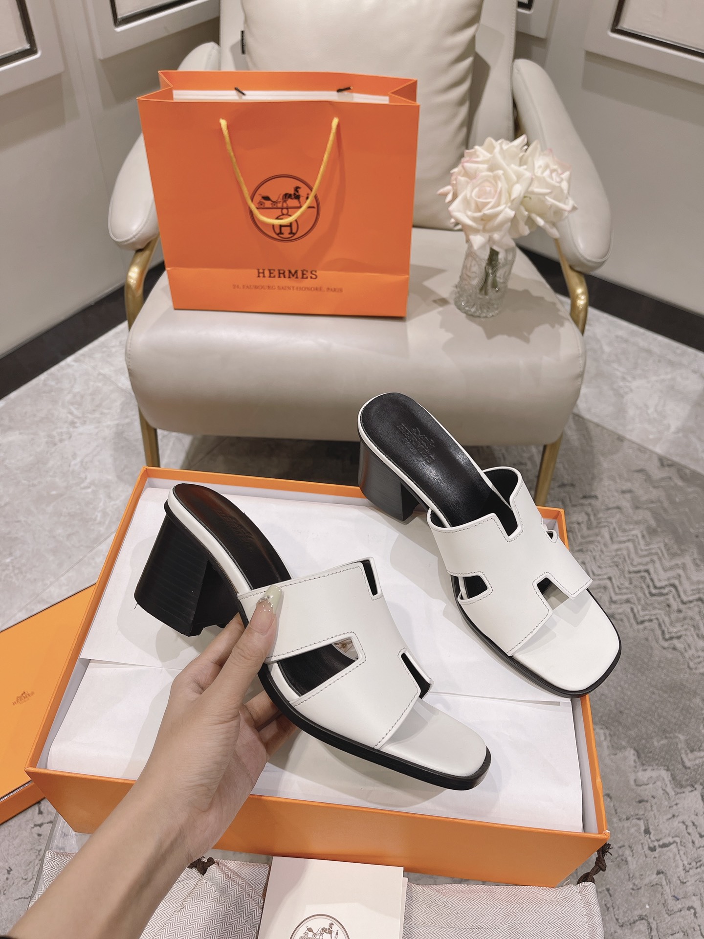 这款鞋子是AAAAA 1:1 质量 (非常棒). 使用了和原版一模一样的材料. 商标部分也保持了和爱马仕/Hermes一样. 图片拍摄是实物鞋子拍摄, 您所收到的实物保证和我们图片一模一样.