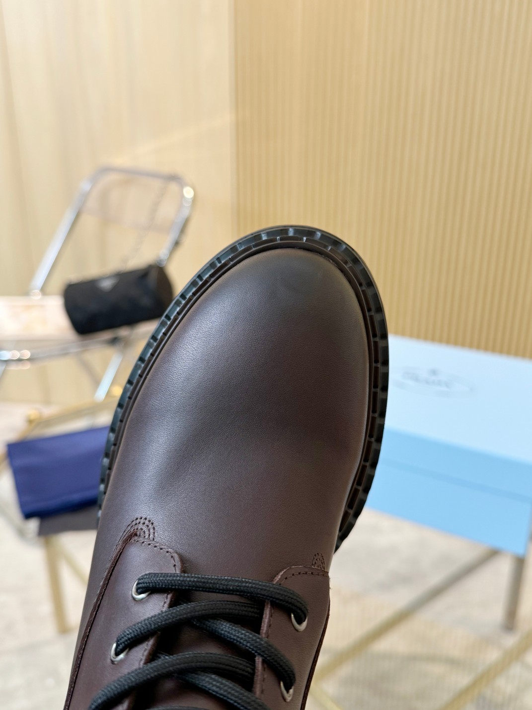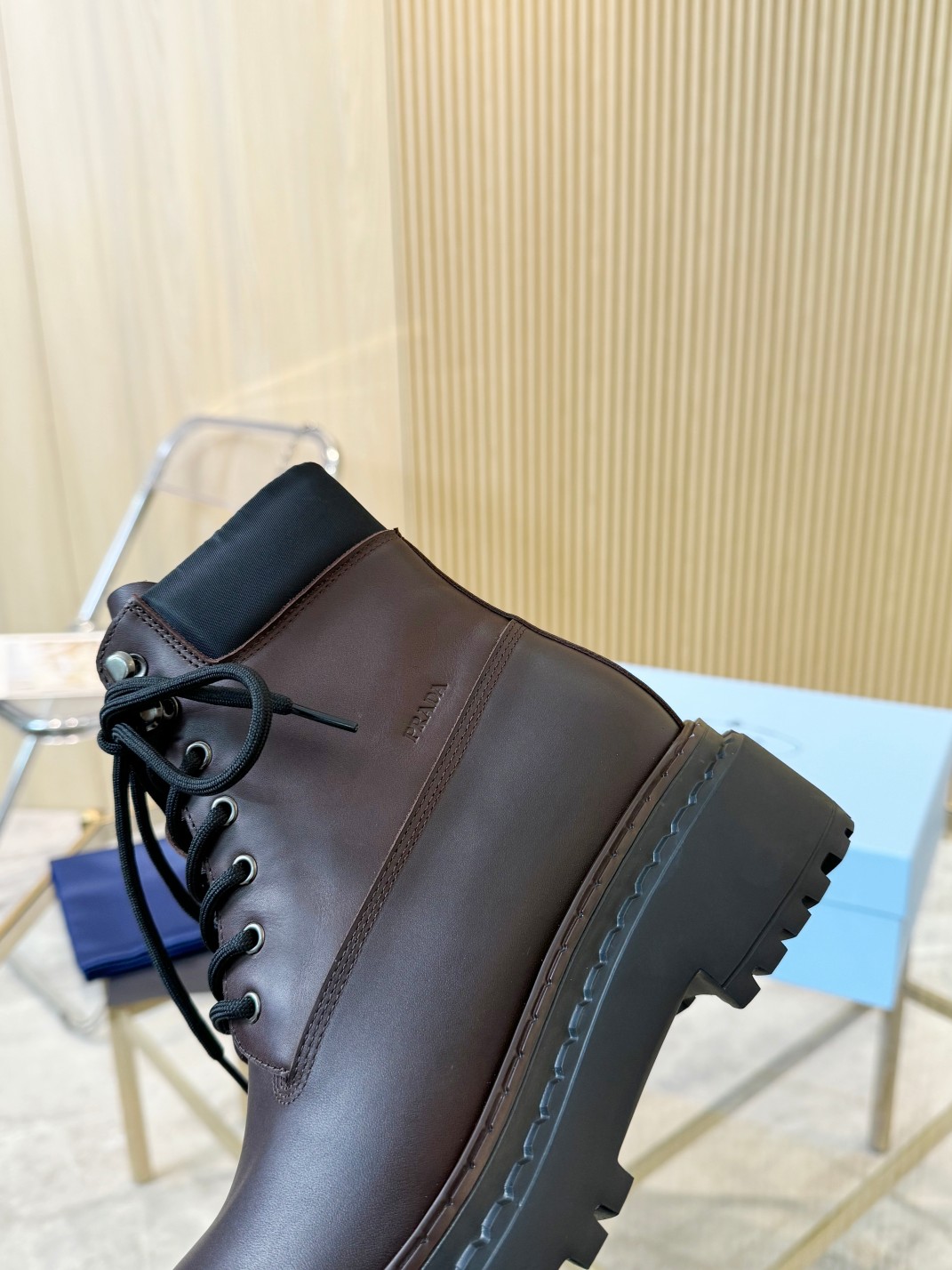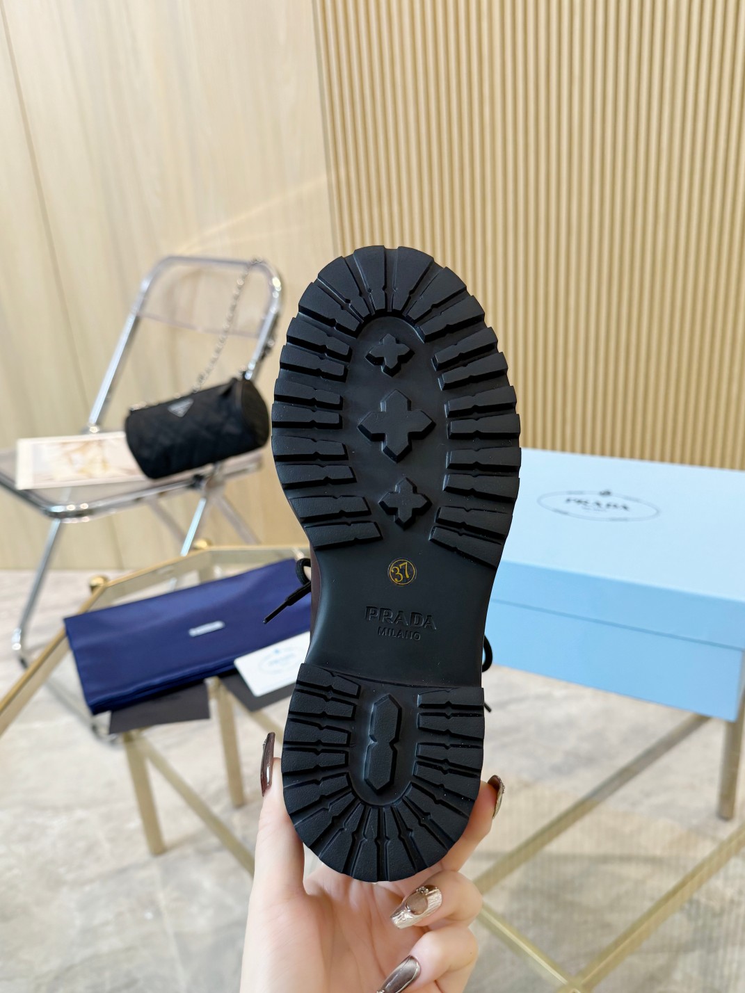 这款鞋子是AAAAA 1:1 质量 (非常棒). 使用了和原版一模一样的材料. 商标部分也保持了和普拉达/Prada一样. 图片拍摄是实物鞋子拍摄, 您所收到的实物保证和我们图片一模一样.