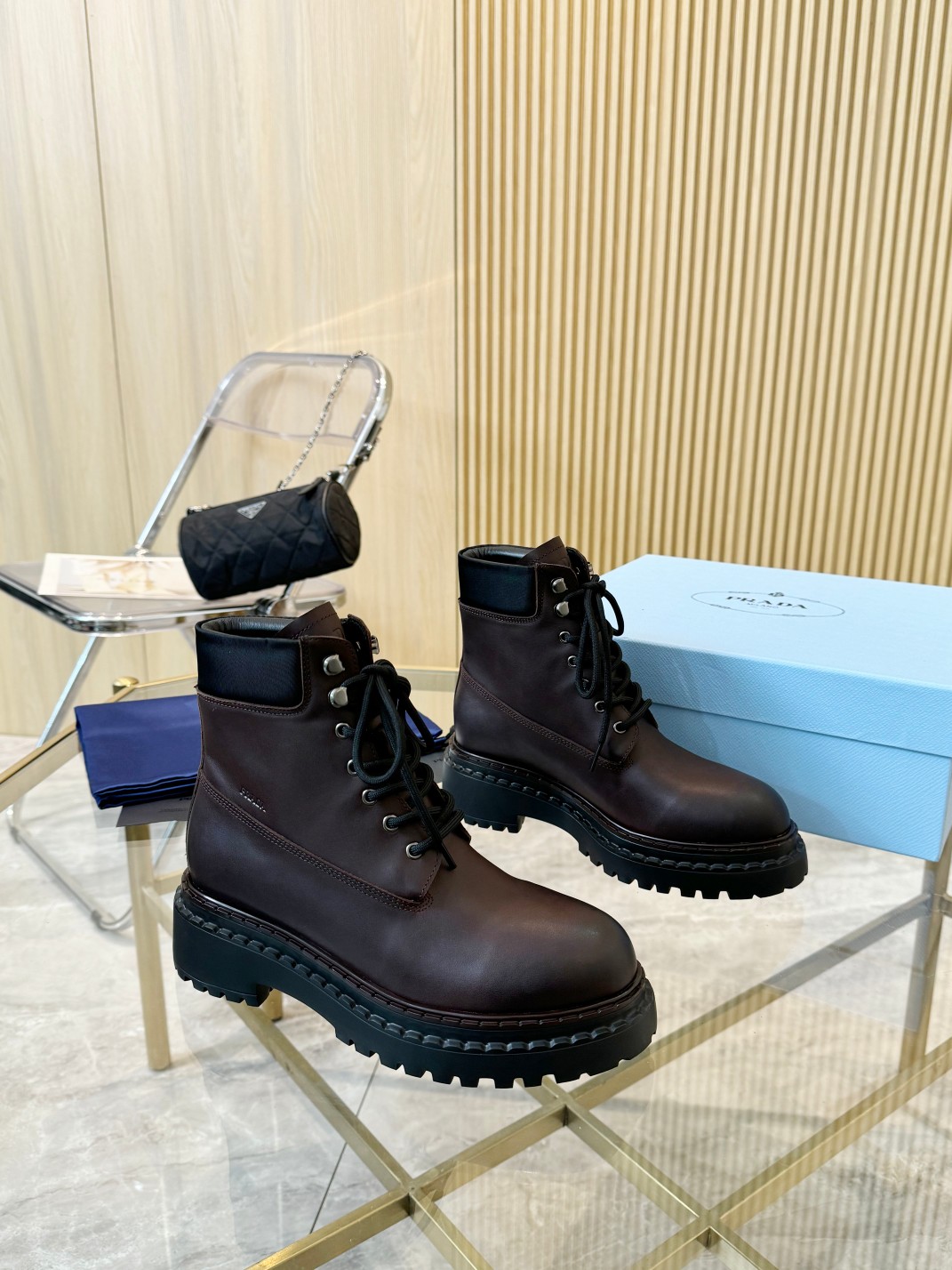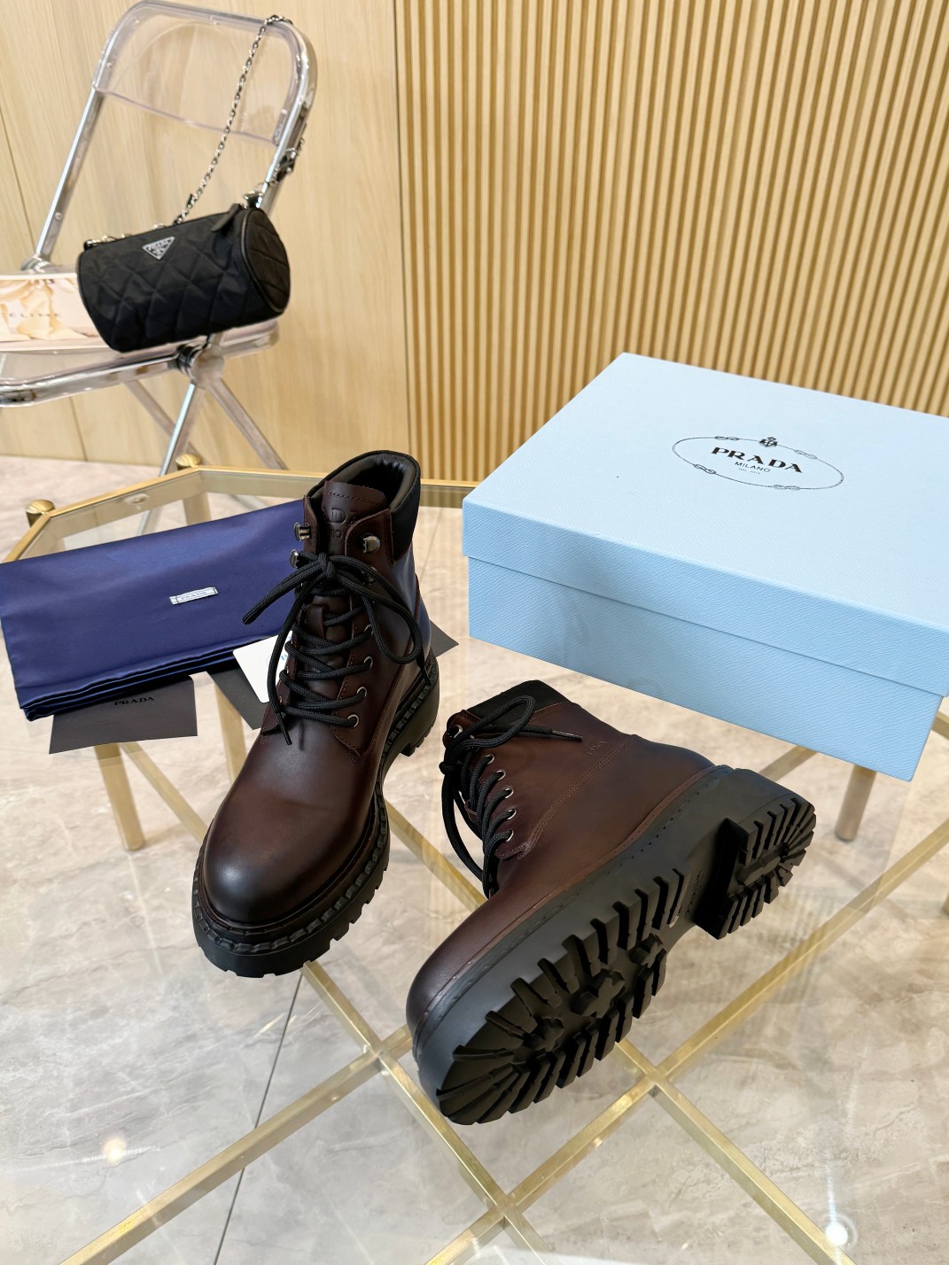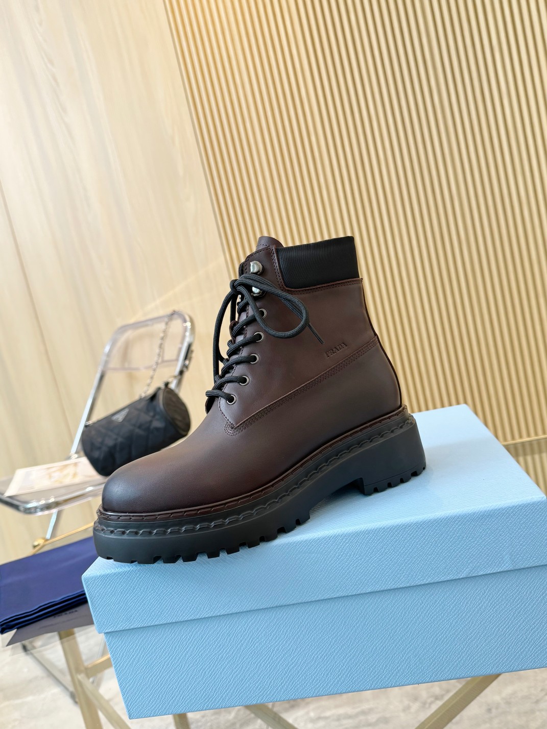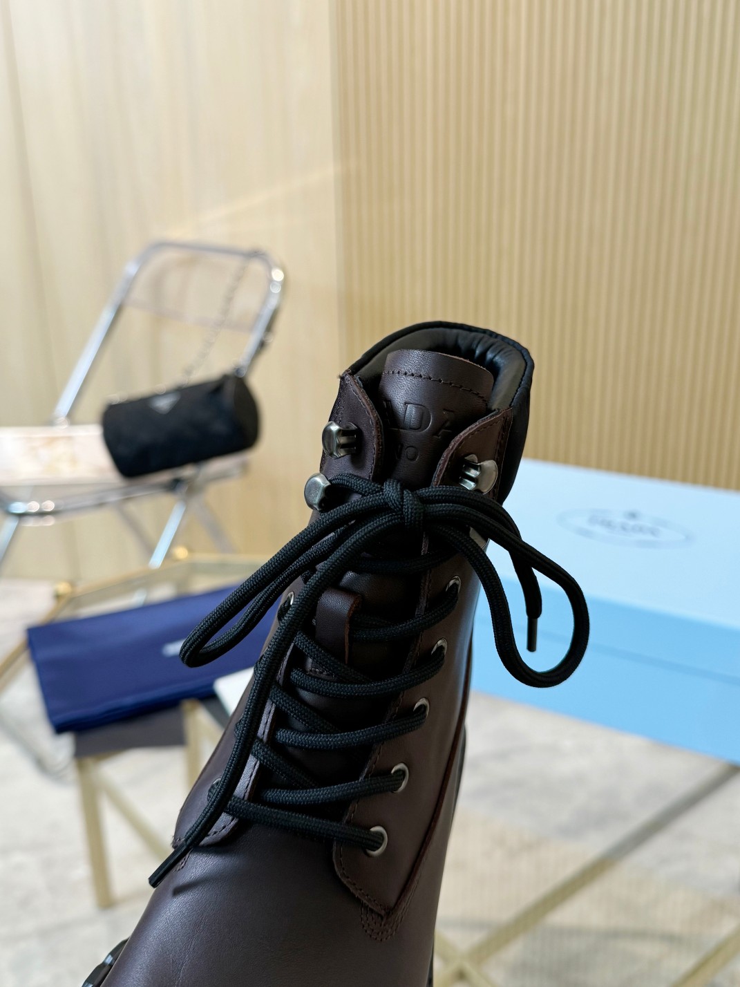 这款鞋子是AAAAA 1:1 质量 (非常棒). 使用了和原版一模一样的材料. 商标部分也保持了和普拉达/Prada一样. 图片拍摄是实物鞋子拍摄, 您所收到的实物保证和我们图片一模一样.