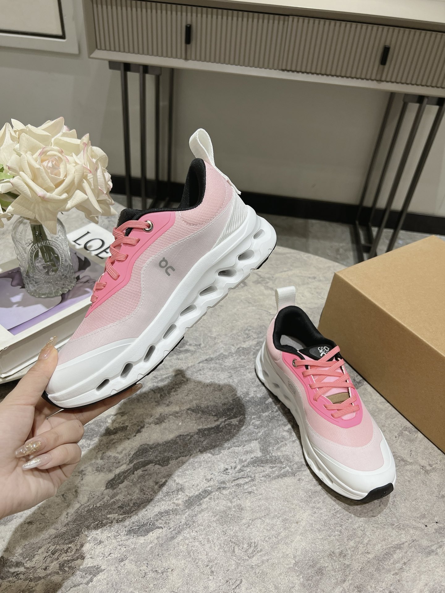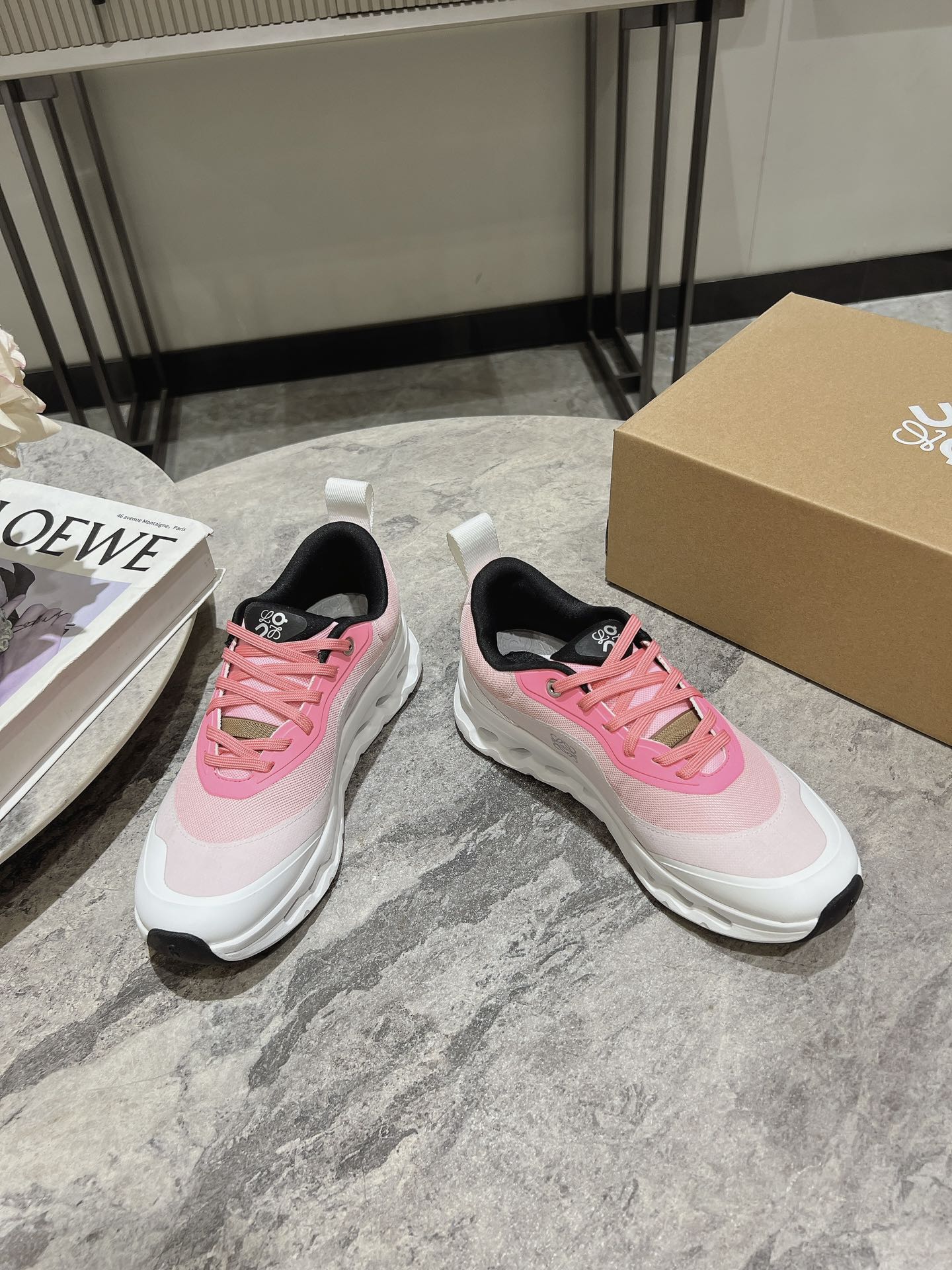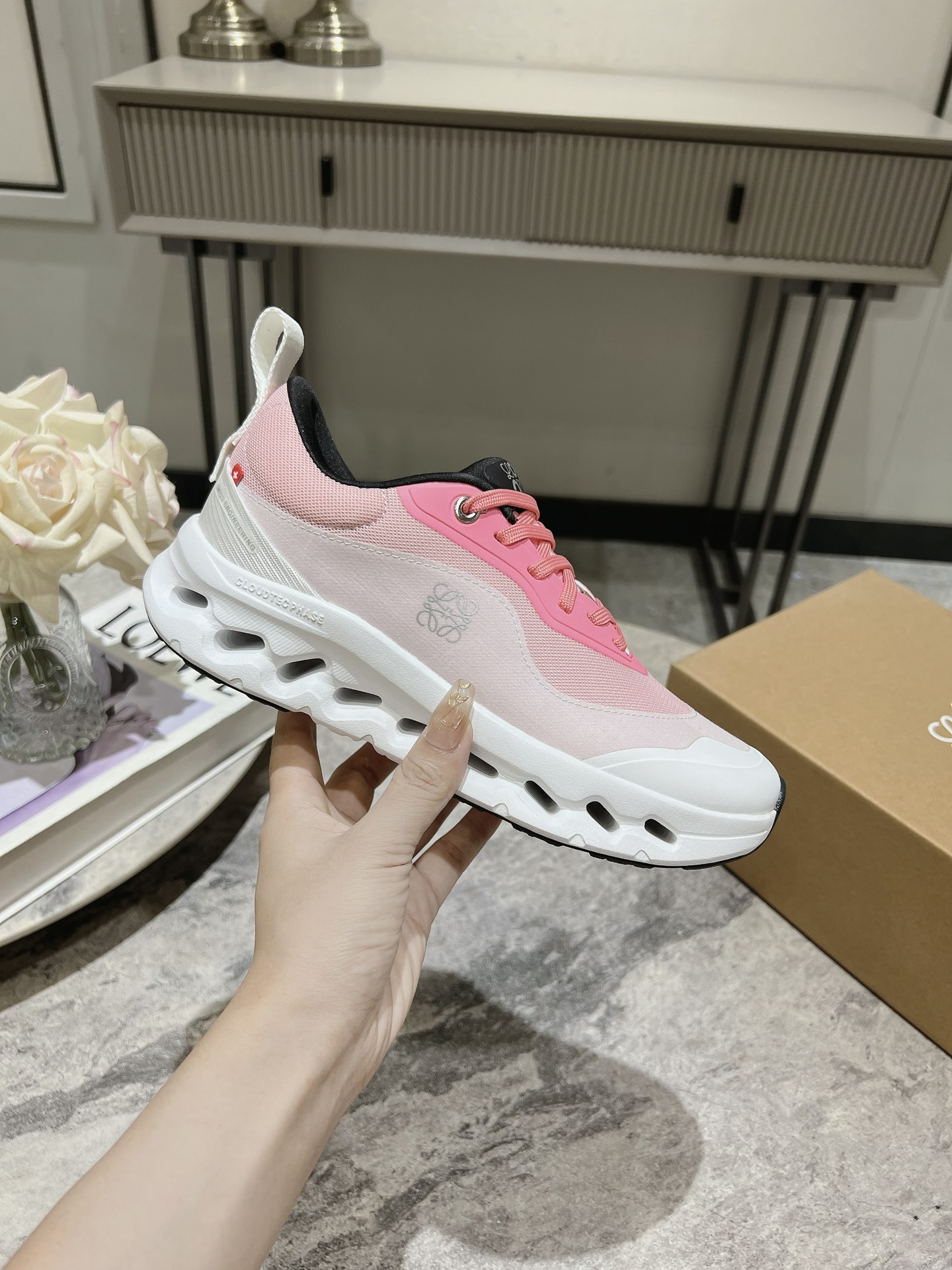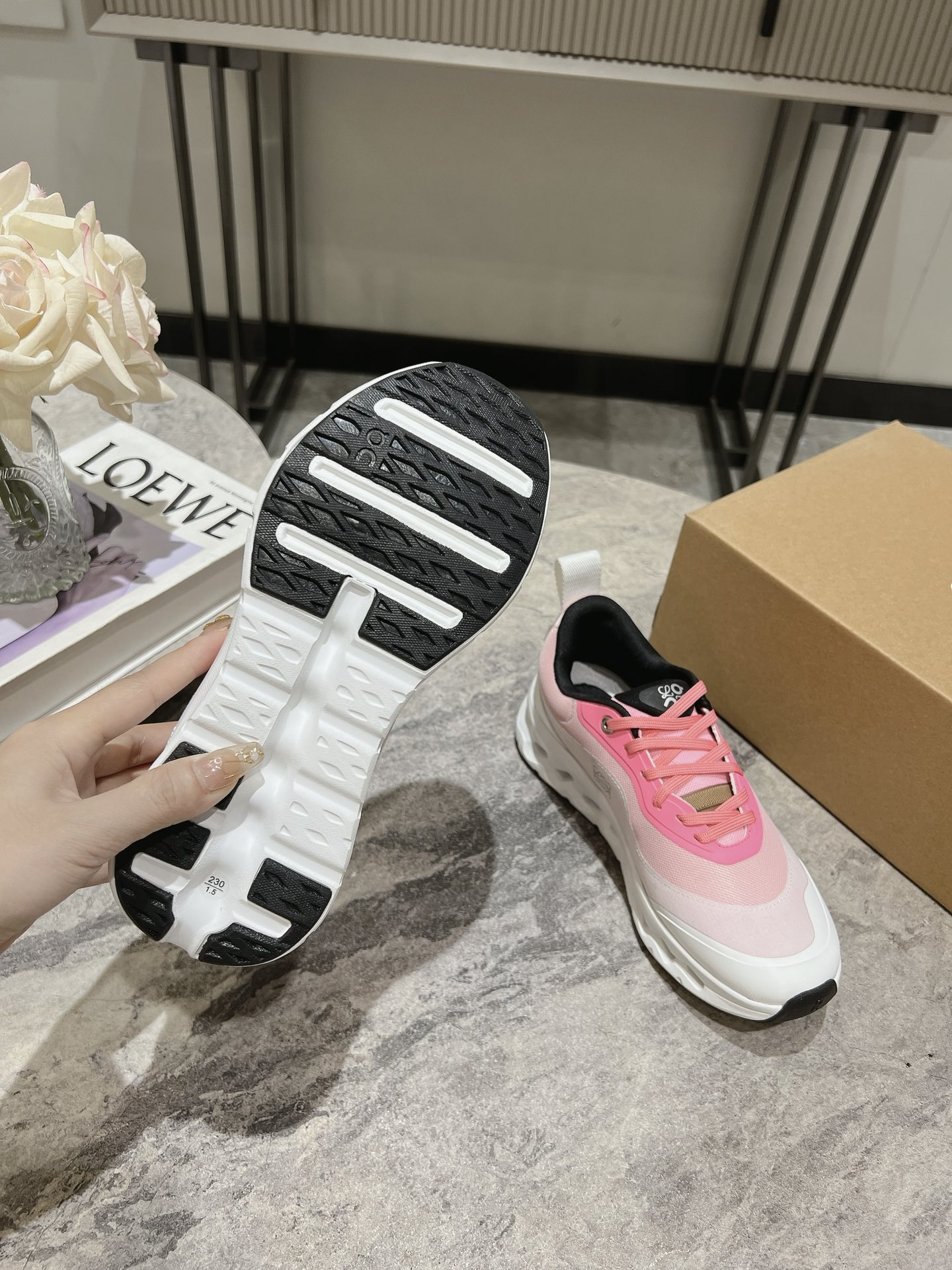 这款鞋子是AAAAA 1:1 质量 (非常棒). 使用了和原版一模一样的材料. 商标部分也保持了和Loewe & On一样. 图片拍摄是实物鞋子拍摄, 您所收到的实物保证和我们图片一模一样.