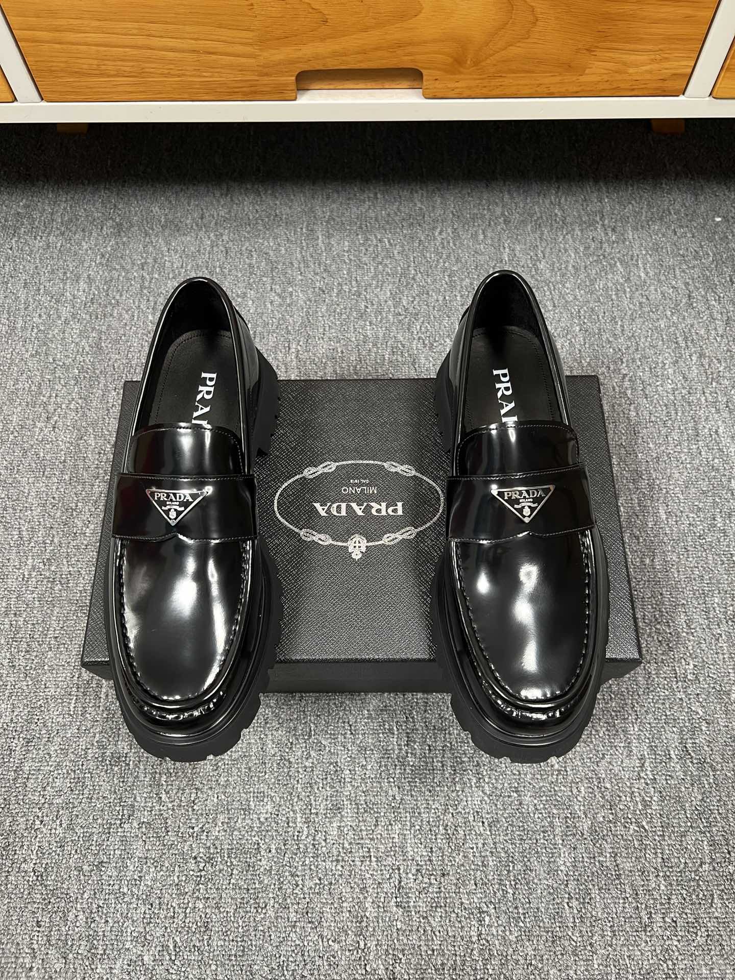 这款鞋子是AAAAA 1:1 质量 (非常棒). 使用了和原版一模一样的材料. 商标部分也保持了和普拉达/Prada一样. 图片拍摄是实物鞋子拍摄, 您所收到的实物保证和我们图片一模一样.
