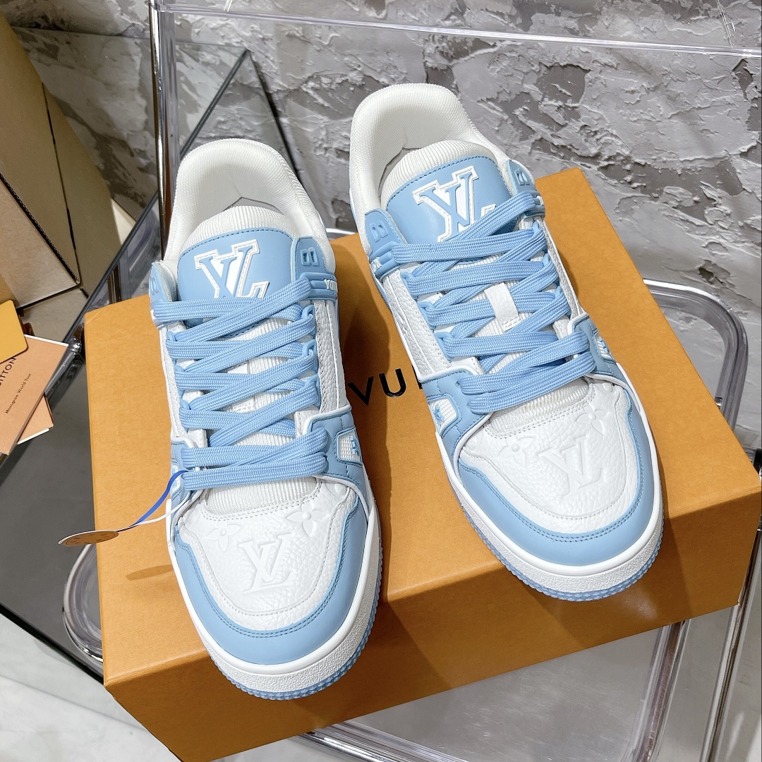 这款鞋子是AAAAA 1:1 质量 (非常棒). 使用了和原版一模一样的材料. 商标部分也保持了和路易威登/Louis Vuitton一样. 图片拍摄是实物鞋子拍摄, 您所收到的实物保证和我们图片一模一样.