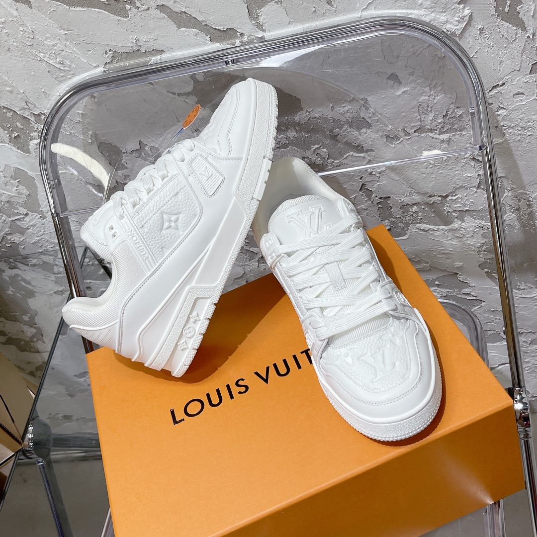 这款鞋子是AAAAA 1:1 质量 (非常棒). 使用了和原版一模一样的材料. 商标部分也保持了和路易威登/Louis Vuitton一样. 图片拍摄是实物鞋子拍摄, 您所收到的实物保证和我们图片一模一样.