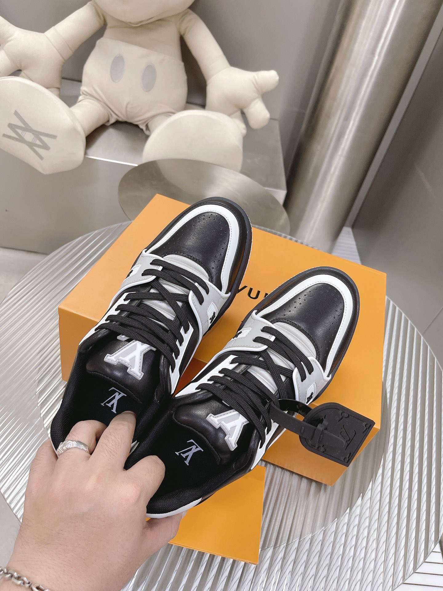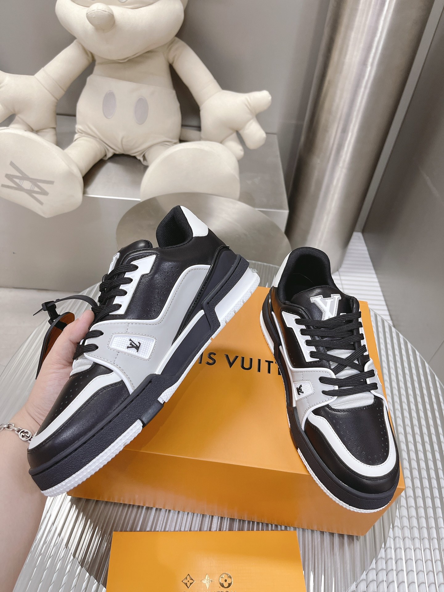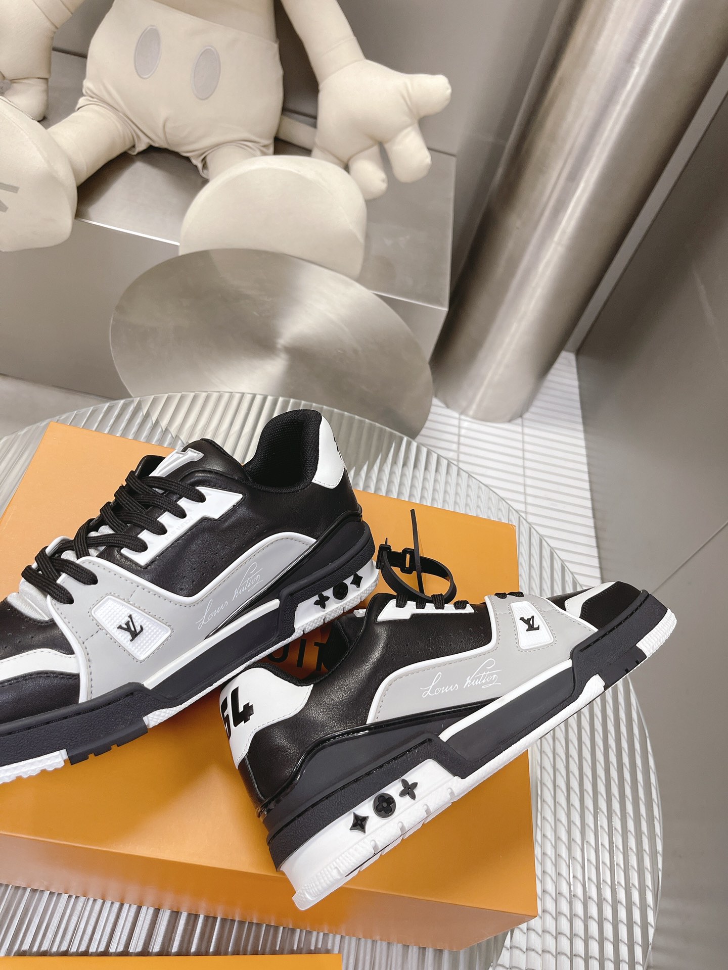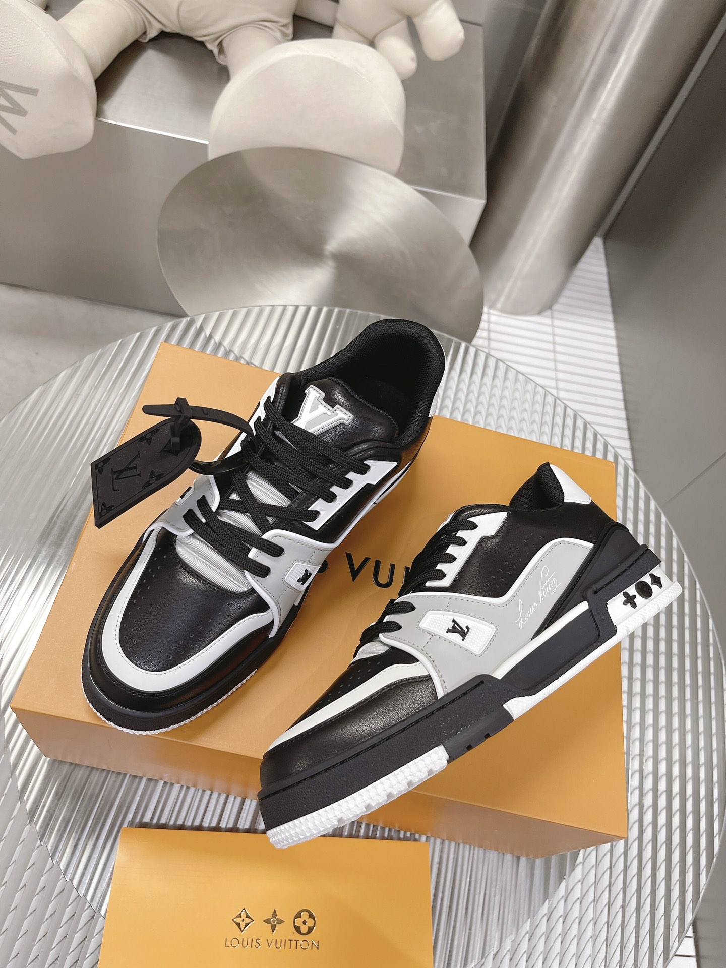 这款鞋子是AAAAA 1:1 质量 (非常棒). 使用了和原版一模一样的材料. 商标部分也保持了和路易威登/Louis Vuitton一样. 图片拍摄是实物鞋子拍摄, 您所收到的实物保证和我们图片一模一样.