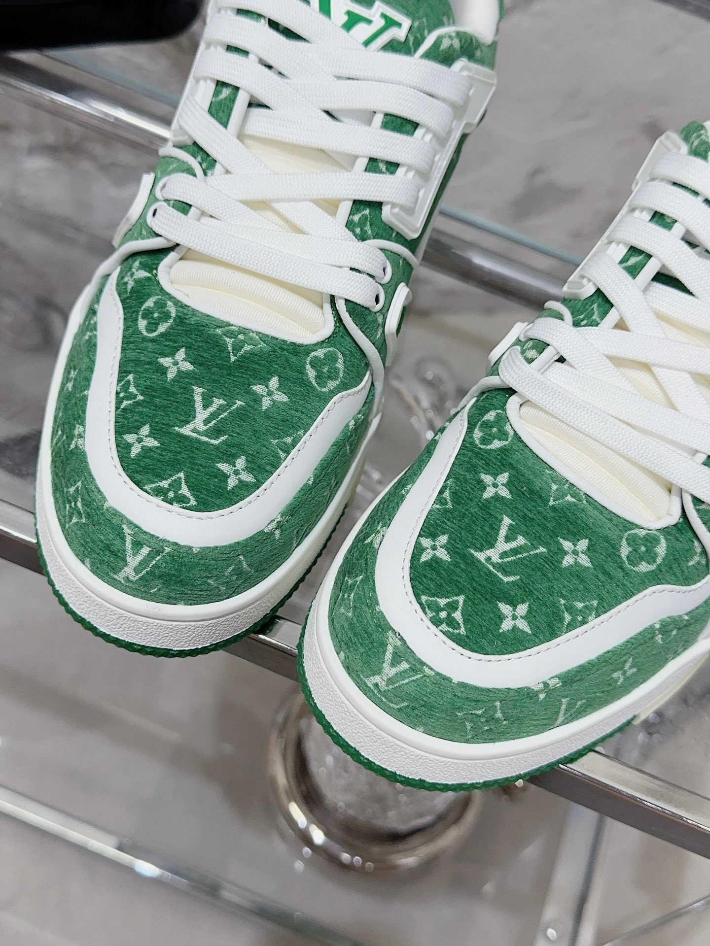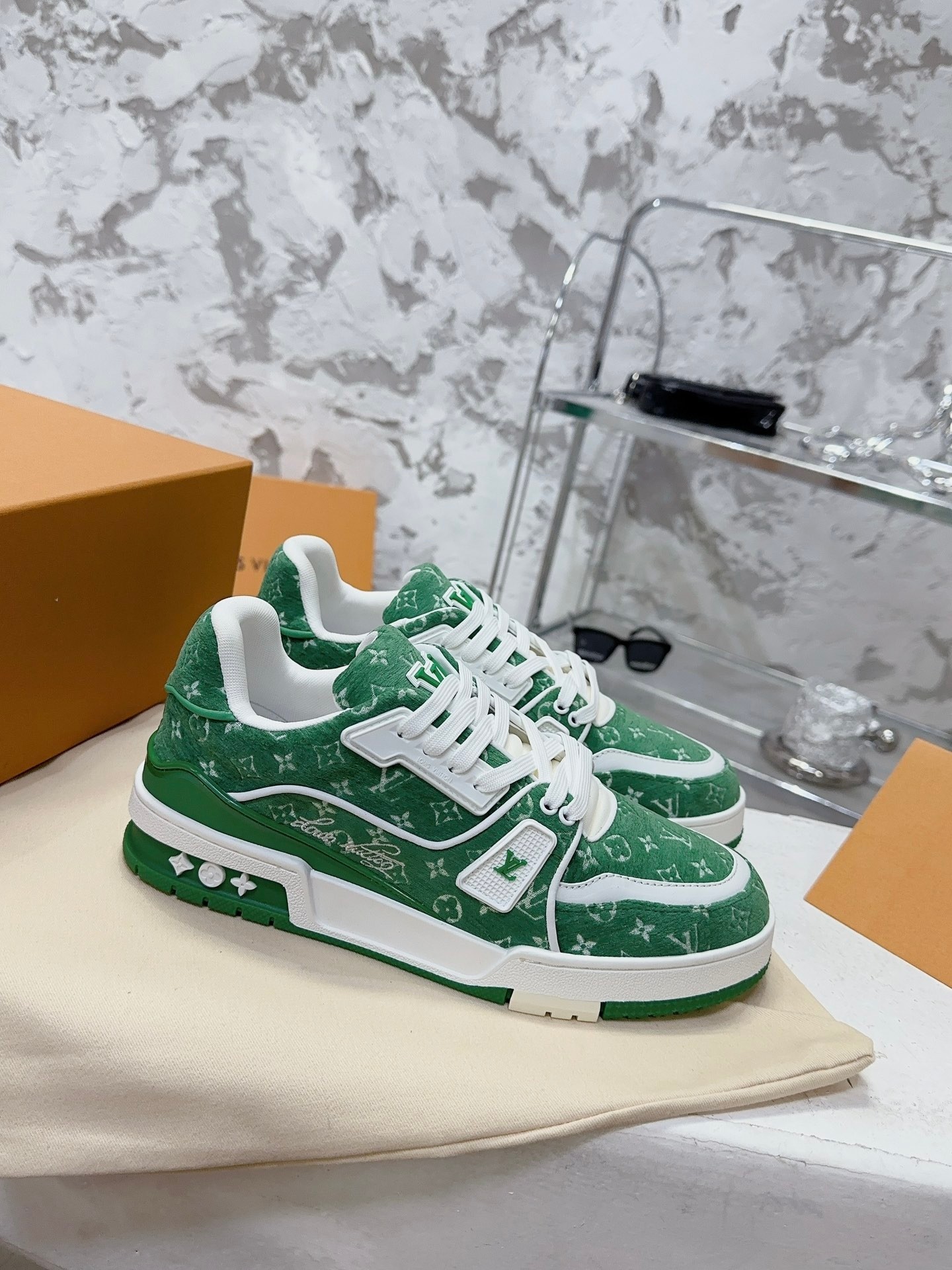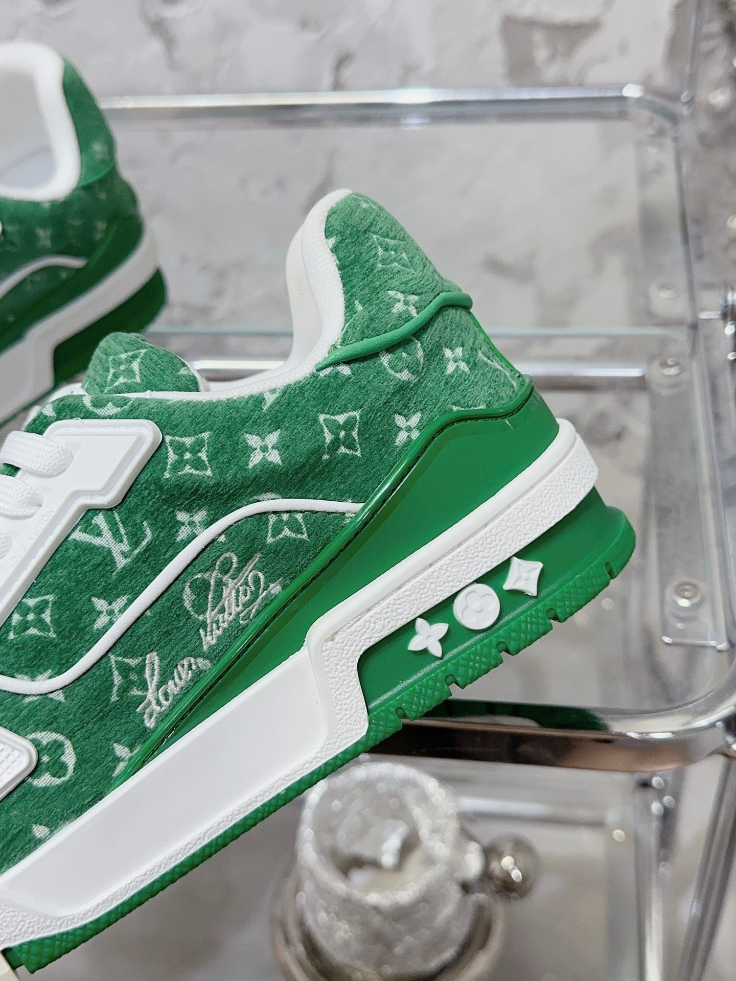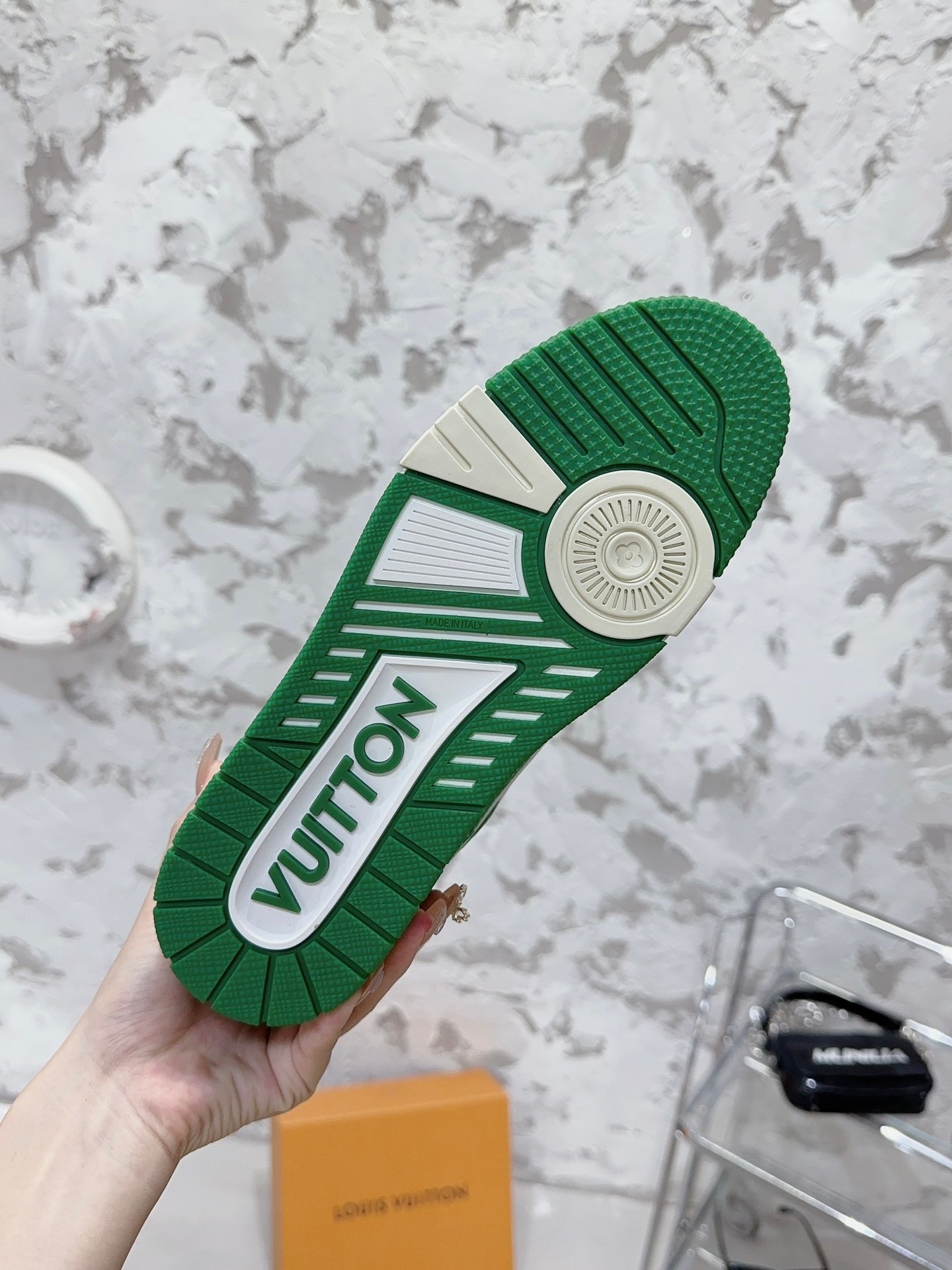 这款鞋子是AAAAA 1:1 质量 (非常棒). 使用了和原版一模一样的材料. 商标部分也保持了和路易威登/Louis Vuitton一样. 图片拍摄是实物鞋子拍摄, 您所收到的实物保证和我们图片一模一样.