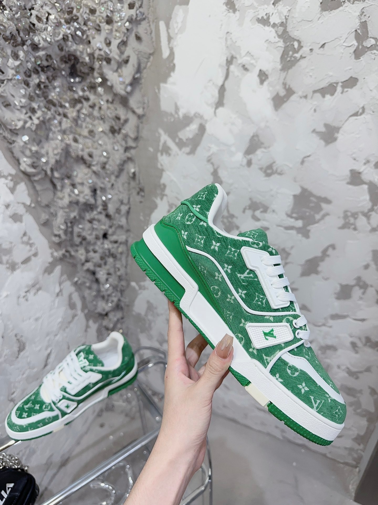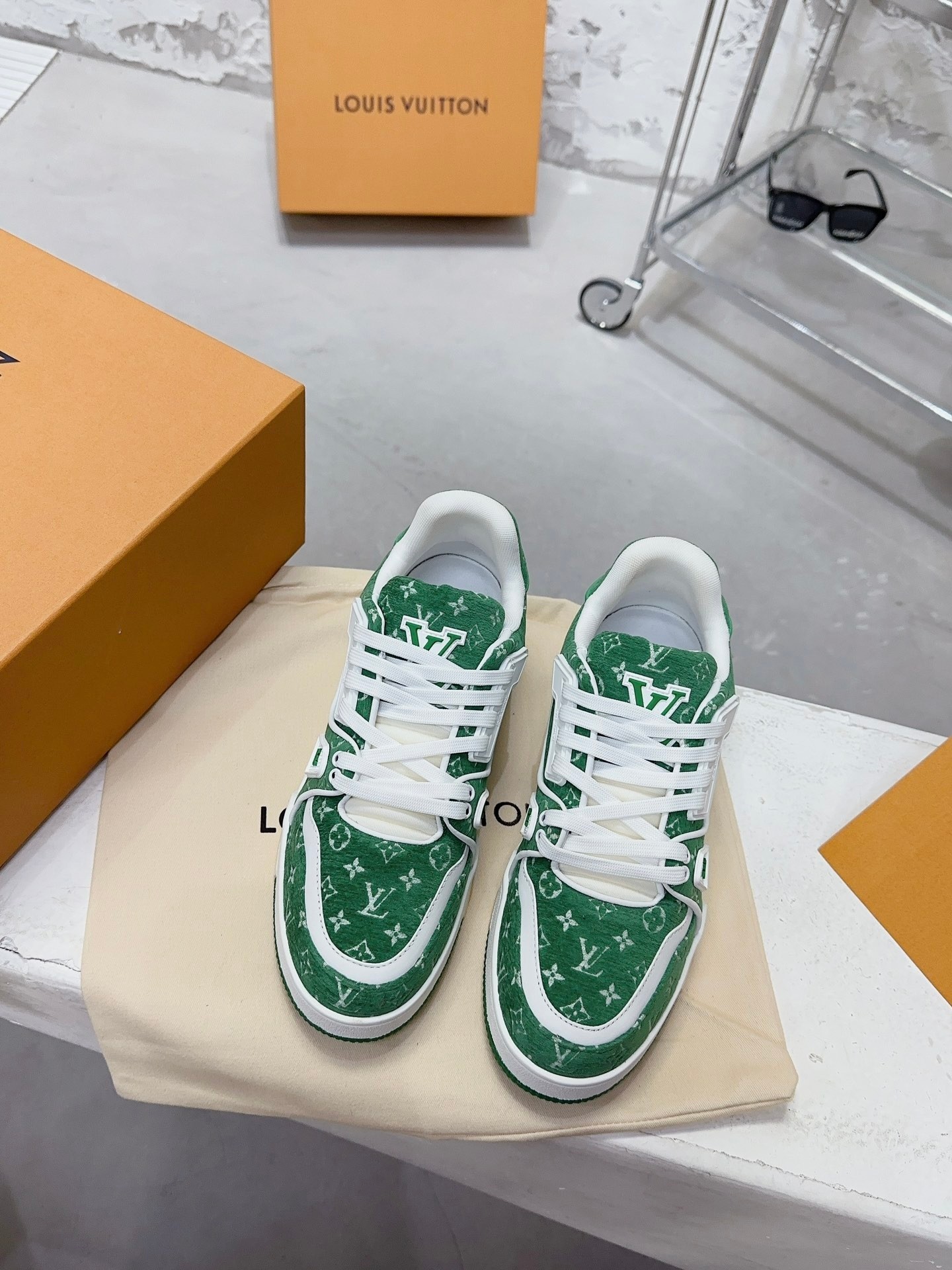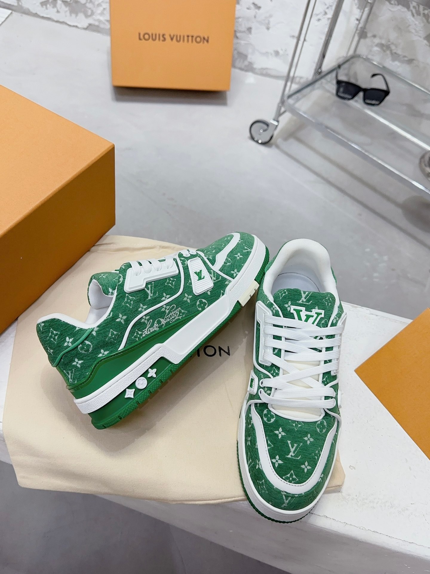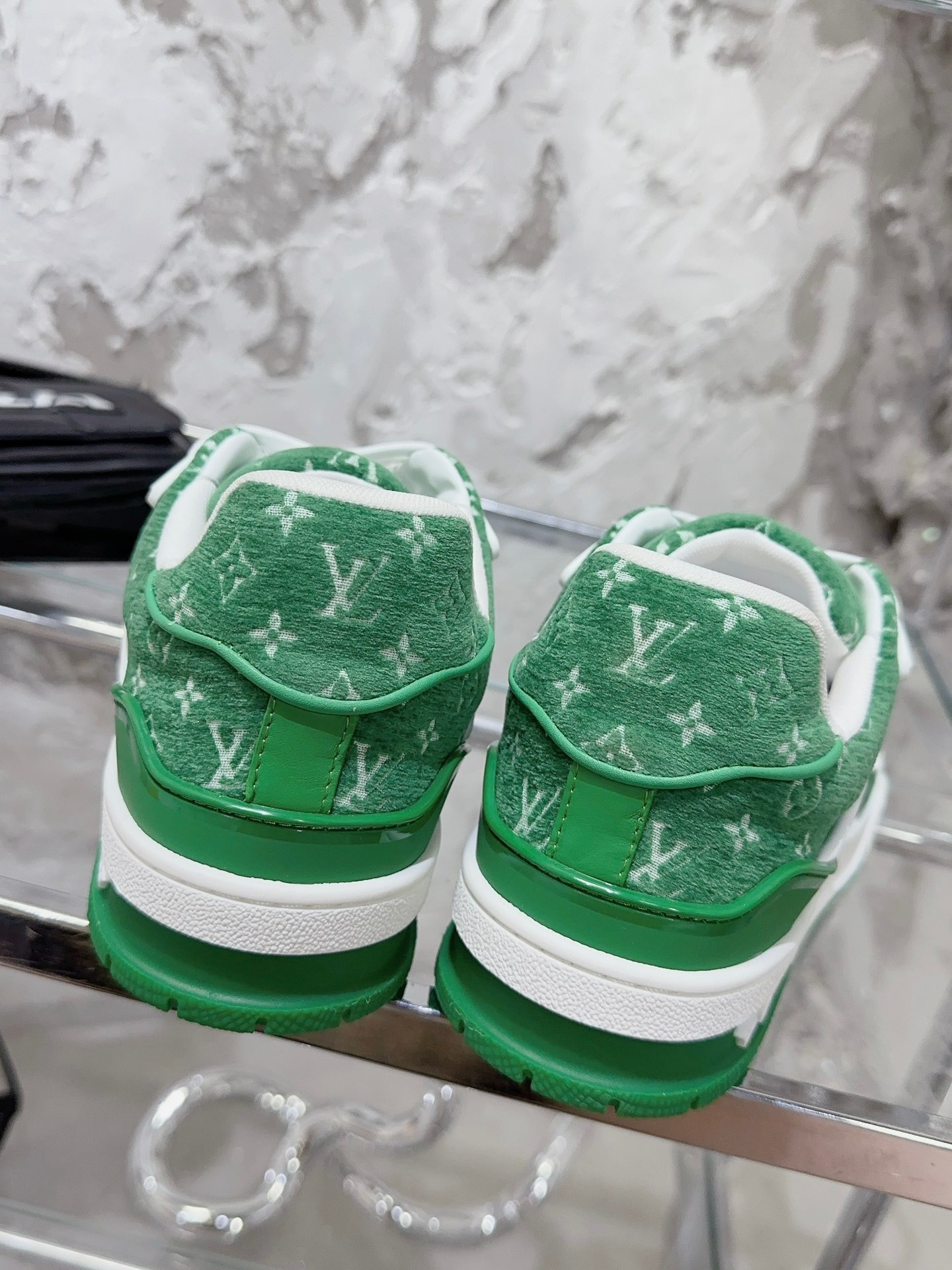 这款鞋子是AAAAA 1:1 质量 (非常棒). 使用了和原版一模一样的材料. 商标部分也保持了和路易威登/Louis Vuitton一样. 图片拍摄是实物鞋子拍摄, 您所收到的实物保证和我们图片一模一样.