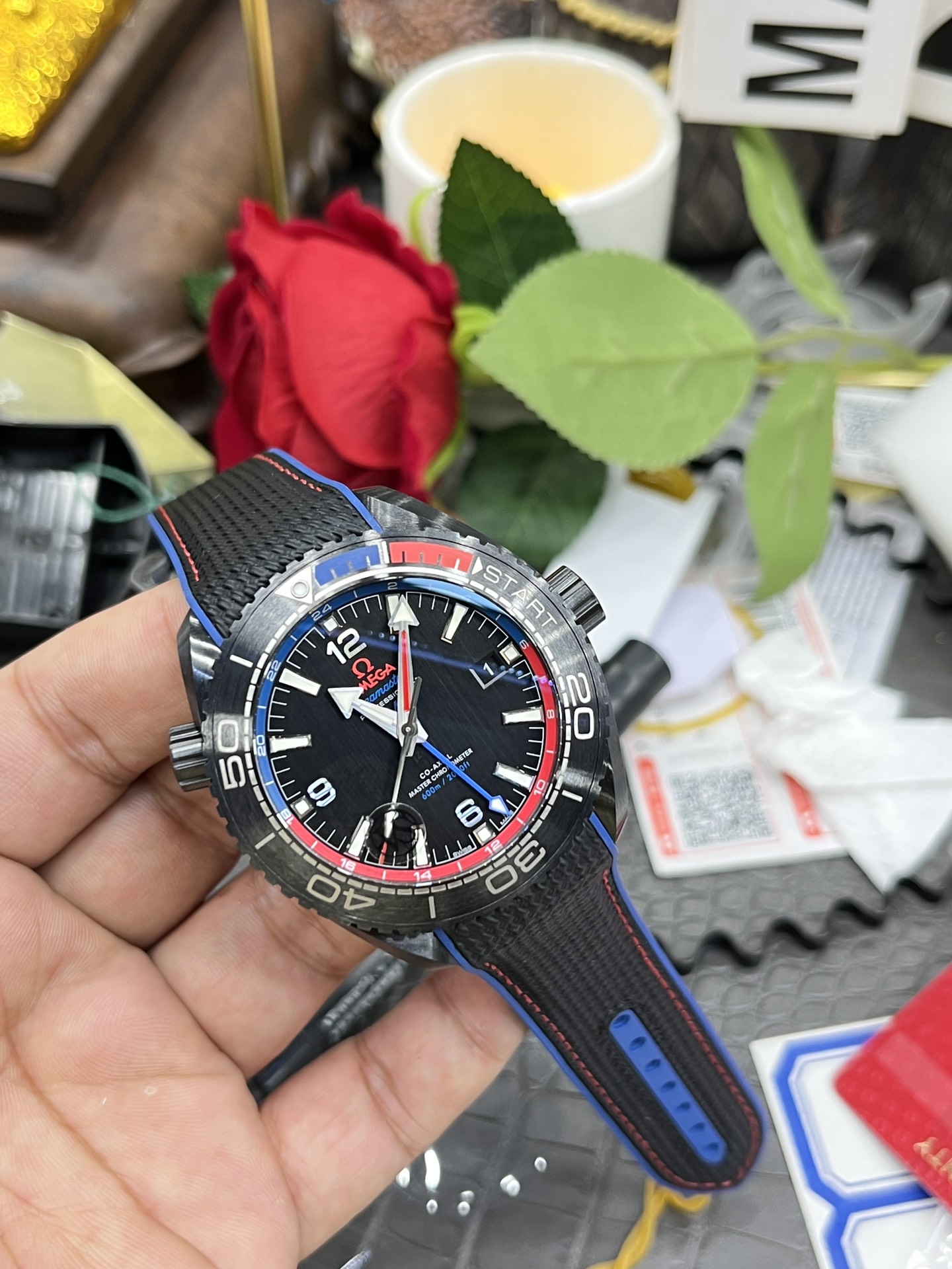 这款手表是AAAAA 1:1 质量 (非常棒). 使用了和原版一模一样的材料. 商标部分也保持了和欧米茄/Omega一样. 图片拍摄是实物手表拍摄, 您所收到的实物保证和我们图片一模一样.