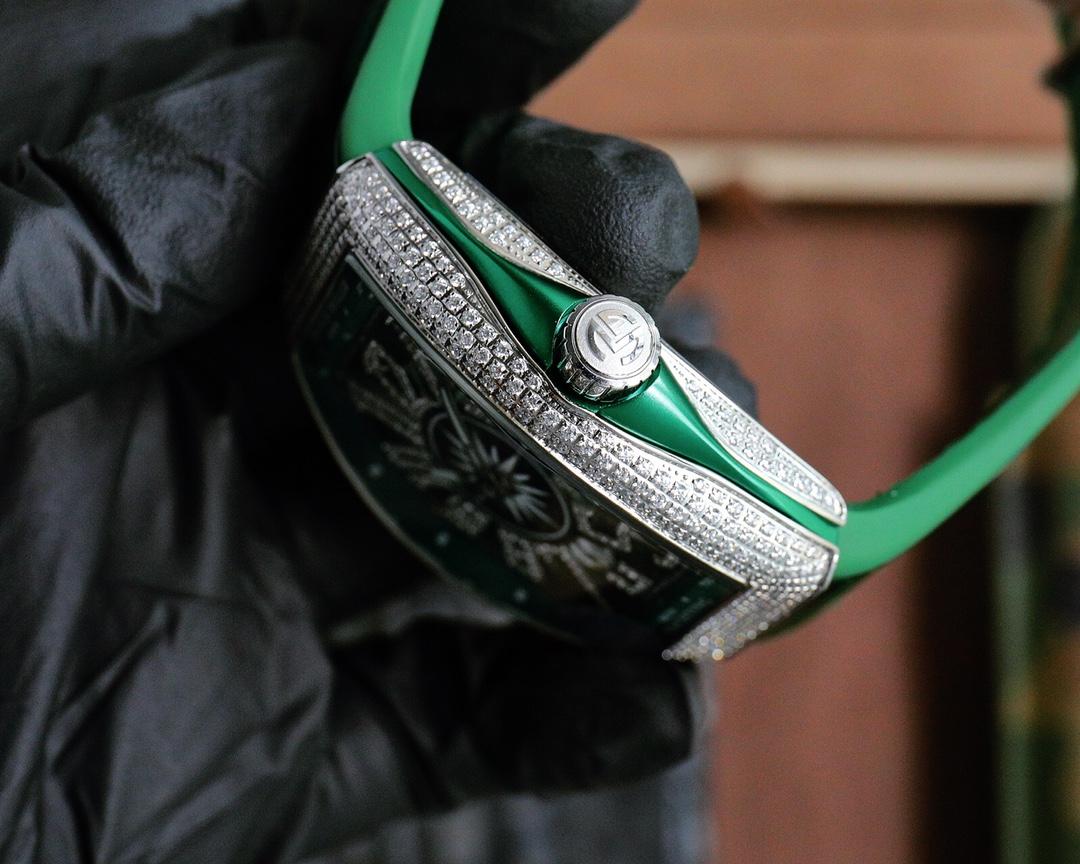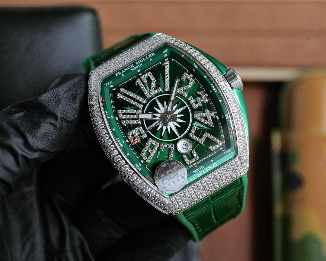 这款手表是AAAAA 1:1 质量 (非常棒). 使用了和原版一模一样的材料. 商标部分也保持了和Franck Mulle一样. 图片拍摄是实物手表拍摄, 您所收到的实物保证和我们图片一模一样.