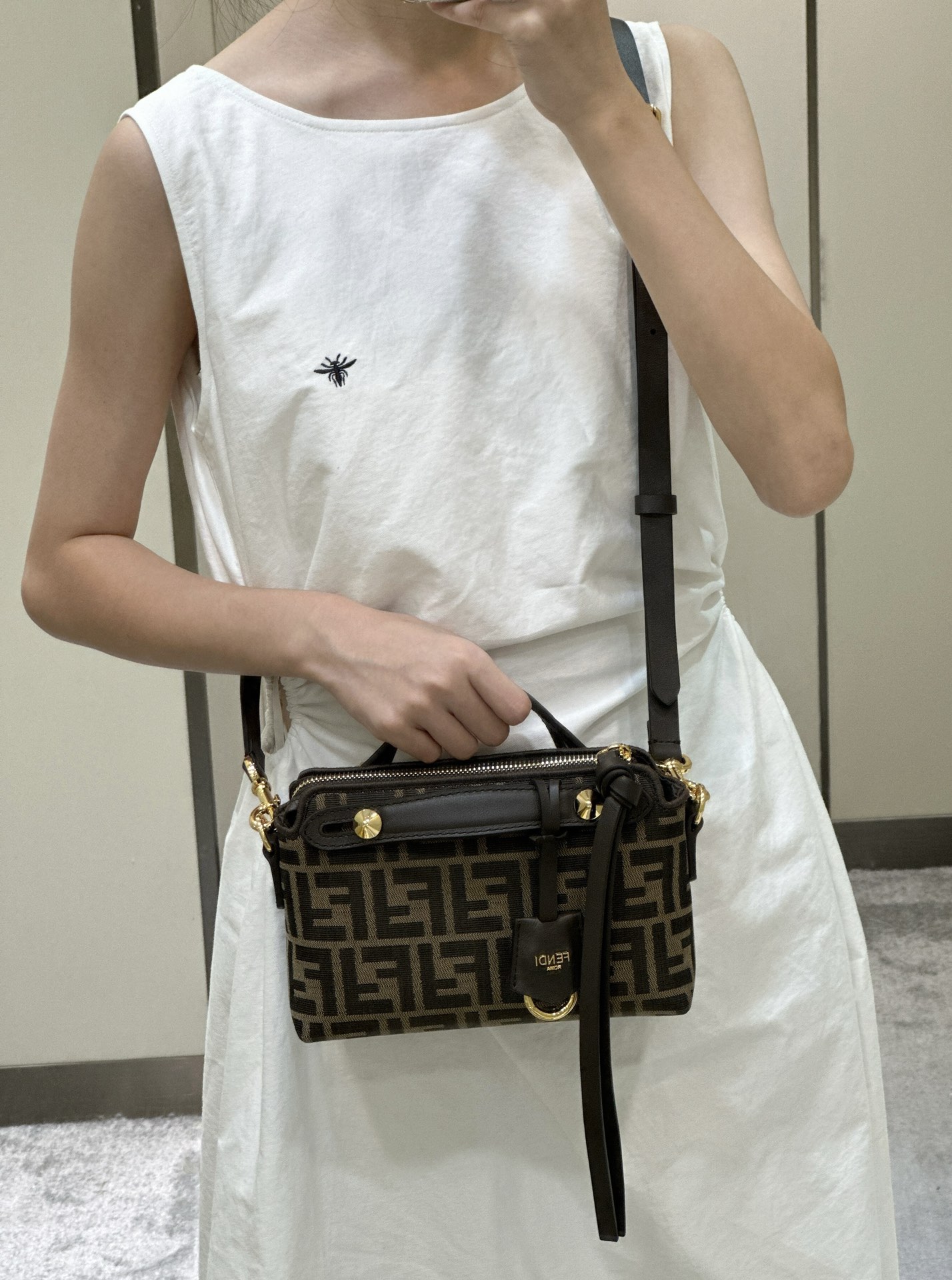 这款包包是AAAAA 1:1 质量 (非常棒). 使用了和原版一模一样的材料. 商标部分也保持了和芬迪/Fendi一样. 图片拍摄是实物包包拍摄, 您所收到的实物保证和我们图片一模一样.