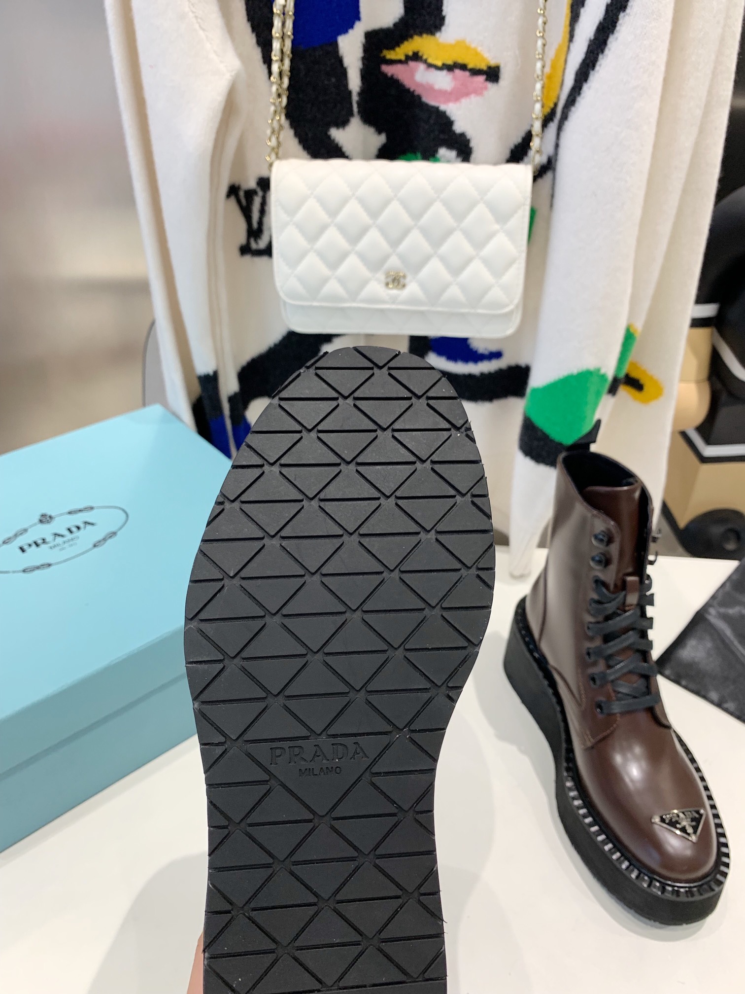 这款鞋子是AAAAA 1:1 质量 (非常棒). 使用了和原版一模一样的材料. 商标部分也保持了和普拉达/Prada一样. 图片拍摄是实物鞋子拍摄, 您所收到的实物保证和我们图片一模一样.