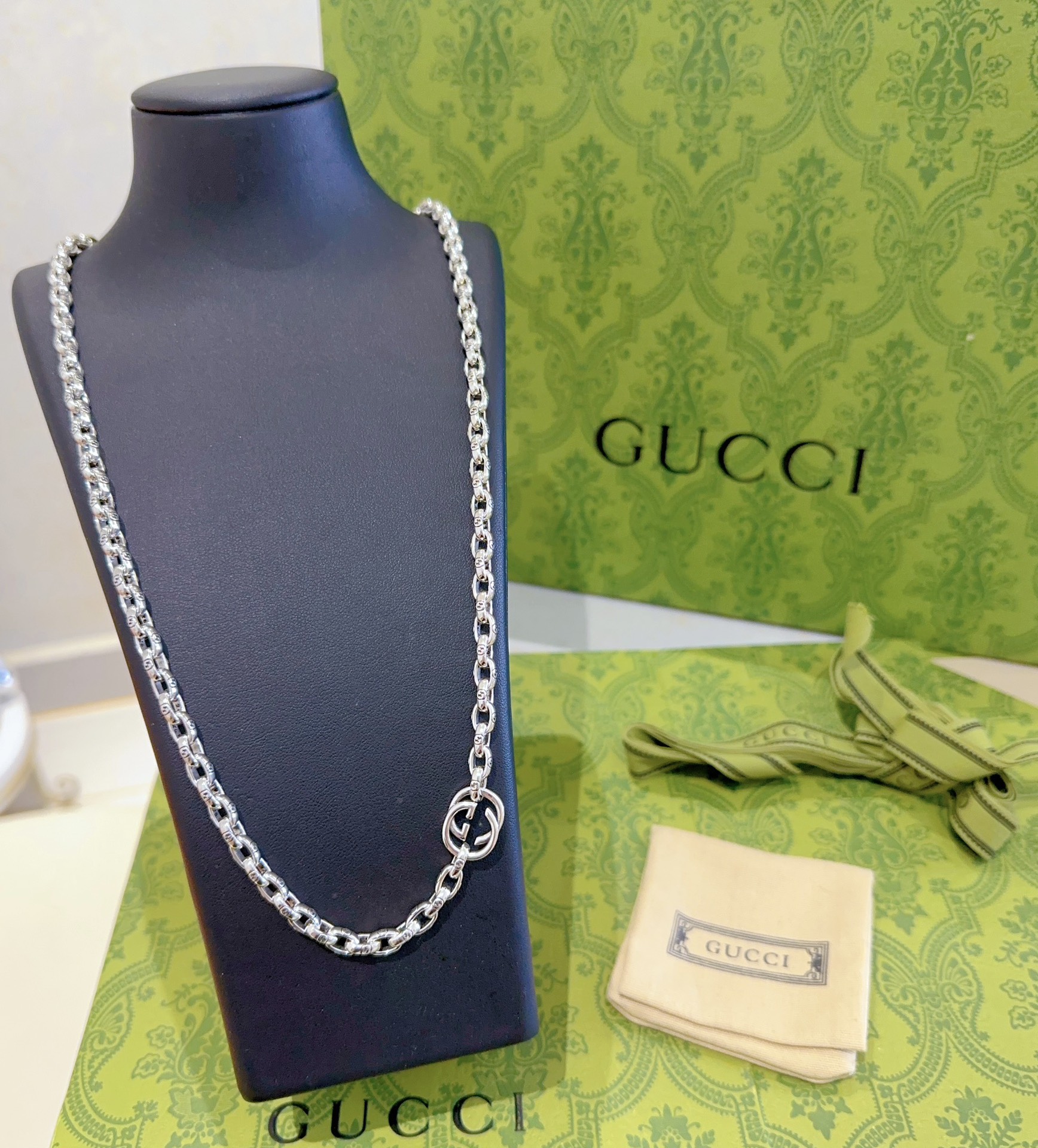 这款首饰是AAAAA 1:1 质量 (非常棒). 使用了和原版一模一样的材料. 商标部分也保持了和古奇/Gucci一样. 图片拍摄是实物首饰拍摄, 您所收到的实物保证和我们图片一模一样.
