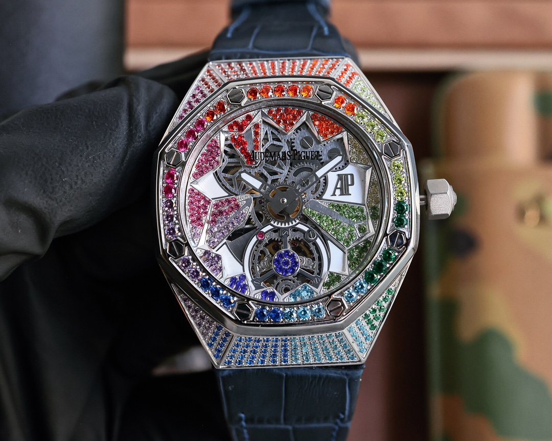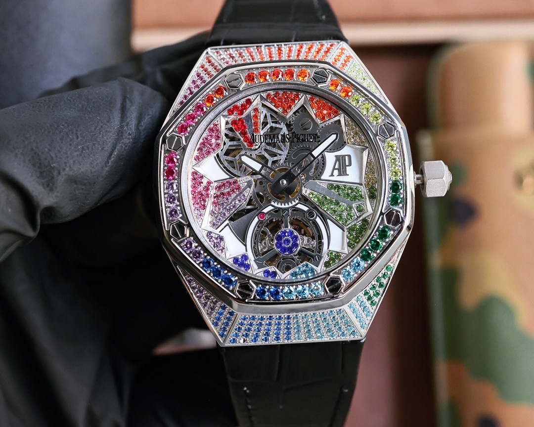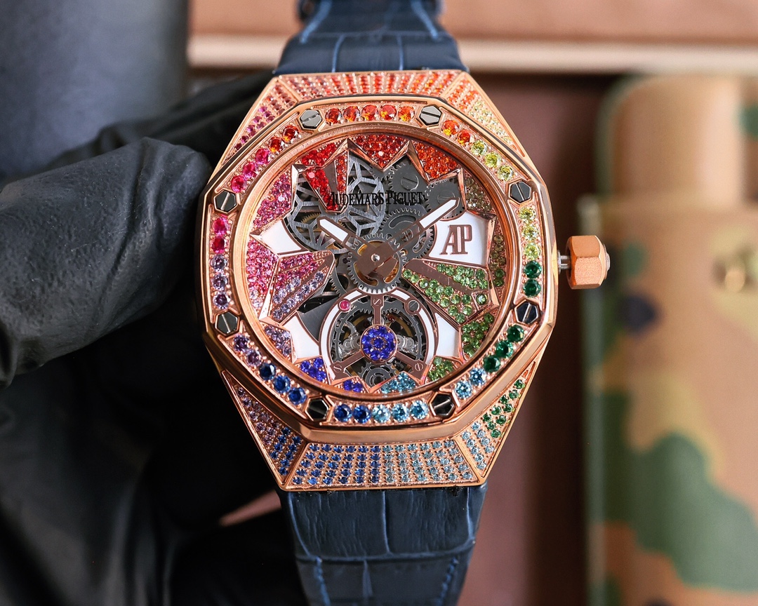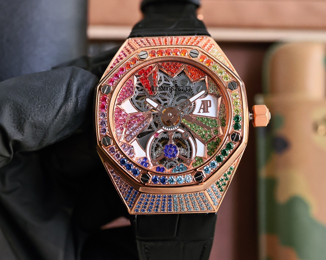 这款手表是AAAAA 1:1 质量 (非常棒). 使用了和原版一模一样的材料. 商标部分也保持了和爱彼/Audemars Piguet一样. 图片拍摄是实物手表拍摄, 您所收到的实物保证和我们图片一模一样.