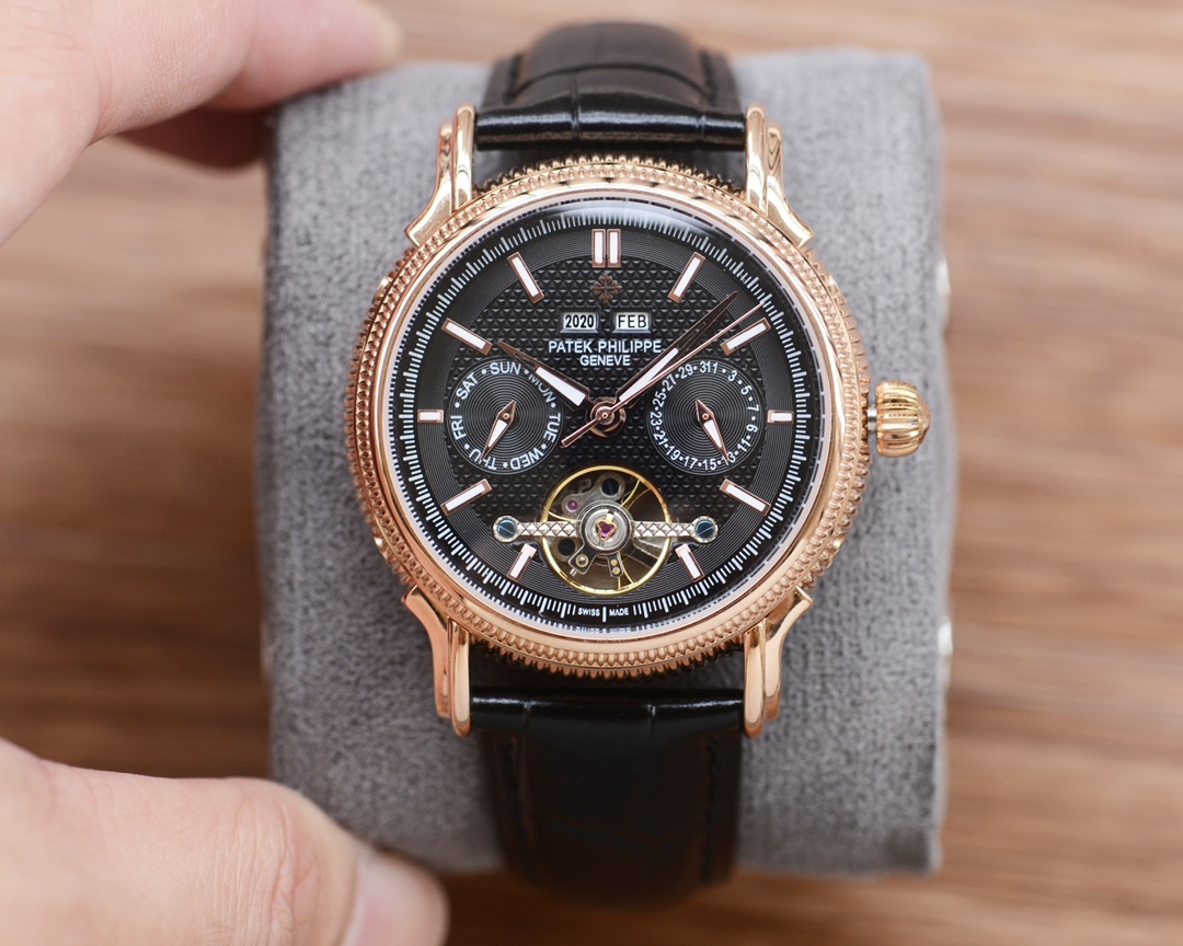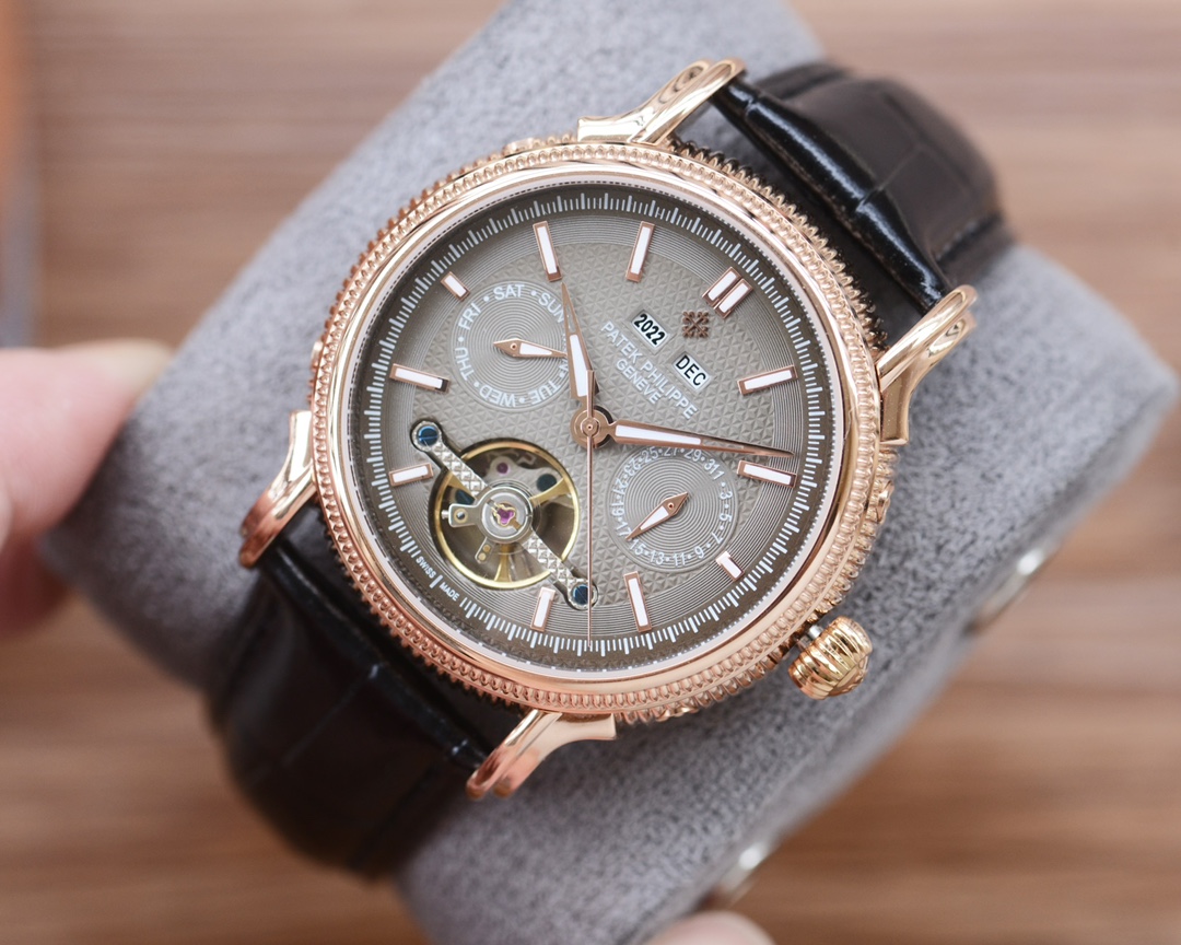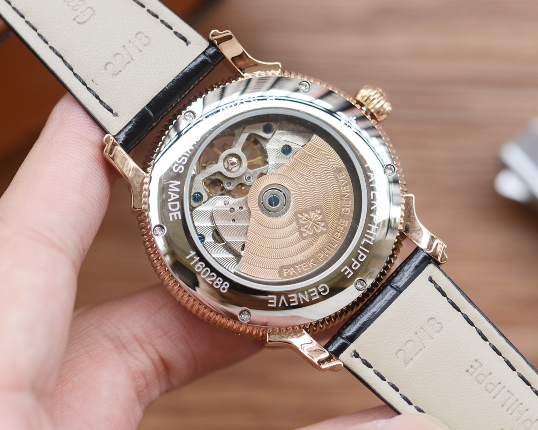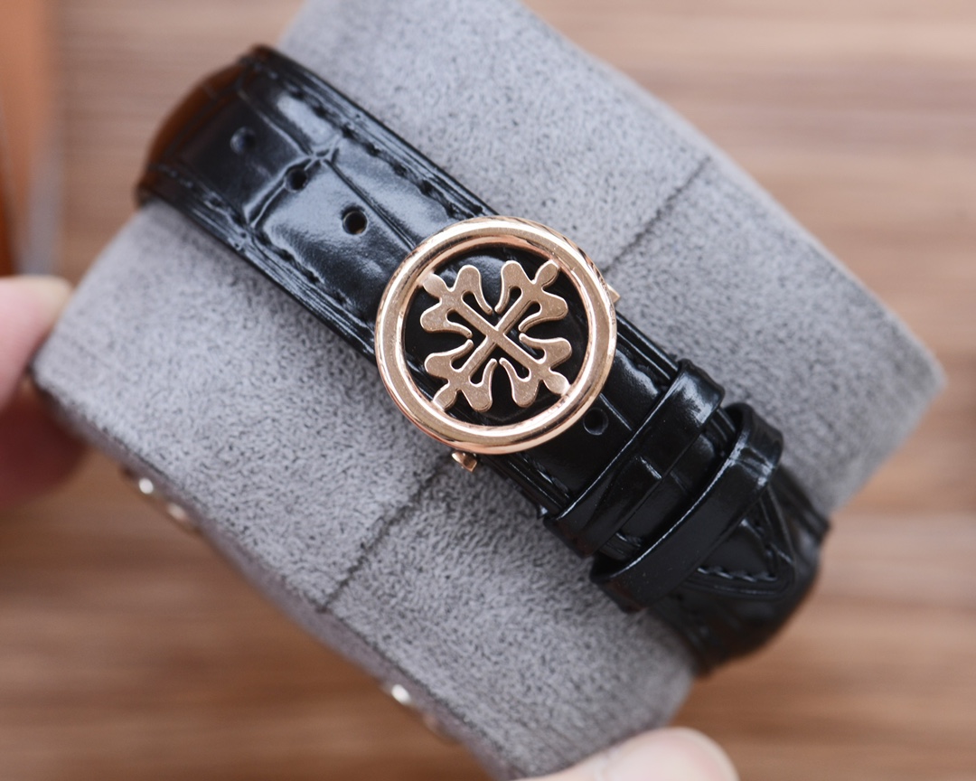 这款手表是AAAAA 1:1 质量 (非常棒). 使用了和原版一模一样的材料. 商标部分也保持了和百达翡丽/Patek Philippe一样. 图片拍摄是实物手表拍摄, 您所收到的实物保证和我们图片一模一样.