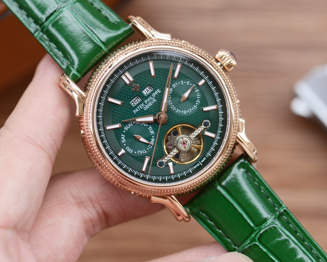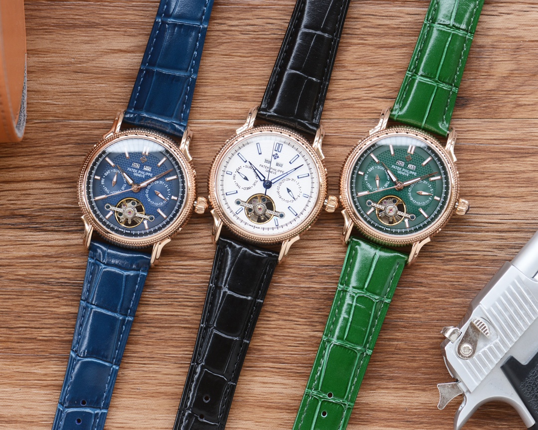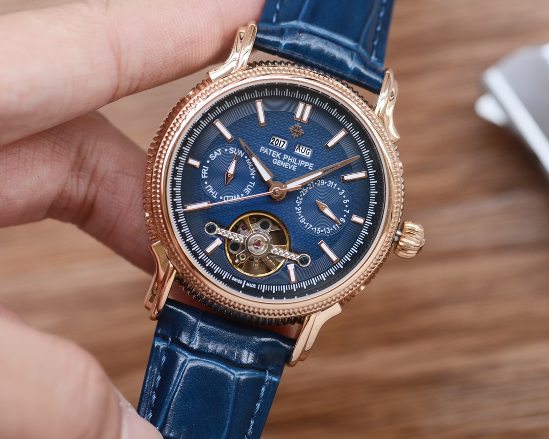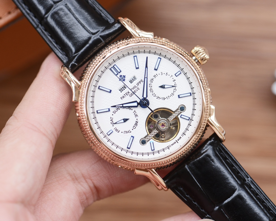 这款手表是AAAAA 1:1 质量 (非常棒). 使用了和原版一模一样的材料. 商标部分也保持了和百达翡丽/Patek Philippe一样. 图片拍摄是实物手表拍摄, 您所收到的实物保证和我们图片一模一样.
