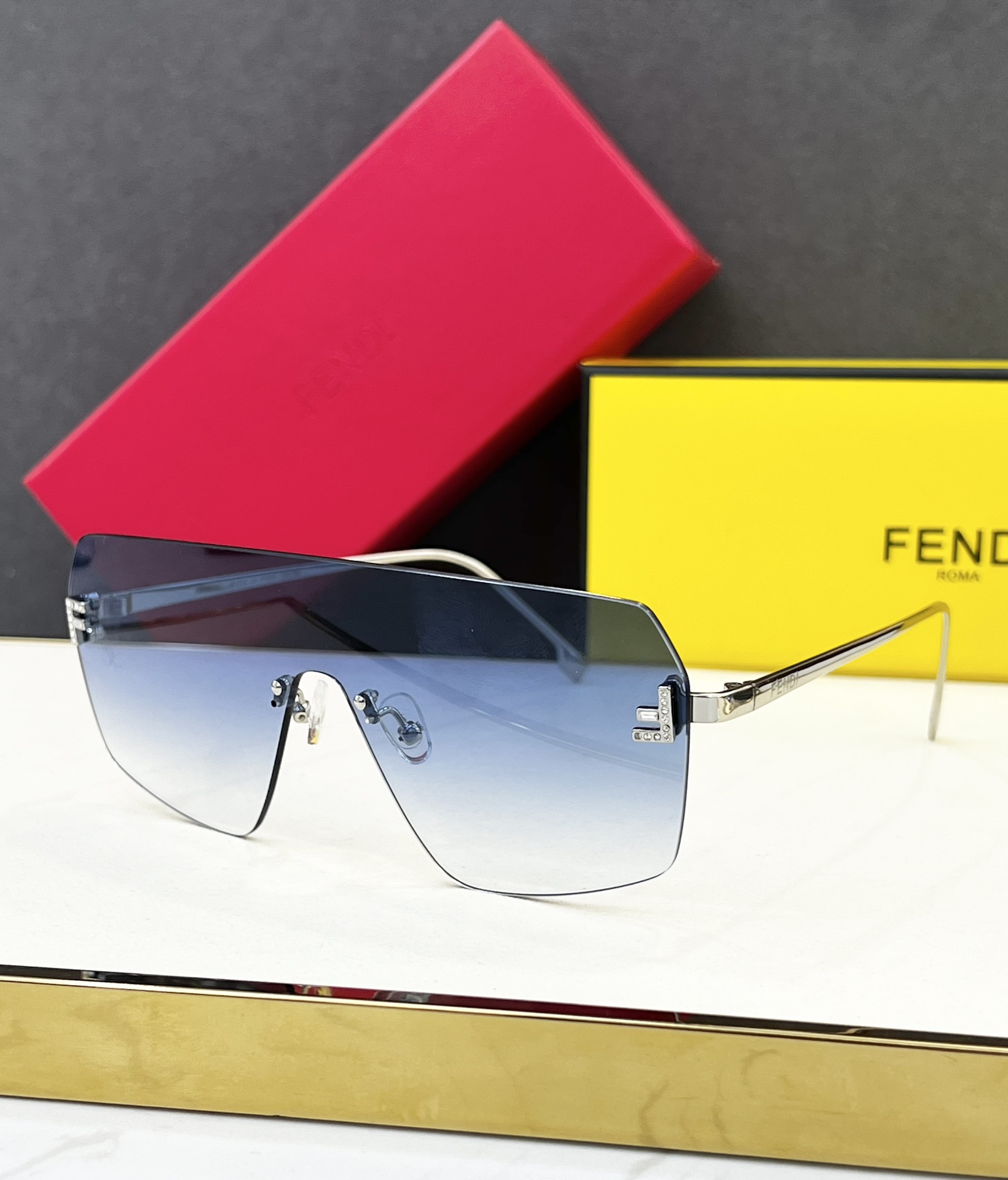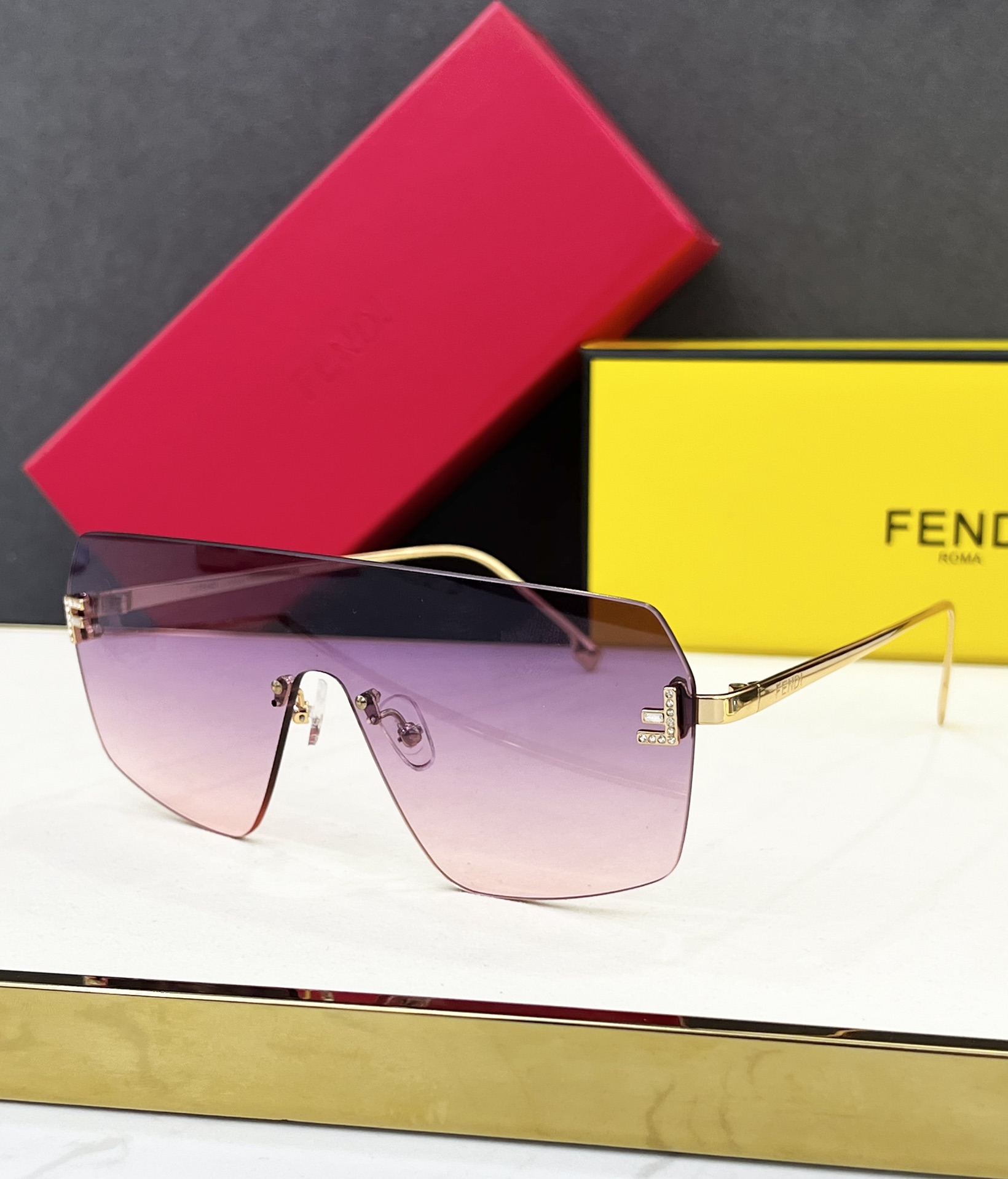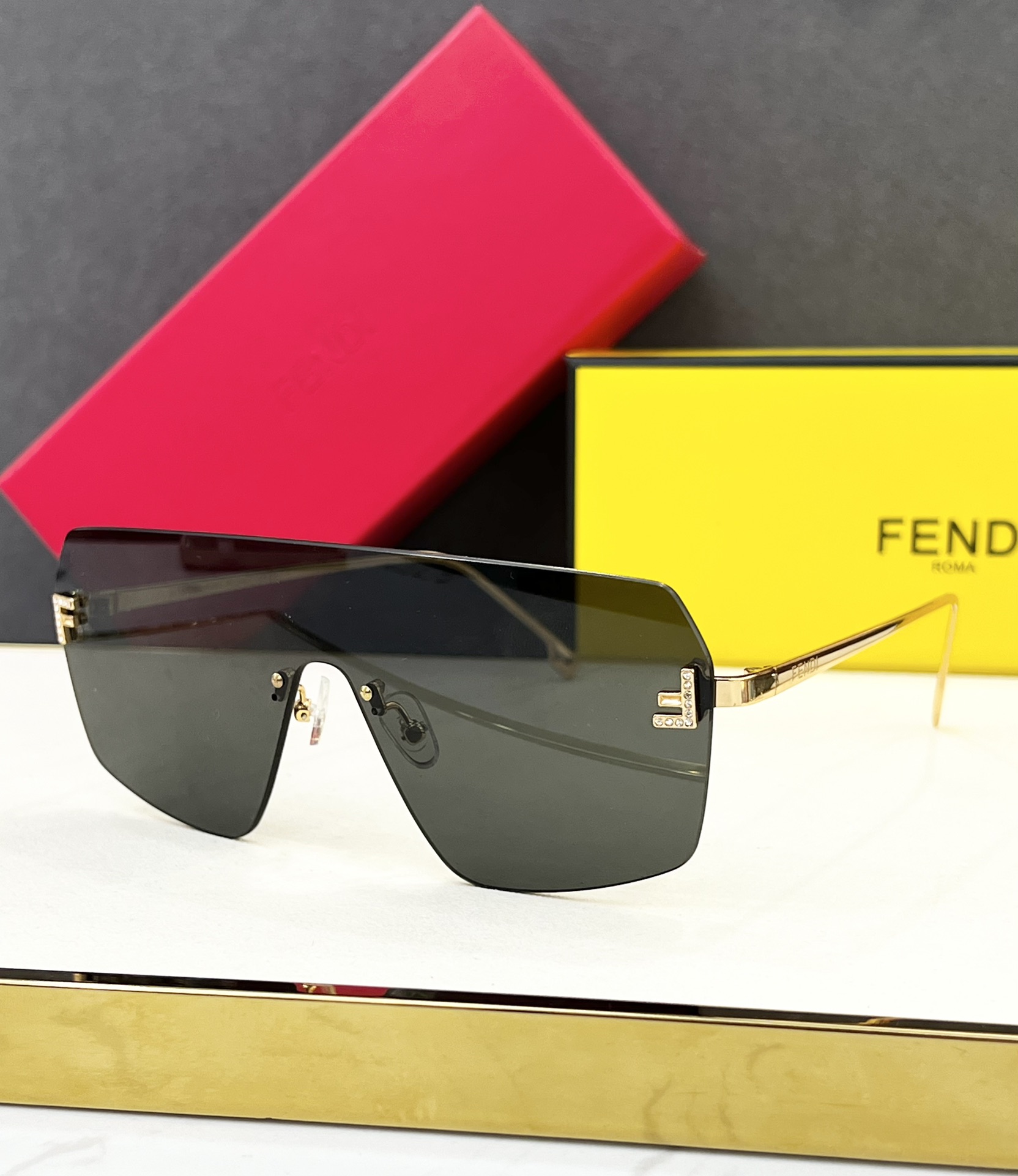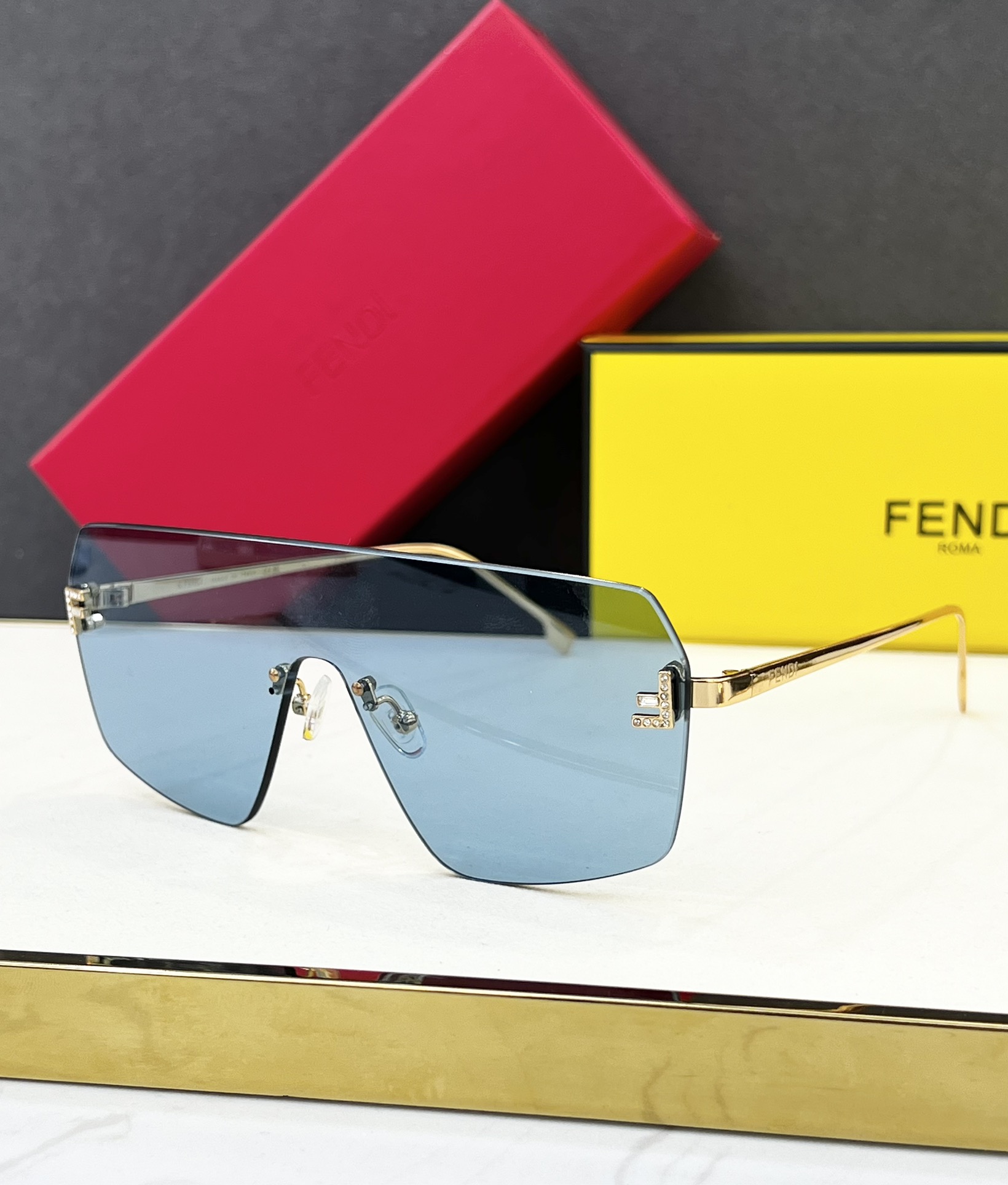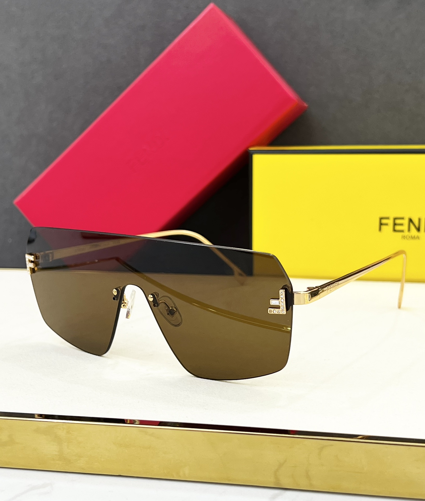 这款太阳眼镜是AAAAA 1:1 质量 (非常棒). 使用了和原版一模一样的材料. 商标部分也保持了和芬迪/Fendi一样. 图片拍摄是实物太阳眼镜拍摄, 您所收到的实物保证和我们图片一模一样.
