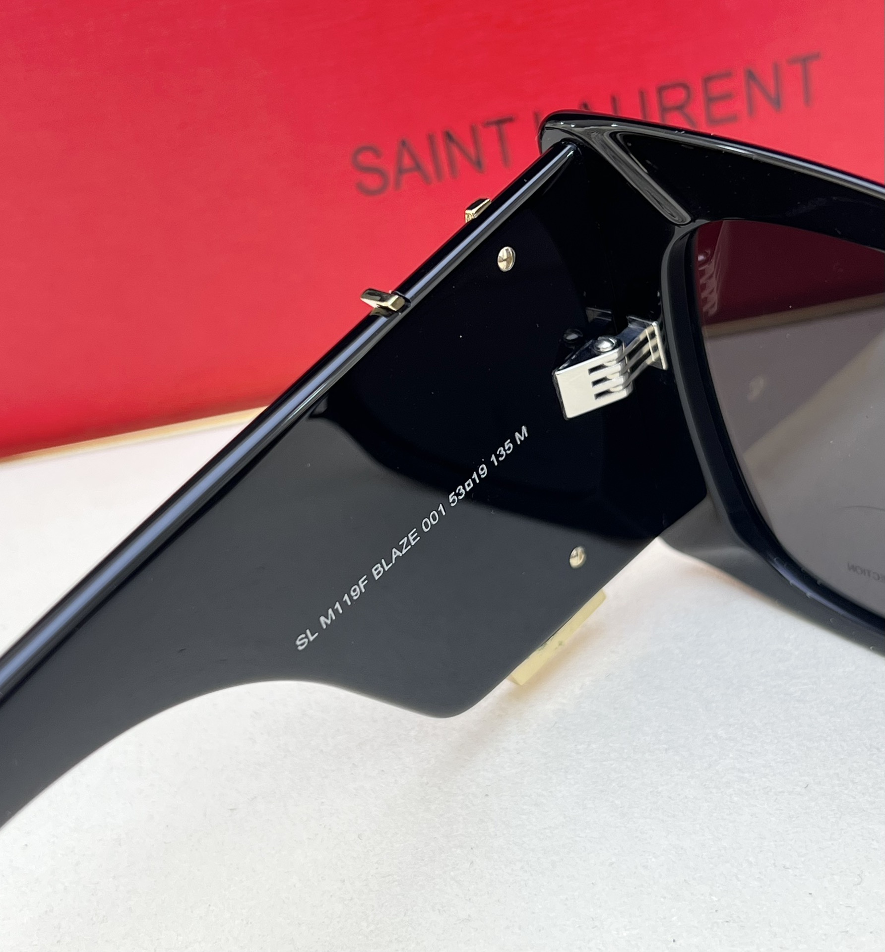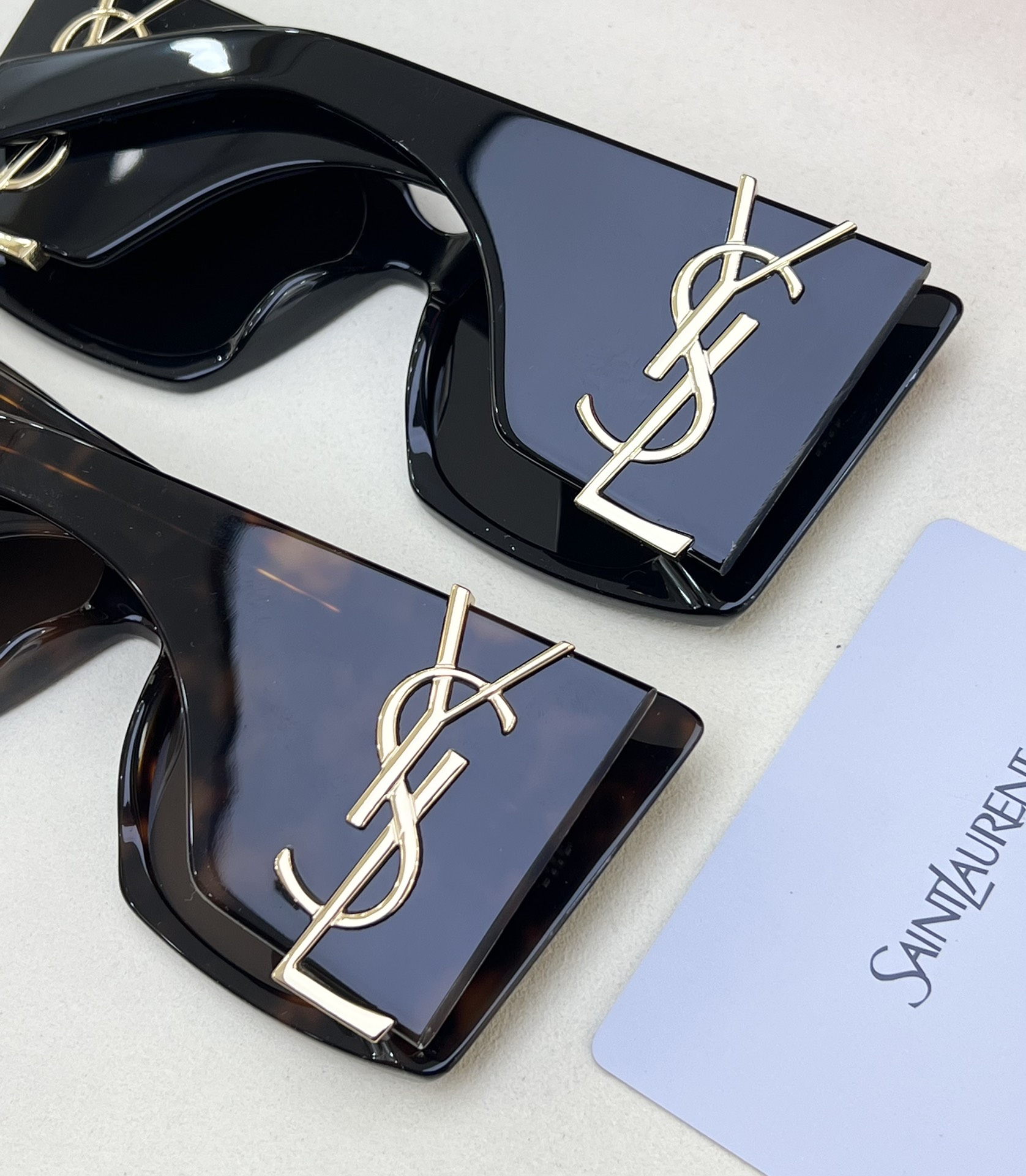 这款太阳眼镜是AAAAA 1:1 质量 (非常棒). 使用了和原版一模一样的材料. 商标部分也保持了和圣罗兰/Saint Laurent一样. 图片拍摄是实物太阳眼镜拍摄, 您所收到的实物保证和我们图片一模一样.