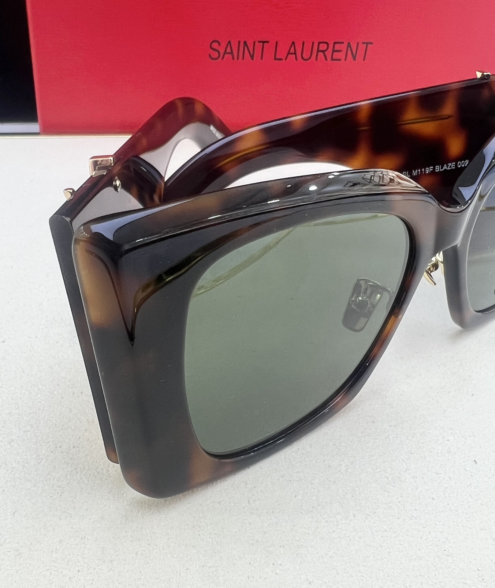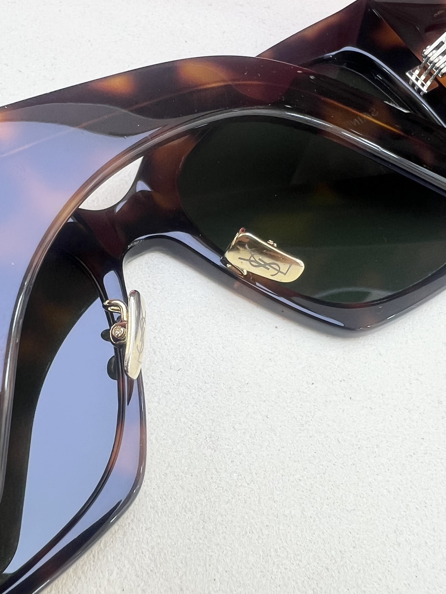 这款太阳眼镜是AAAAA 1:1 质量 (非常棒). 使用了和原版一模一样的材料. 商标部分也保持了和圣罗兰/Saint Laurent一样. 图片拍摄是实物太阳眼镜拍摄, 您所收到的实物保证和我们图片一模一样.