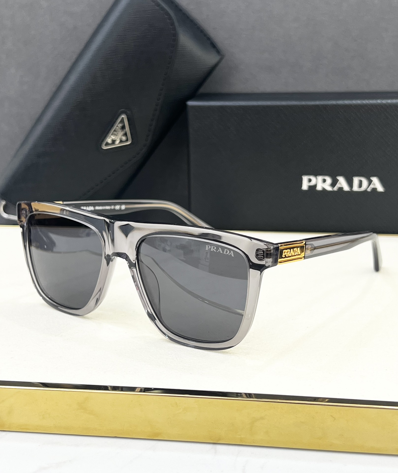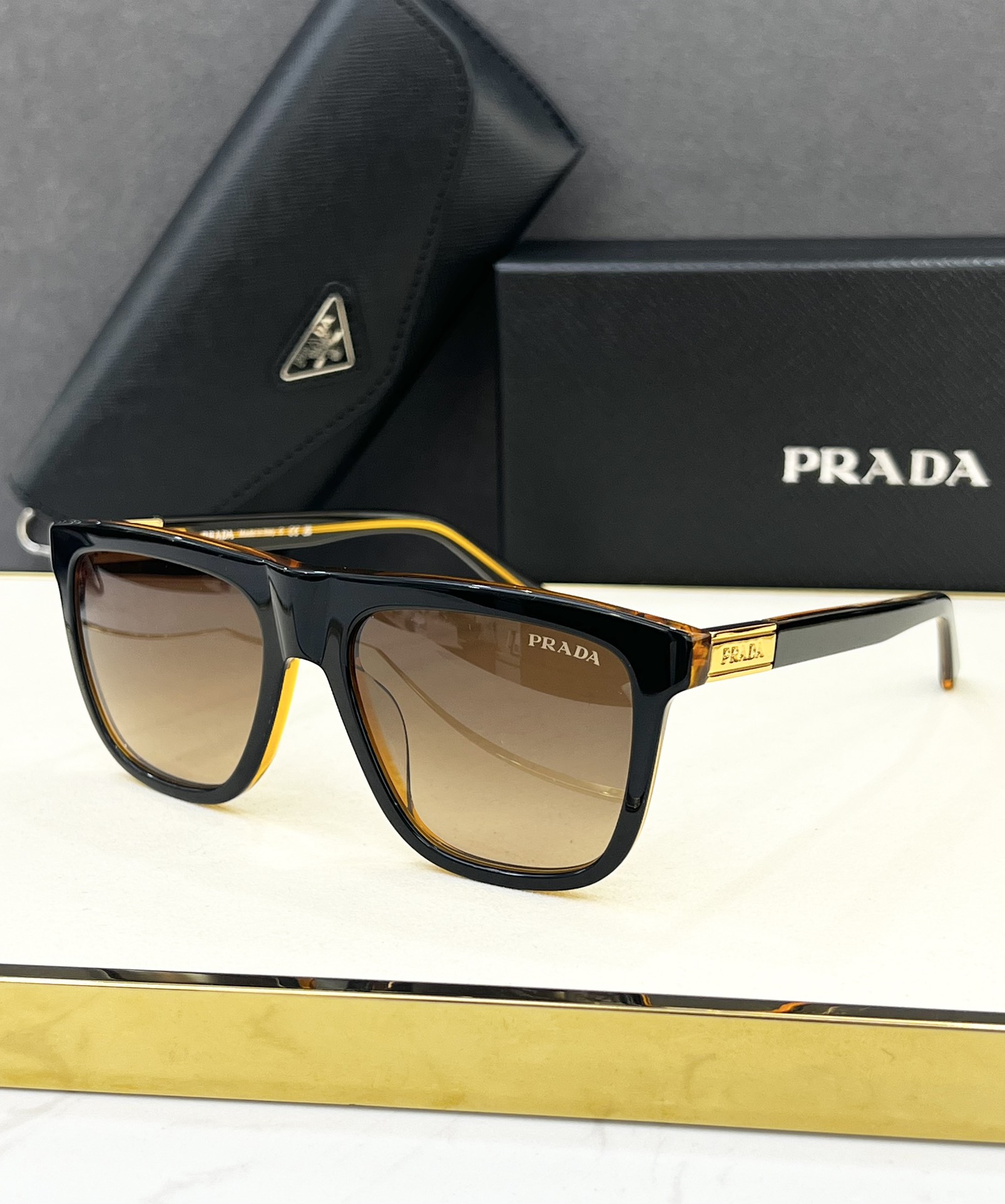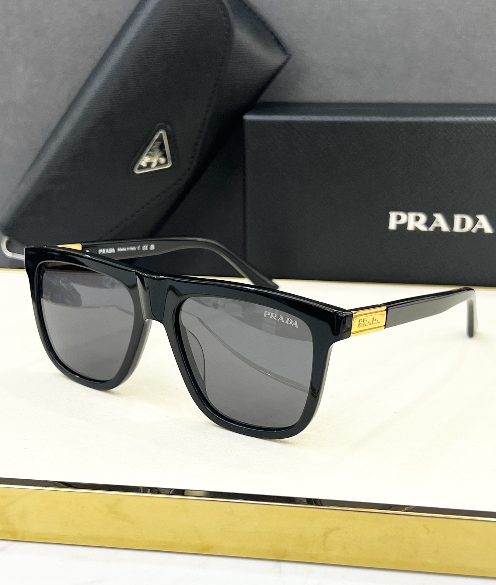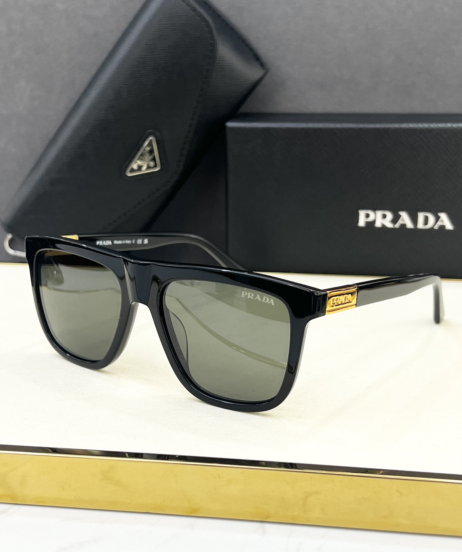 这款太阳眼镜是AAAAA 1:1 质量 (非常棒). 使用了和原版一模一样的材料. 商标部分也保持了和普拉达/Prada一样. 图片拍摄是实物太阳眼镜拍摄, 您所收到的实物保证和我们图片一模一样.