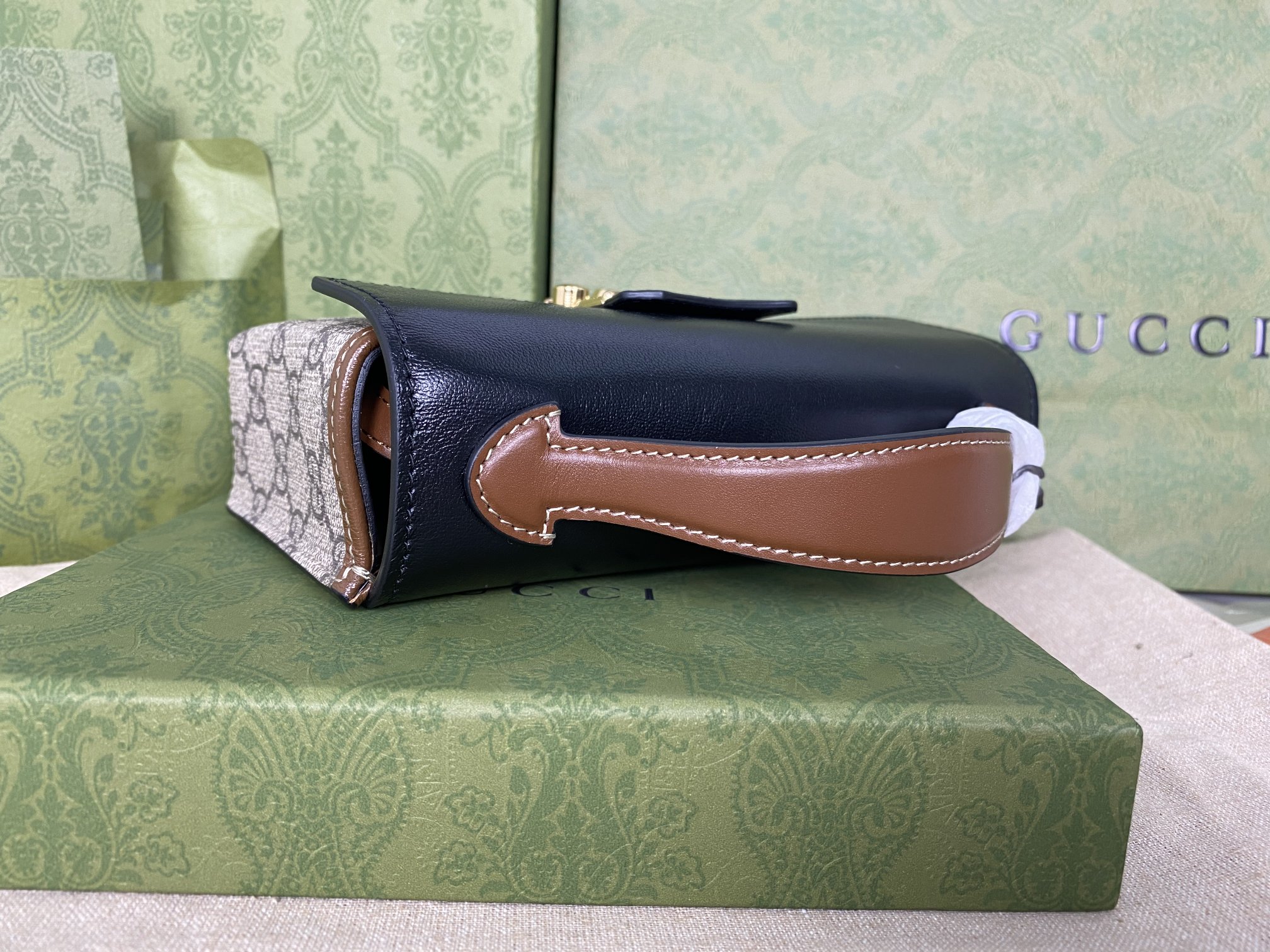 这款包包是AAAAA 1:1 质量 (非常棒). 使用了和原版一模一样的材料. 商标部分也保持了和古奇/Gucci一样. 图片拍摄是实物包包拍摄, 您所收到的实物保证和我们图片一模一样.