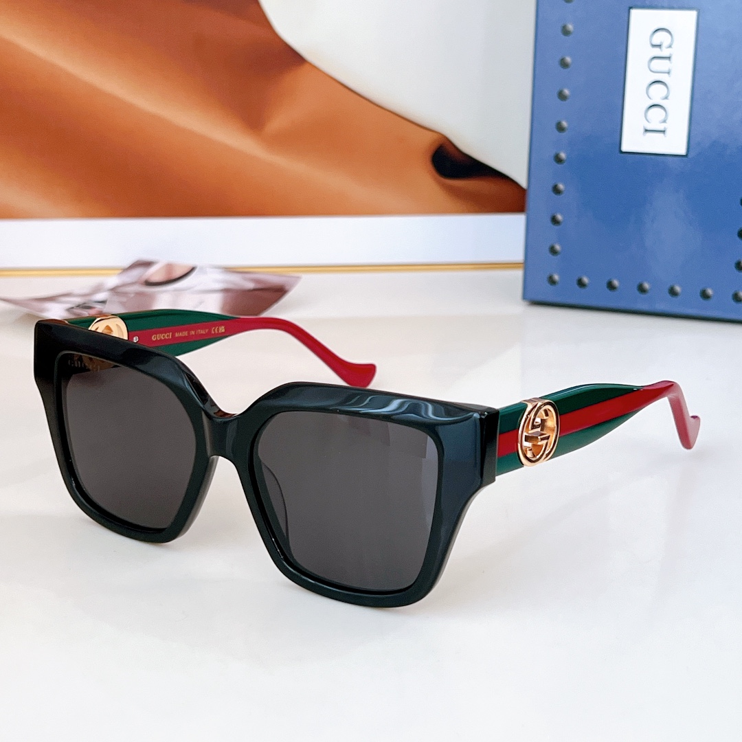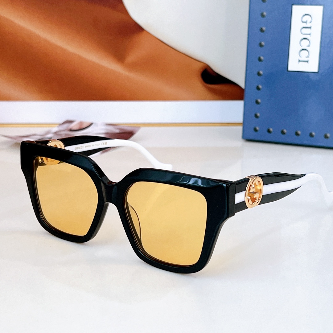 这款太阳眼镜是AAAAA 1:1 质量 (非常棒). 使用了和原版一模一样的材料. 商标部分也保持了和古奇/Gucci一样. 图片拍摄是实物太阳眼镜拍摄, 您所收到的实物保证和我们图片一模一样.