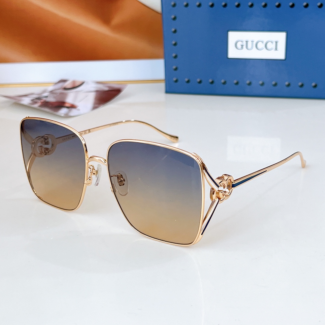 这款太阳眼镜是AAAAA 1:1 质量 (非常棒). 使用了和原版一模一样的材料. 商标部分也保持了和古奇/Gucci一样. 图片拍摄是实物太阳眼镜拍摄, 您所收到的实物保证和我们图片一模一样.