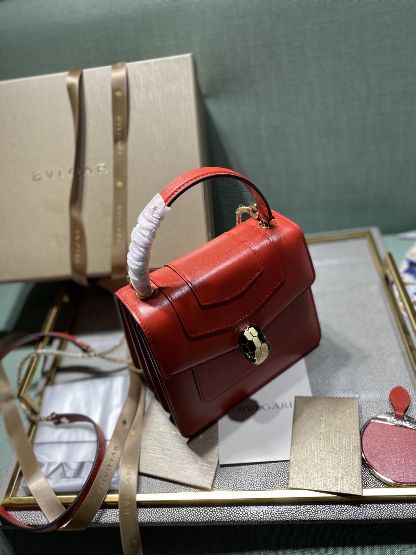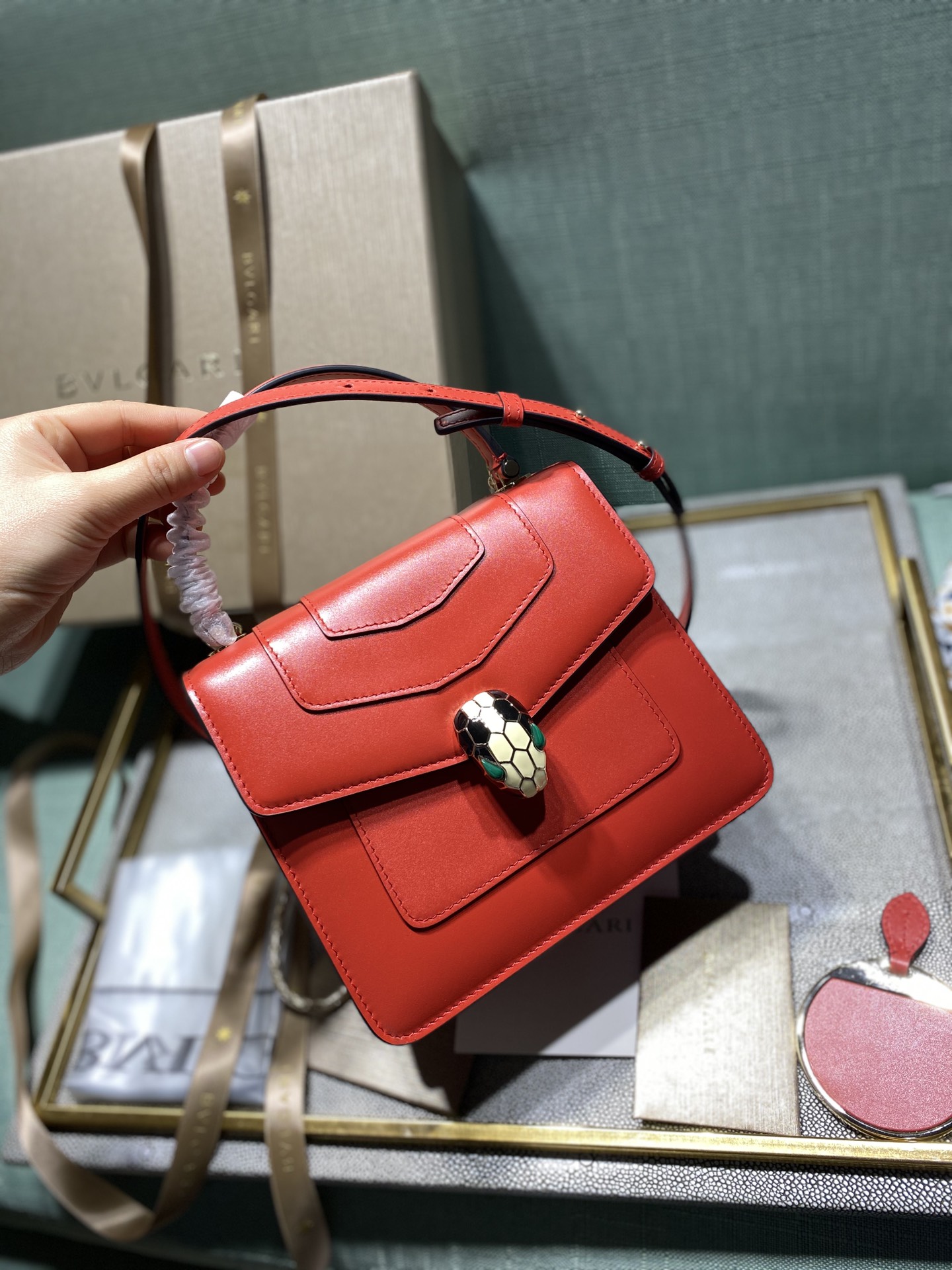 这款包包是AAAAA 1:1 质量 (非常棒). 使用了和原版一模一样的材料. 商标部分也保持了和宝格丽/Bulgari一样. 图片拍摄是实物包包拍摄, 您所收到的实物保证和我们图片一模一样.