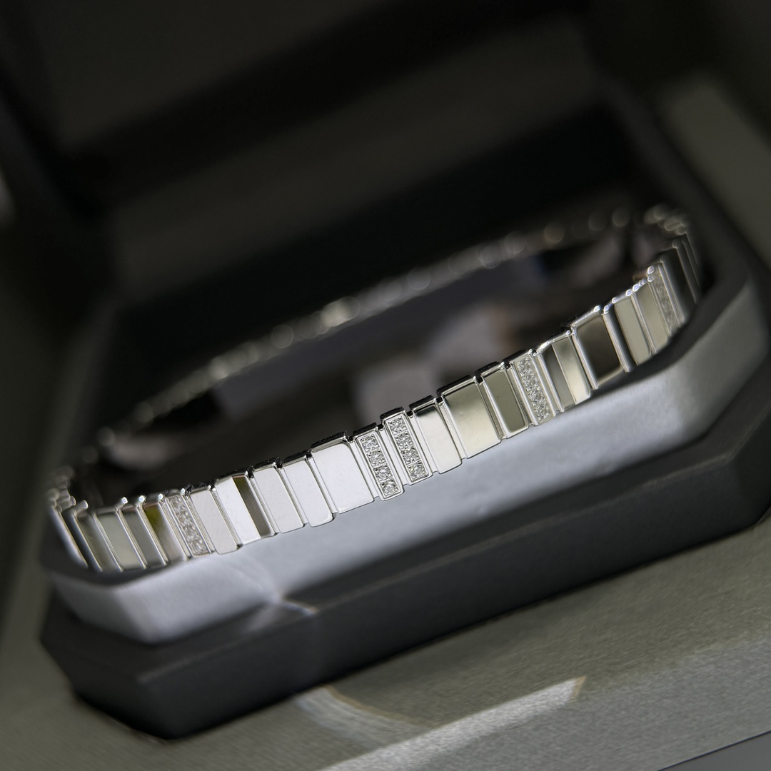 这款首饰是AAAAA 1:1 质量 (非常棒). 使用了和原版一模一样的材料. 商标部分也保持了和萧邦/Chopard一样. 图片拍摄是实物首饰拍摄, 您所收到的实物保证和我们图片一模一样.