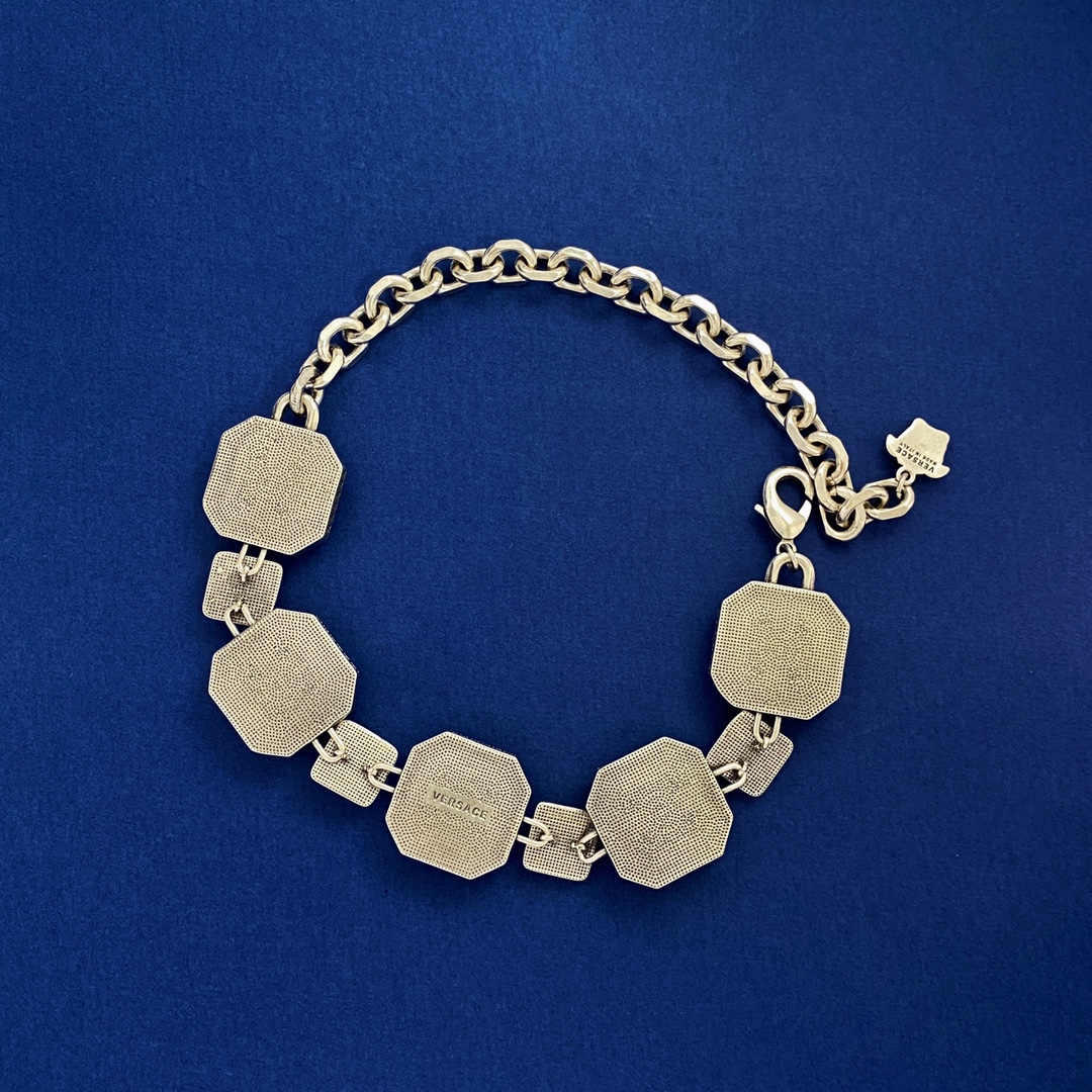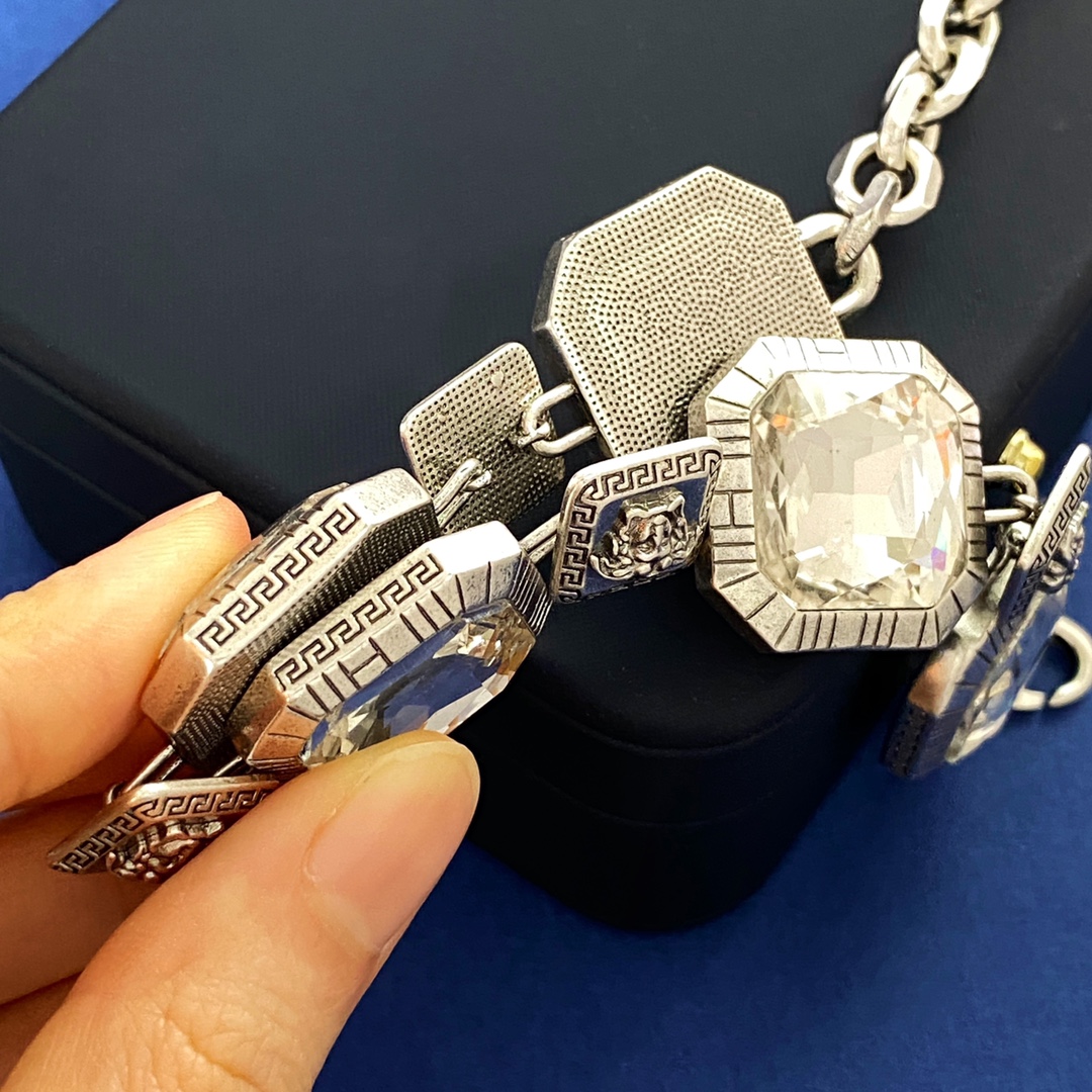 这款首饰是AAAAA 1:1 质量 (非常棒). 使用了和原版一模一样的材料. 商标部分也保持了和范思哲/Versace一样. 图片拍摄是实物首饰拍摄, 您所收到的实物保证和我们图片一模一样.