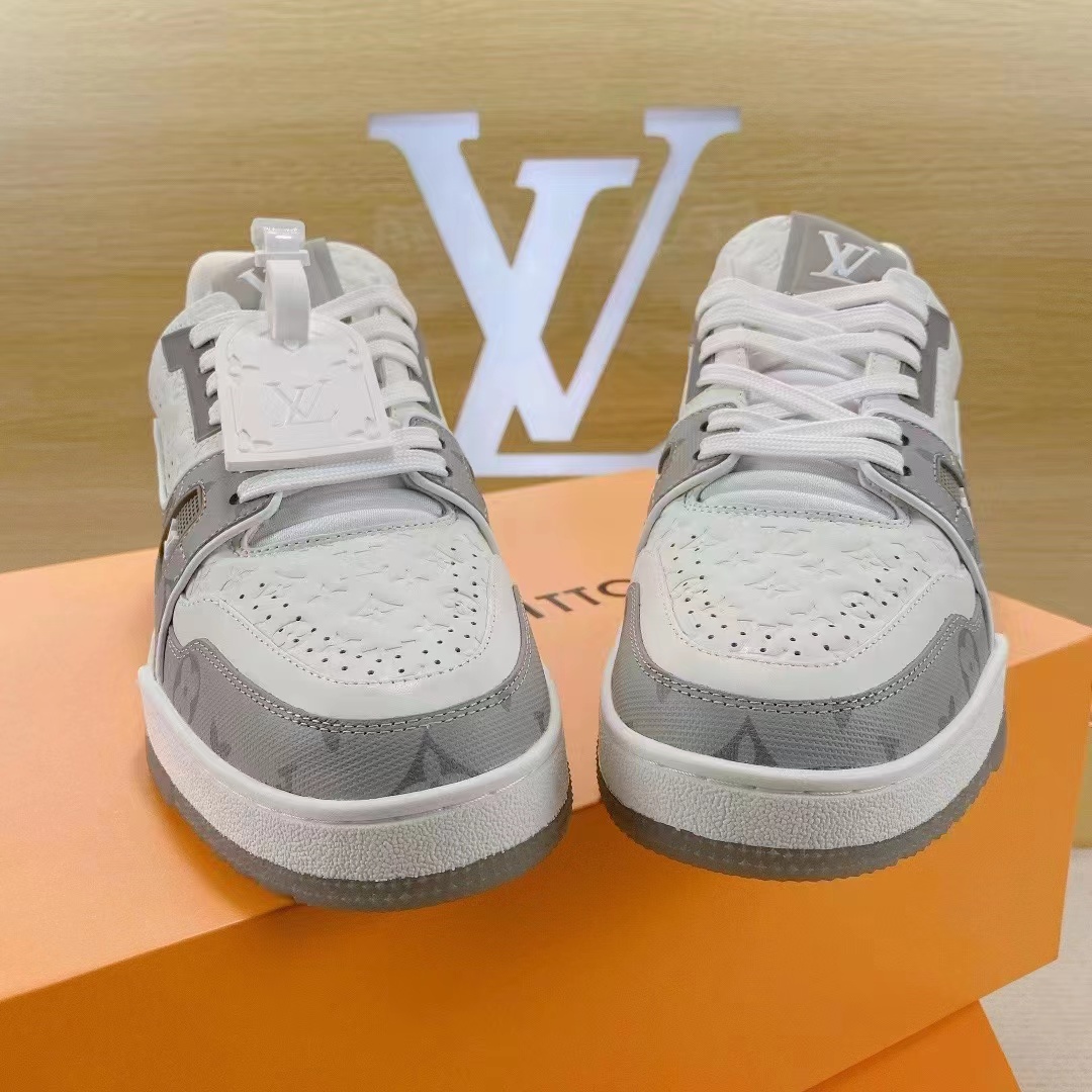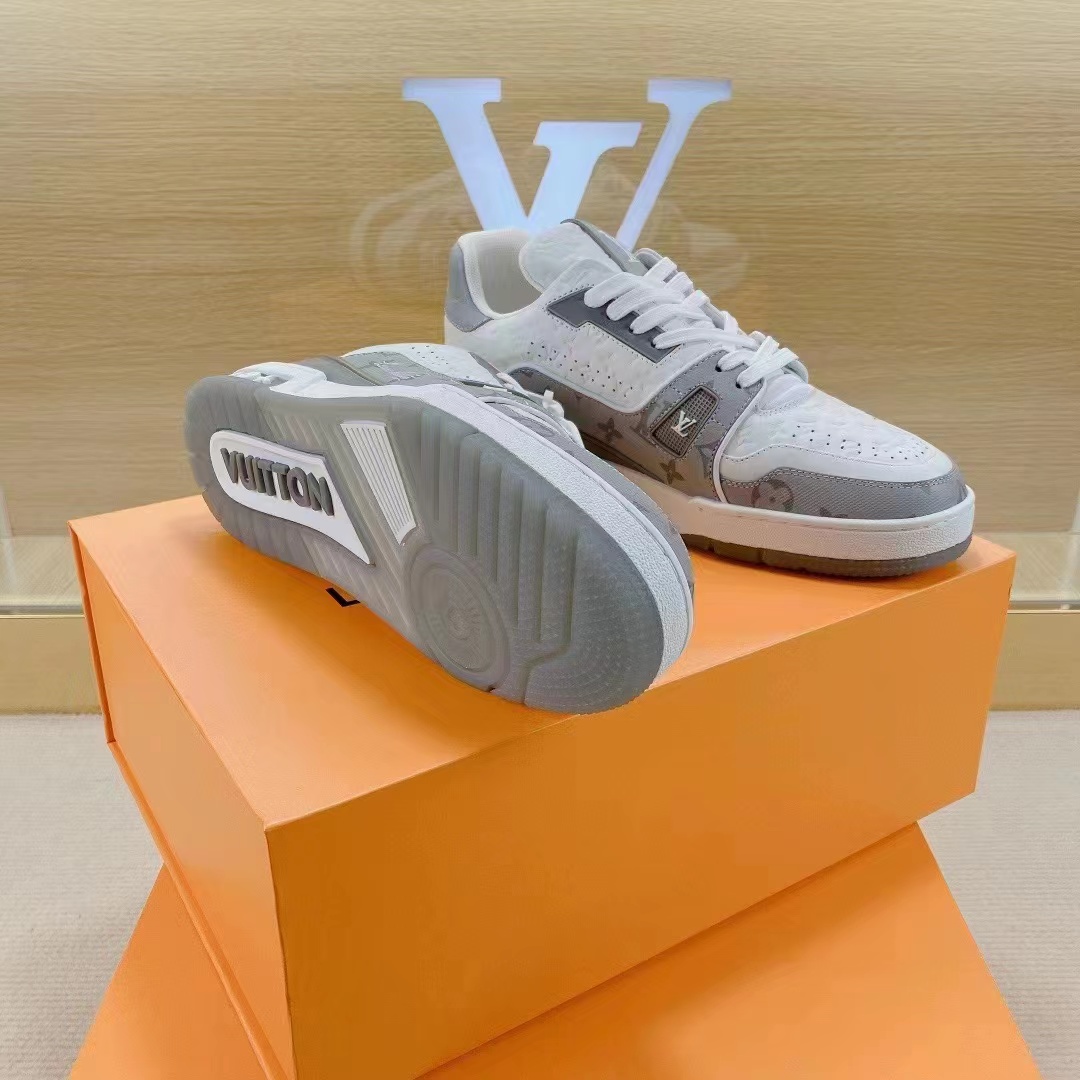 这款鞋子是AAAAA 1:1 质量 (非常棒). 使用了和原版一模一样的材料. 商标部分也保持了和路易威登/Louis Vuitton一样. 图片拍摄是实物鞋子拍摄, 您所收到的实物保证和我们图片一模一样.