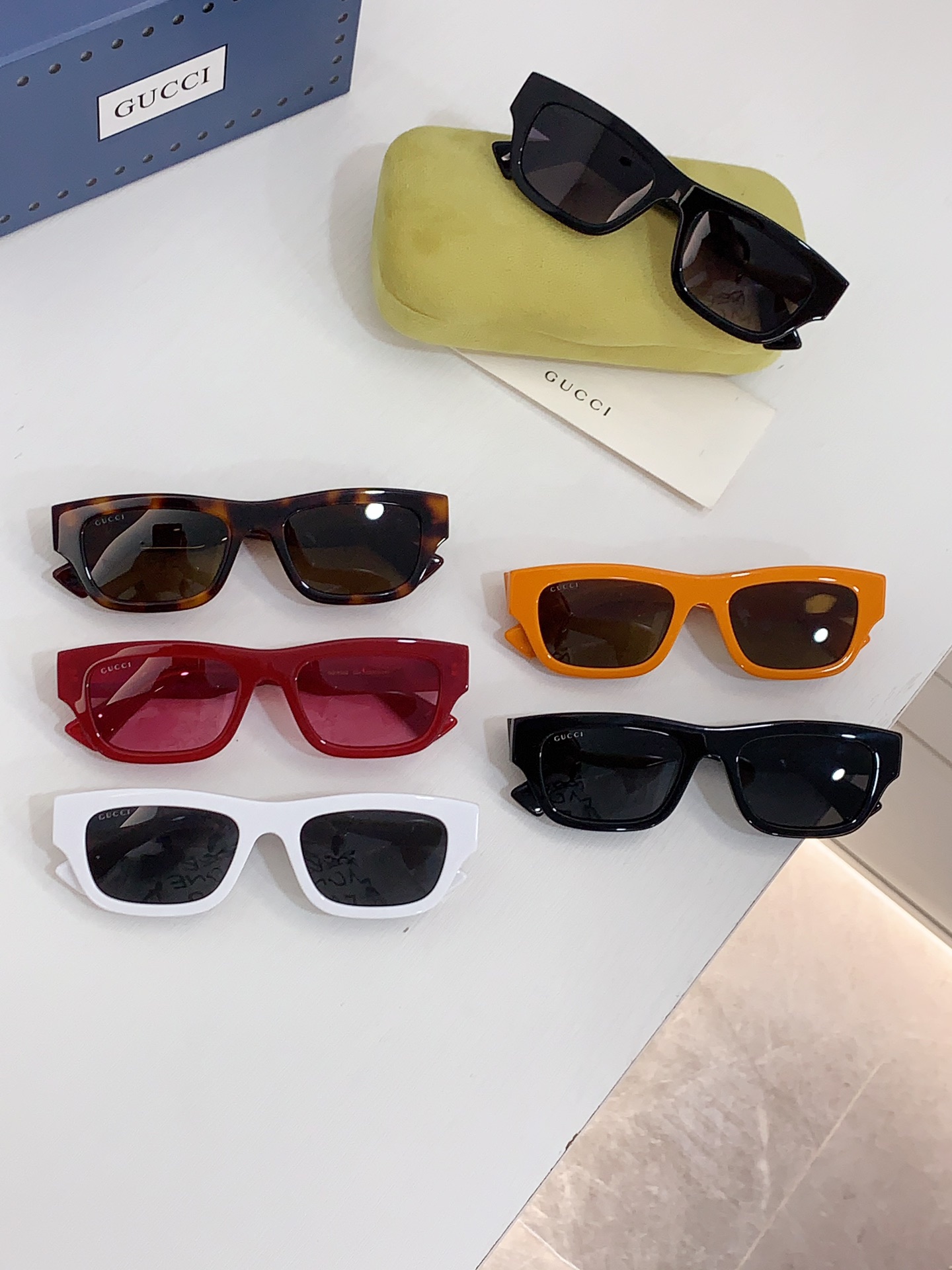 这款太阳眼镜是AAAAA 1:1 质量 (非常棒). 使用了和原版一模一样的材料. 商标部分也保持了和古奇/Gucci一样. 图片拍摄是实物太阳眼镜拍摄, 您所收到的实物保证和我们图片一模一样.