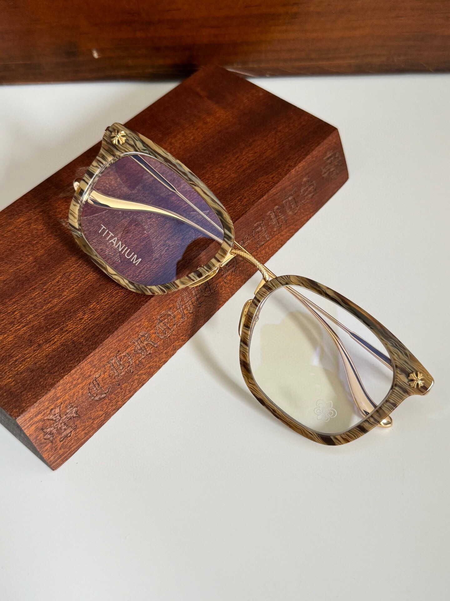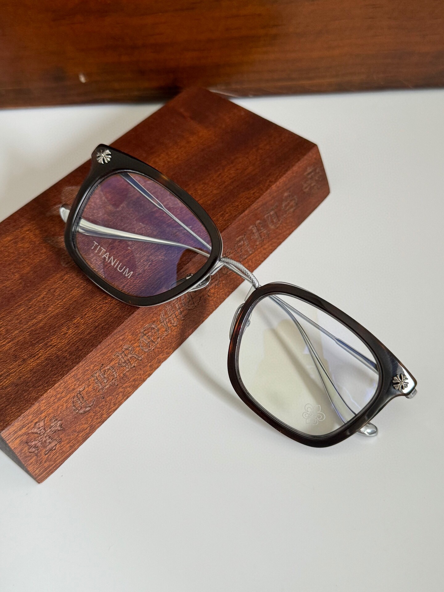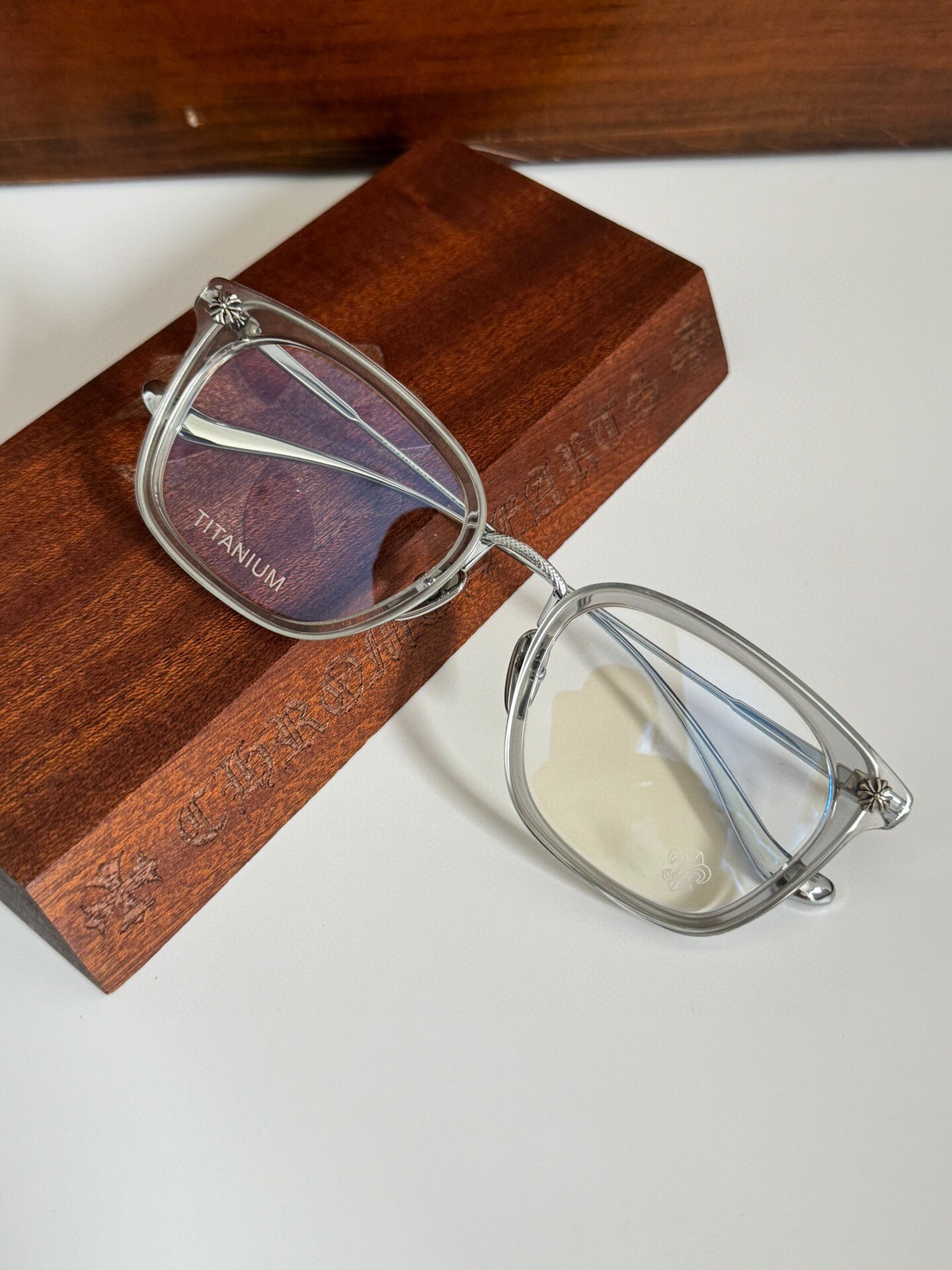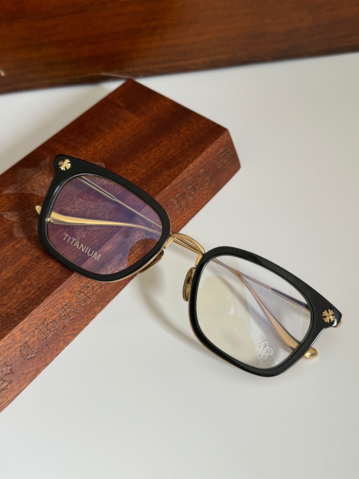 这款太阳眼镜是AAAAA 1:1 质量 (非常棒). 使用了和原版一模一样的材料. 商标部分也保持了和克罗心/Chrome Hearts一样. 图片拍摄是实物太阳眼镜拍摄, 您所收到的实物保证和我们图片一模一样.