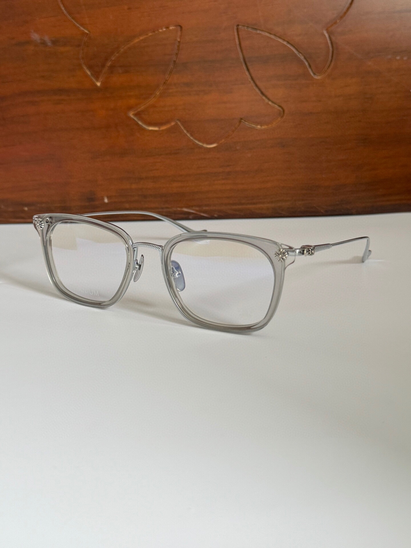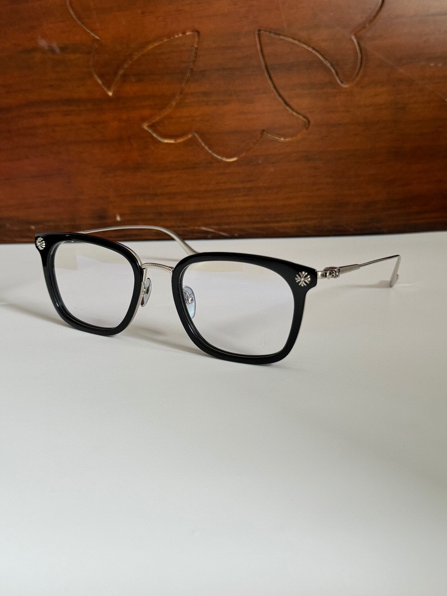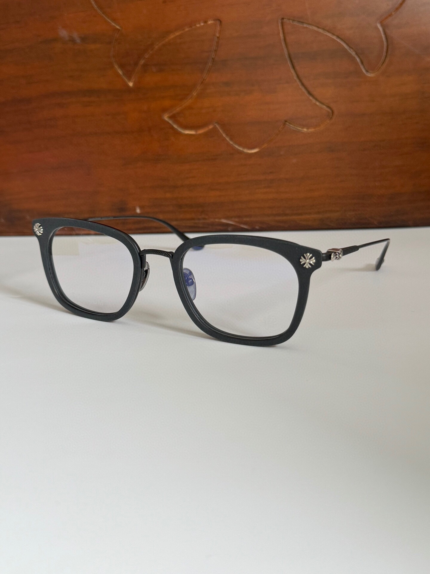 这款太阳眼镜是AAAAA 1:1 质量 (非常棒). 使用了和原版一模一样的材料. 商标部分也保持了和克罗心/Chrome Hearts一样. 图片拍摄是实物太阳眼镜拍摄, 您所收到的实物保证和我们图片一模一样.