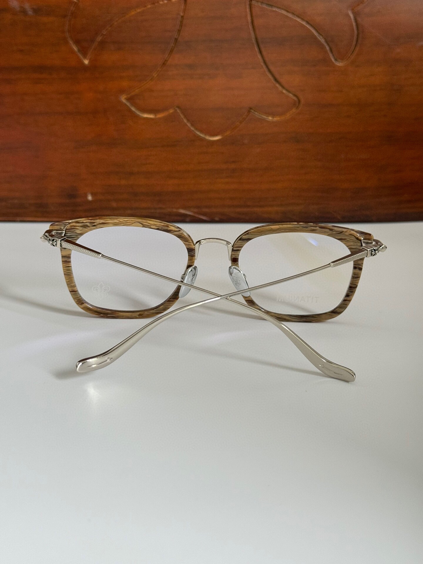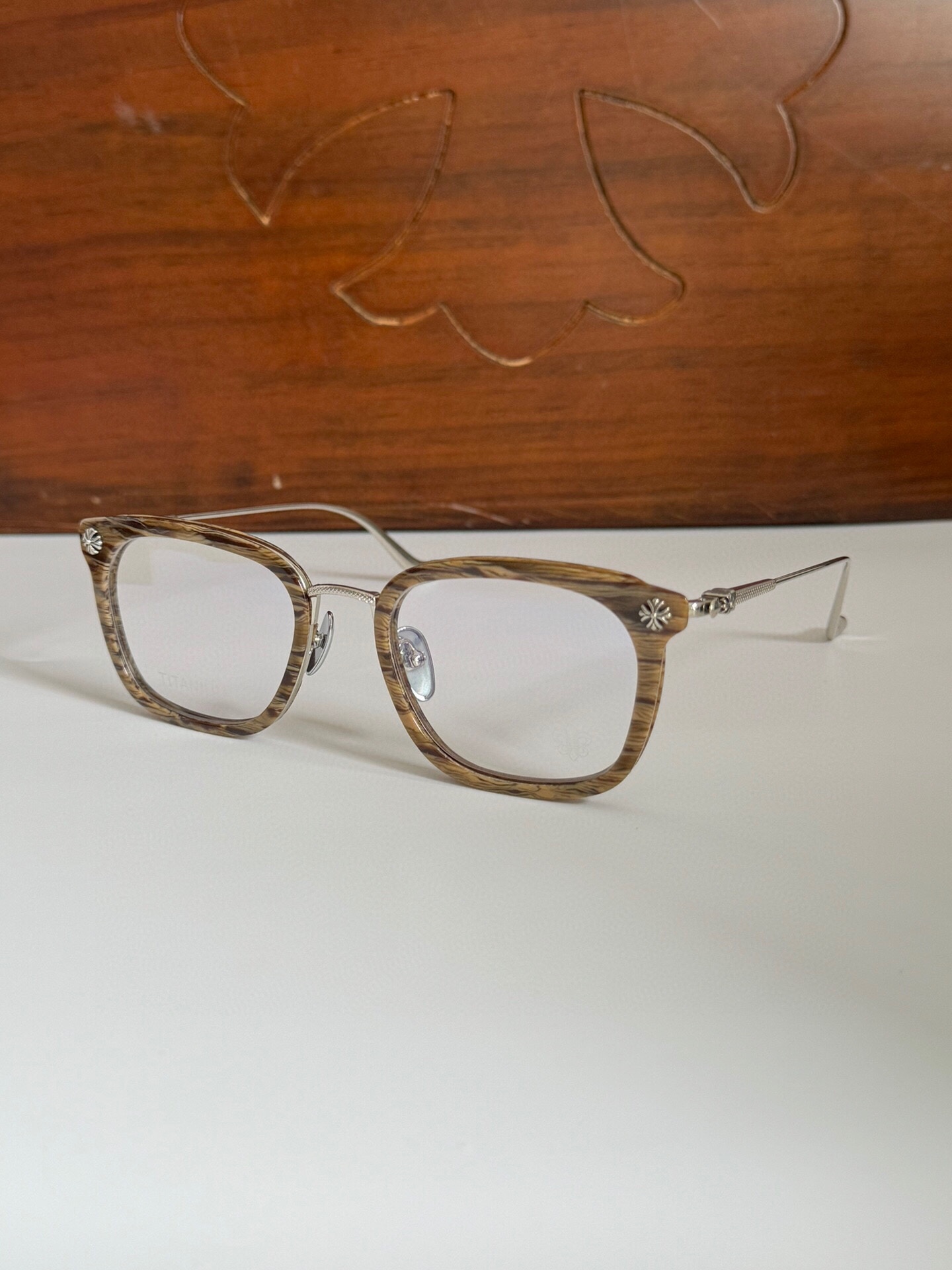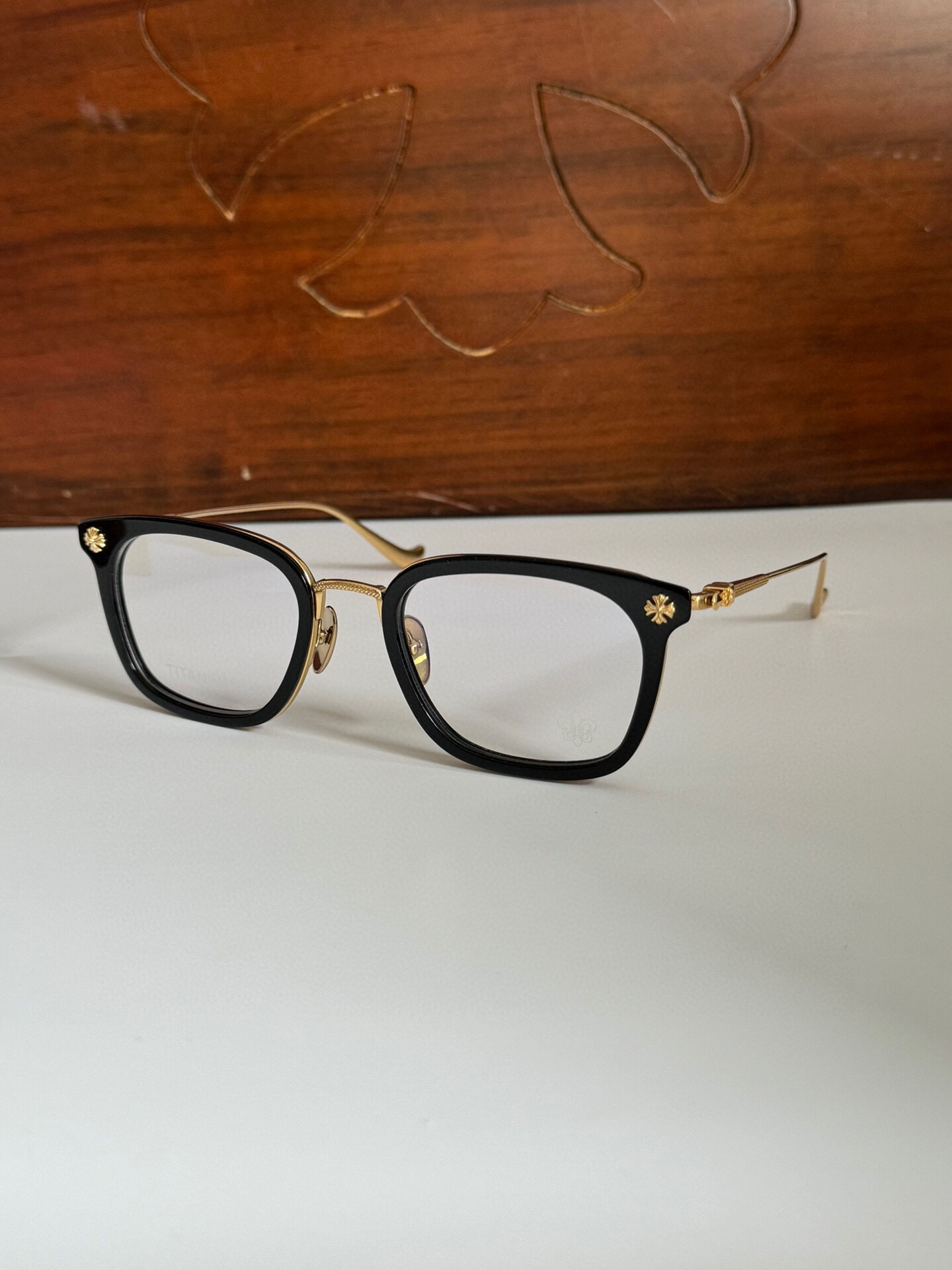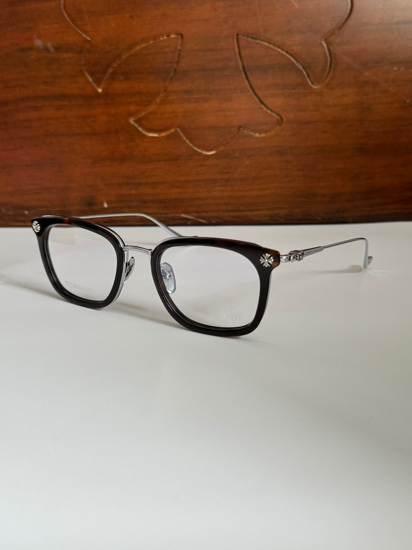 这款太阳眼镜是AAAAA 1:1 质量 (非常棒). 使用了和原版一模一样的材料. 商标部分也保持了和克罗心/Chrome Hearts一样. 图片拍摄是实物太阳眼镜拍摄, 您所收到的实物保证和我们图片一模一样.