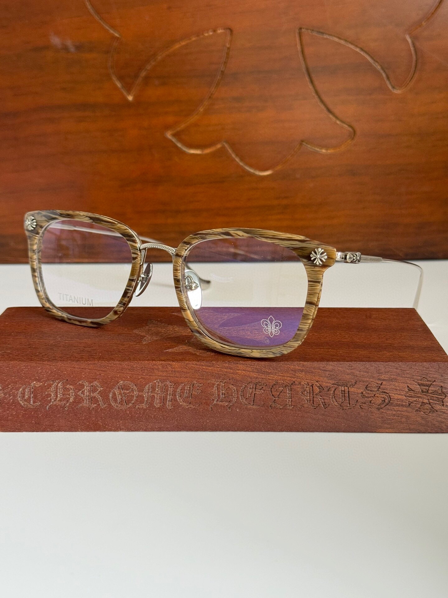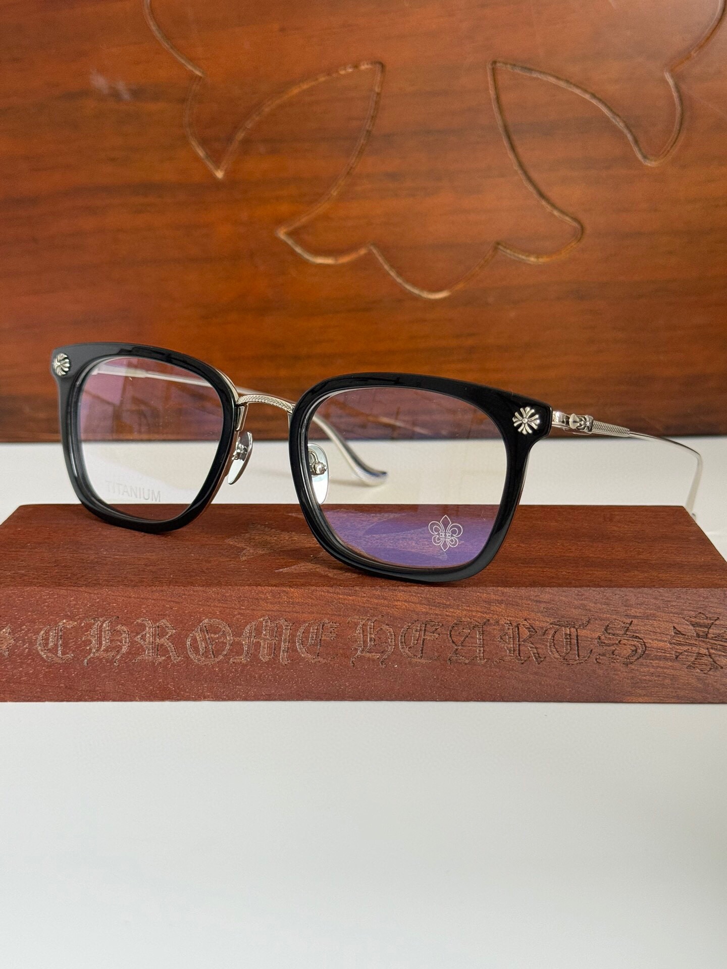这款太阳眼镜是AAAAA 1:1 质量 (非常棒). 使用了和原版一模一样的材料. 商标部分也保持了和克罗心/Chrome Hearts一样. 图片拍摄是实物太阳眼镜拍摄, 您所收到的实物保证和我们图片一模一样.