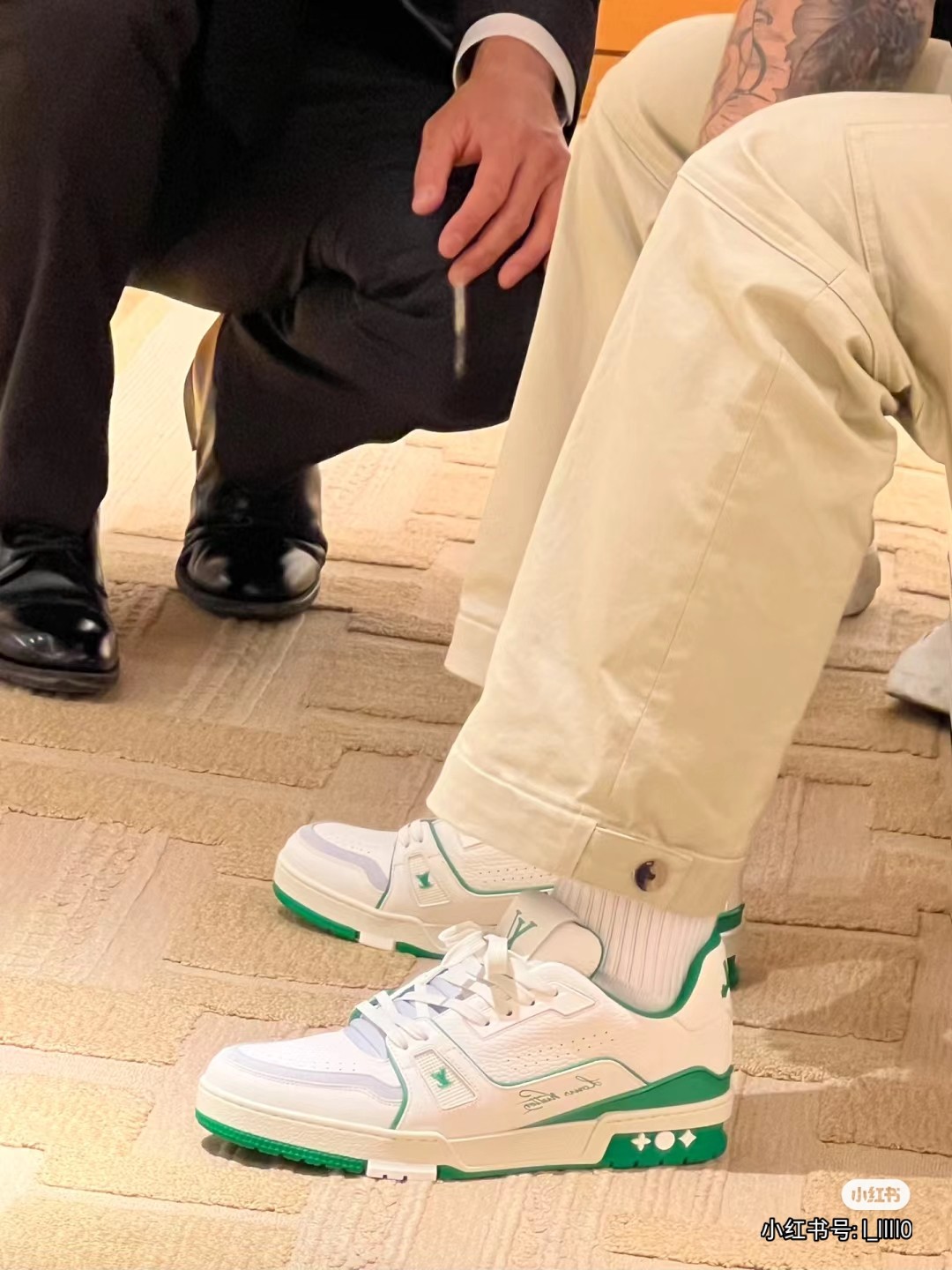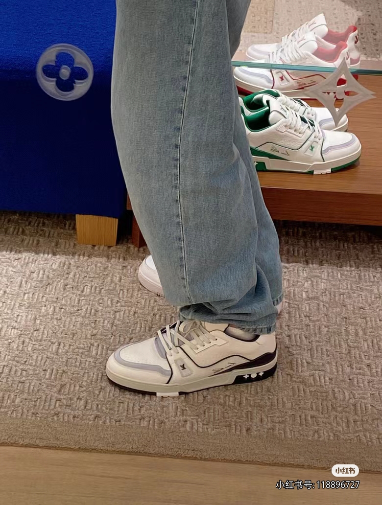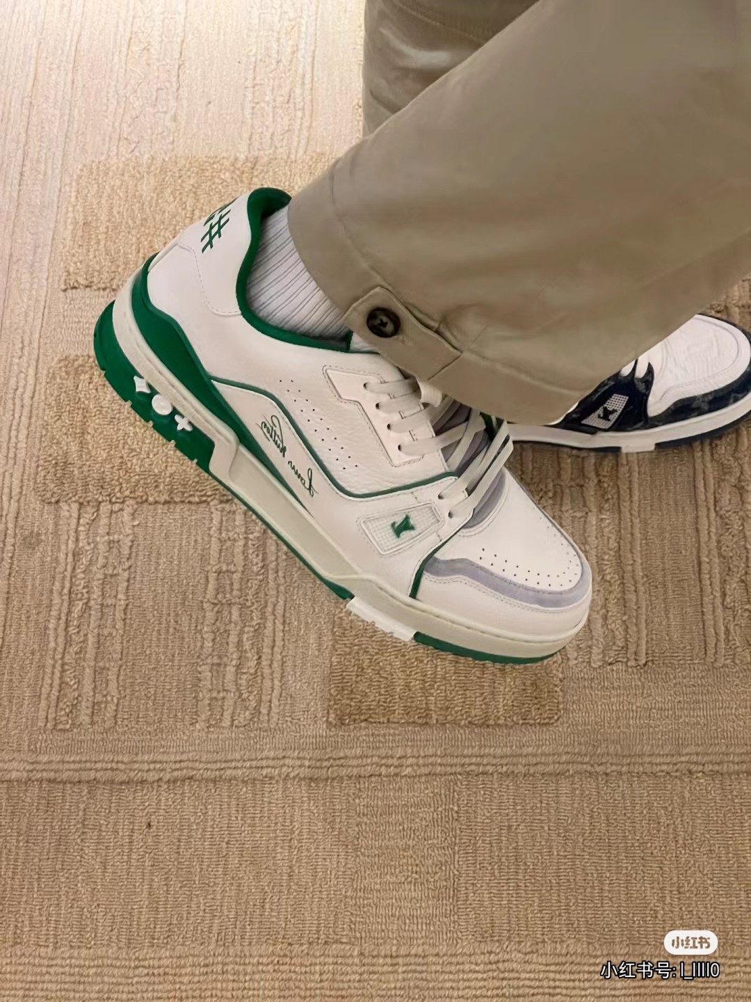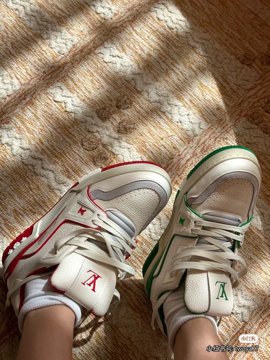 这款鞋子是AAAAA 1:1 质量 (非常棒). 使用了和原版一模一样的材料. 商标部分也保持了和路易威登/Louis Vuitton一样. 图片拍摄是实物鞋子拍摄, 您所收到的实物保证和我们图片一模一样.