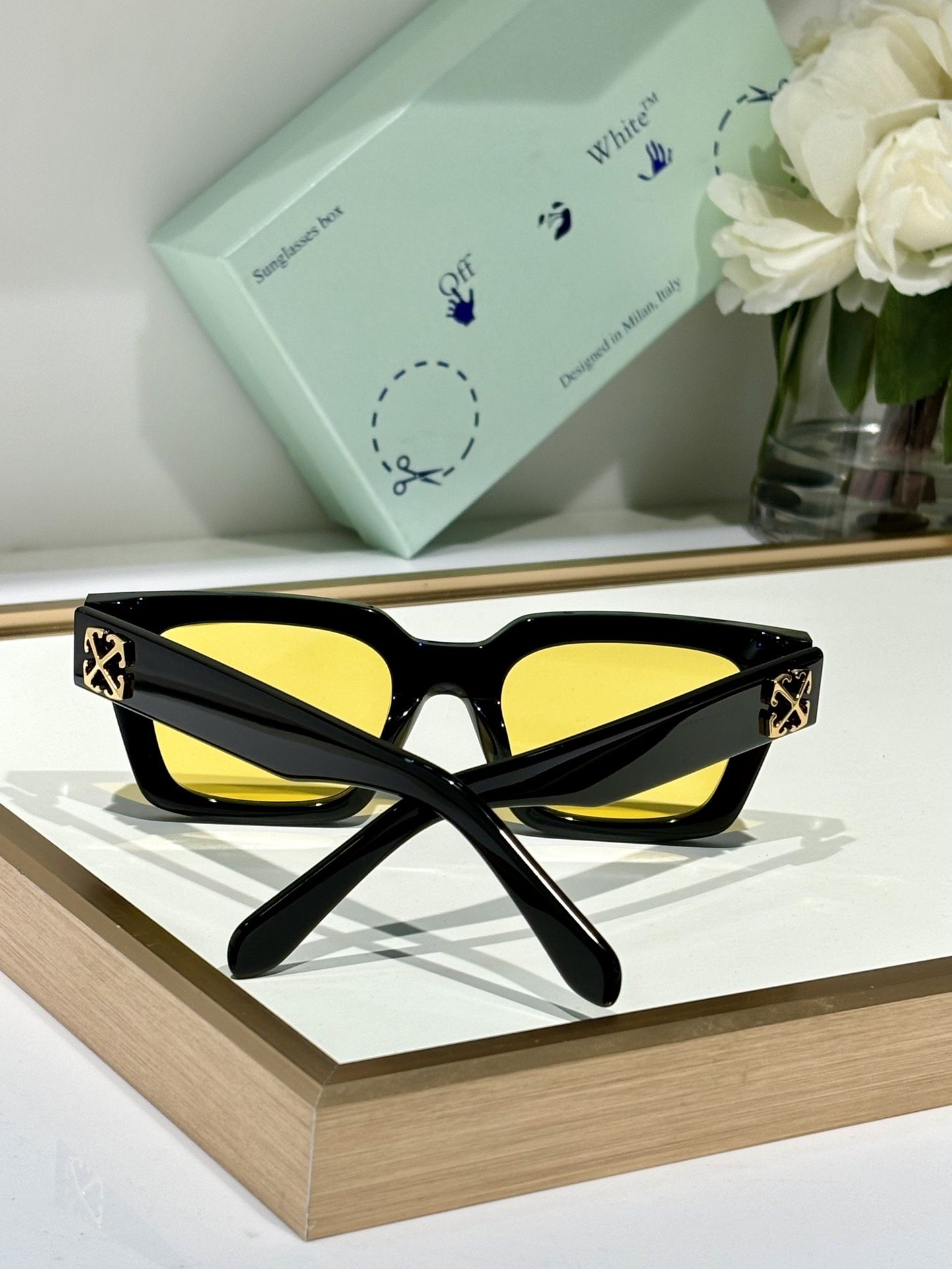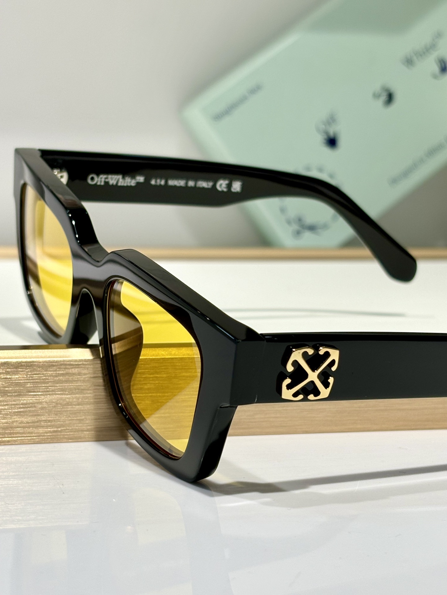 这款太阳眼镜是AAAAA 1:1 质量 (非常棒). 使用了和原版一模一样的材料. 商标部分也保持了和OFF WHITE一样. 图片拍摄是实物太阳眼镜拍摄, 您所收到的实物保证和我们图片一模一样.